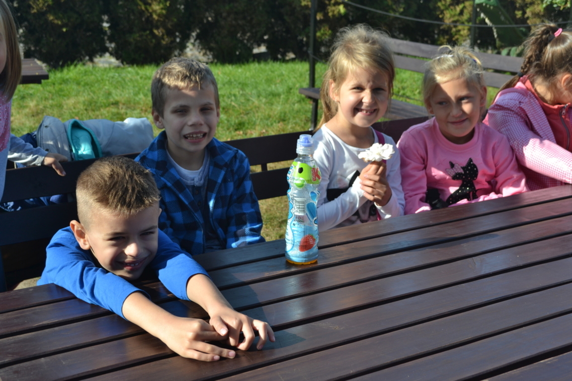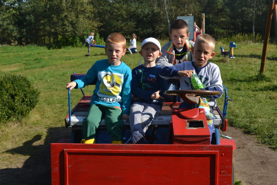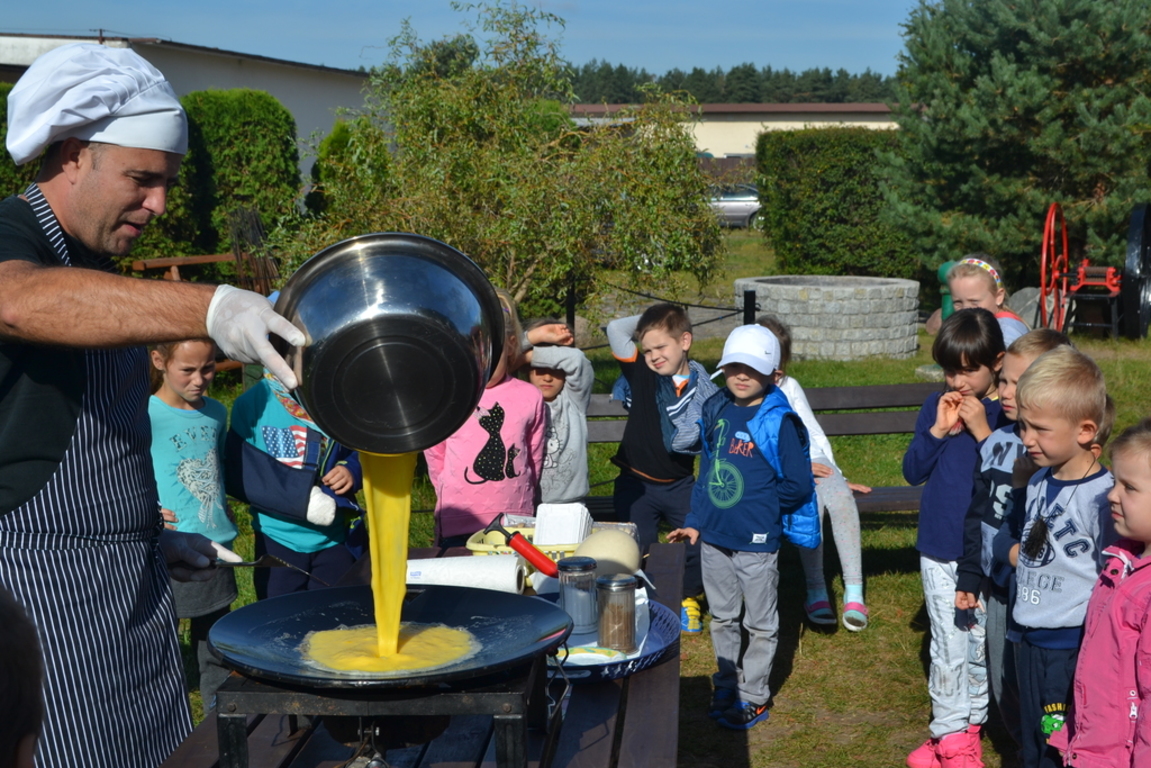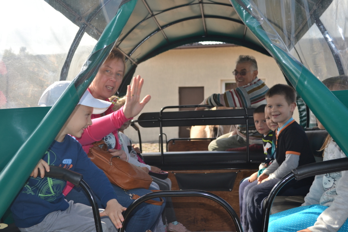 Jajecznicę ze strusiego jaja przygotowaną, na świeżym powietrzu, dzieci zjadły ze smakiem. Słoneczna pogoda pozwoliła przedszkolakom i pierwszakom na zabawę na placu zabaw. Na zakończenie wszystkie dzieci wzięły udział w przejażdżce bryczką wokół farmy. Uśmiechnięte i radosne wróciły do przedszkola i do szkoły.