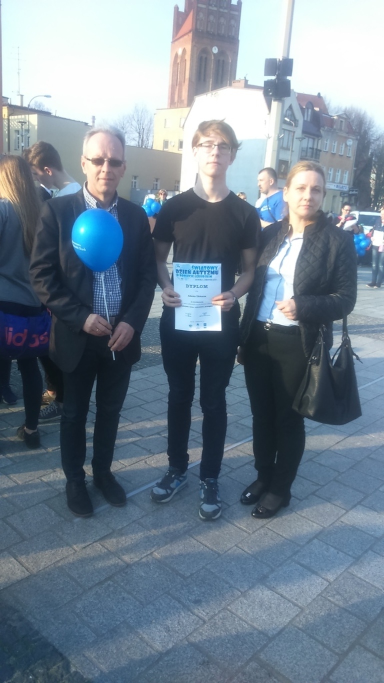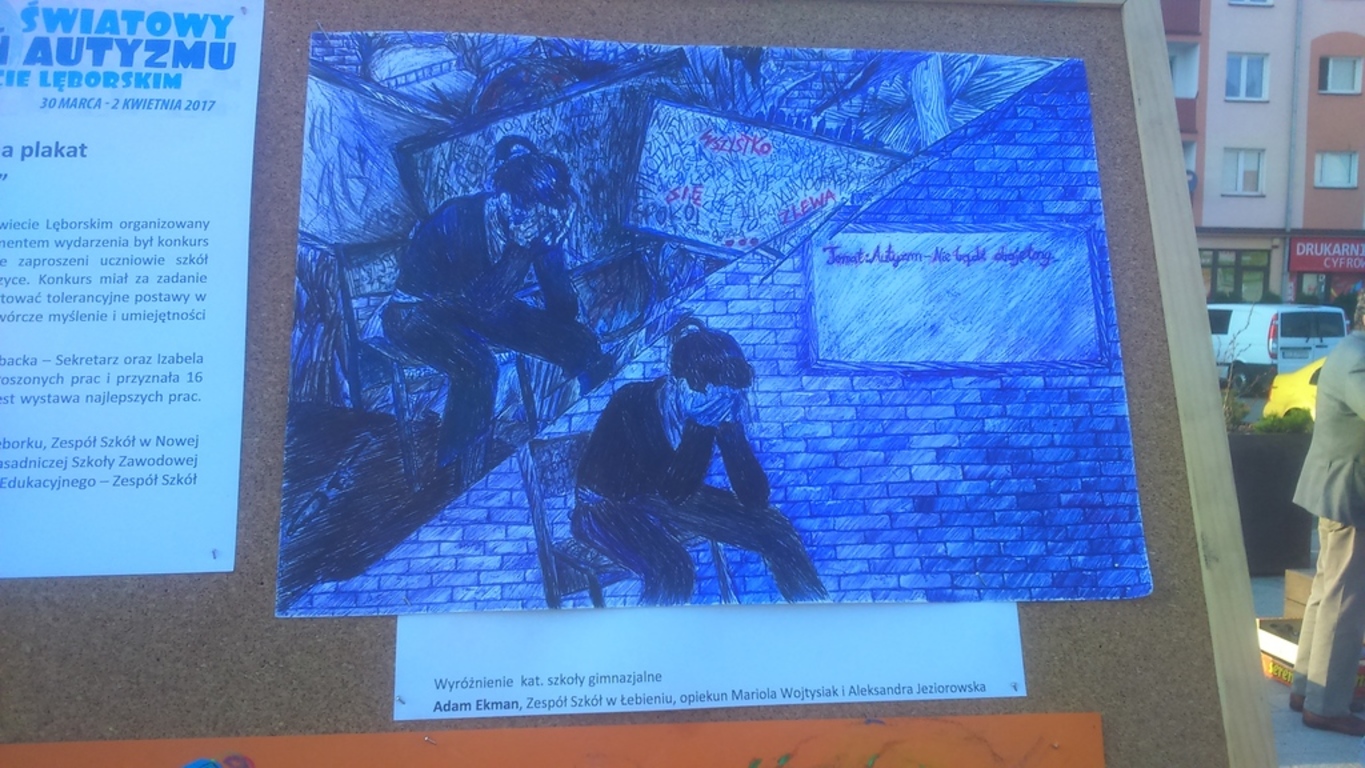 Adam Ekman z klasy III a gimnazjum został wyróżniony w konkursie plastycznym na plakat. ,,Autyzm: wiem, rozumiem, pomagam" i znalazł się wśród nagrodzonych uczestników! Wręczenie nagród nastąpiło 1 kwietnia w centrum Lęborka, podczas obchodów Światowego Dnia Autyzmu. GRATULUJEMY I ŻYCZYMY DALSZYCH SUKCESÓW!