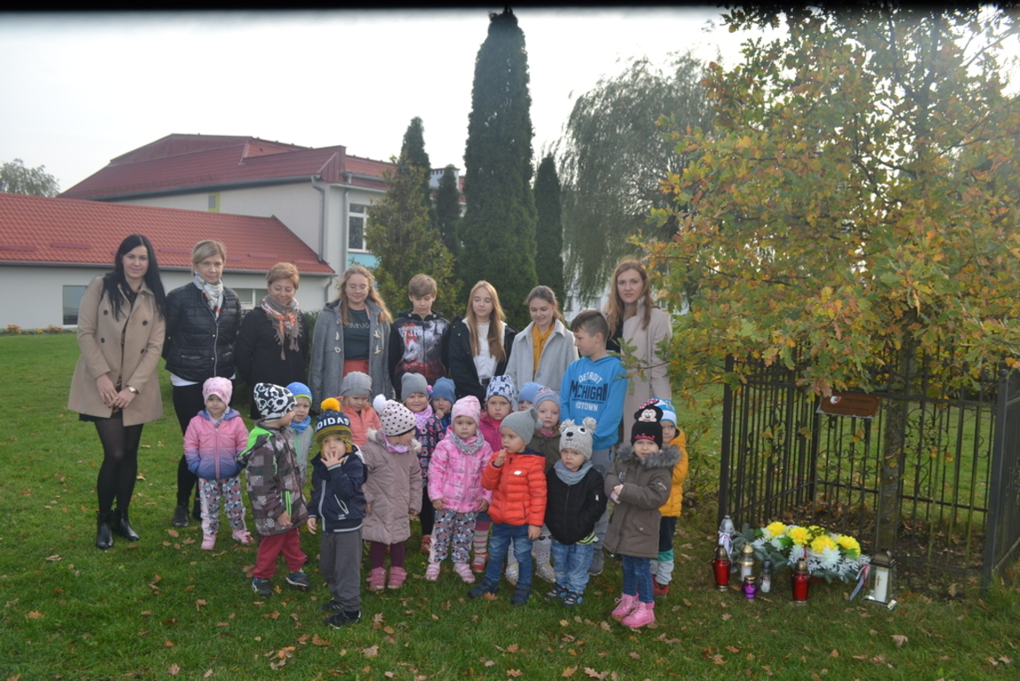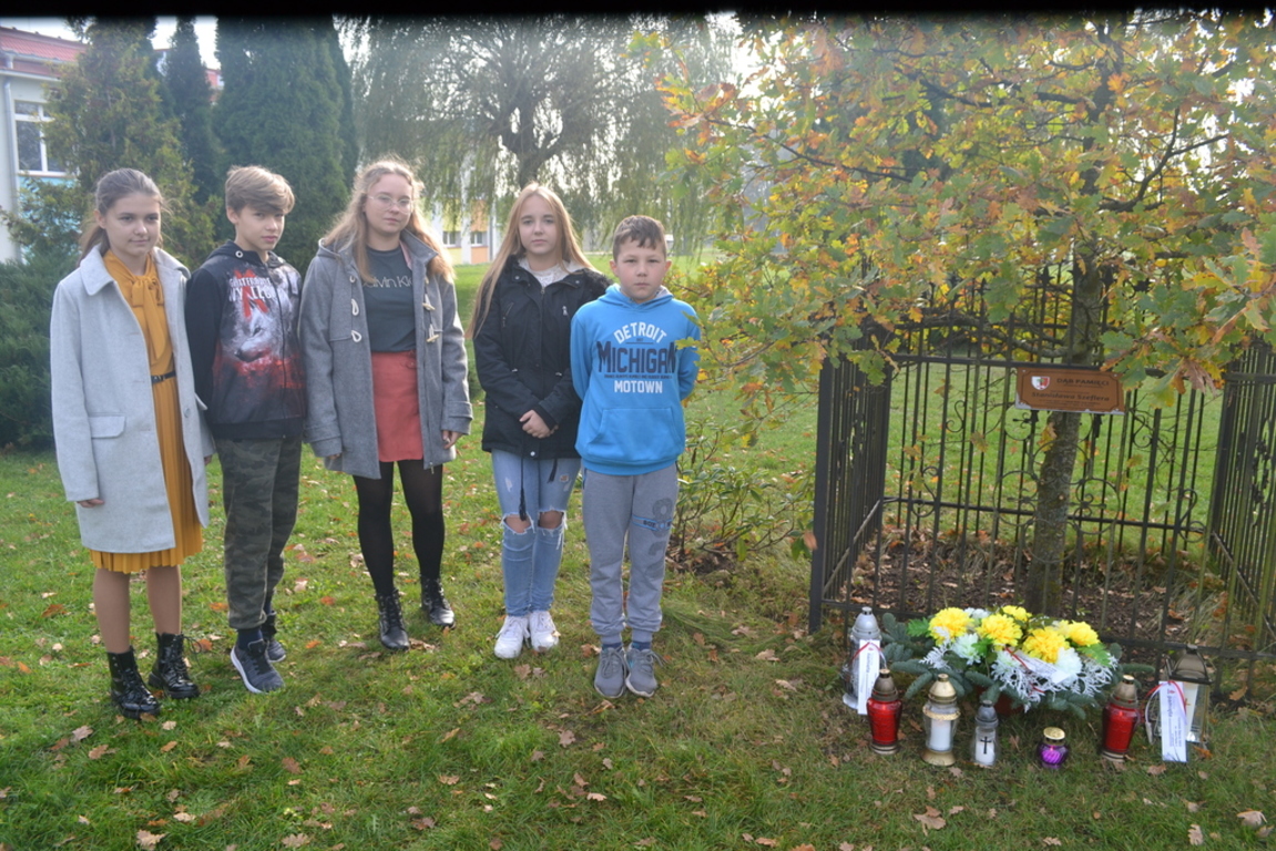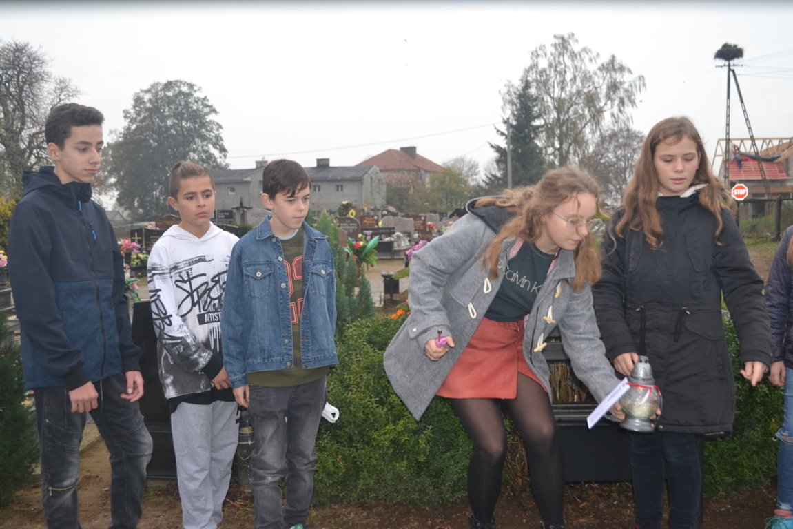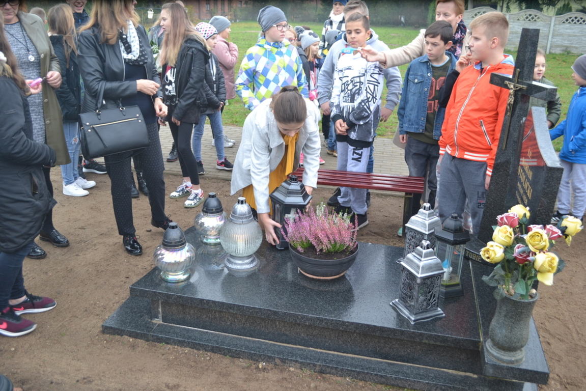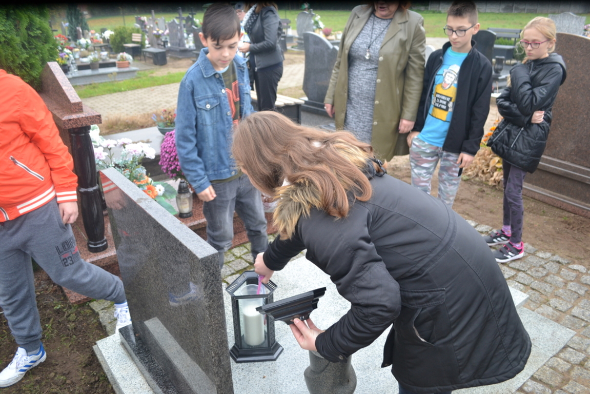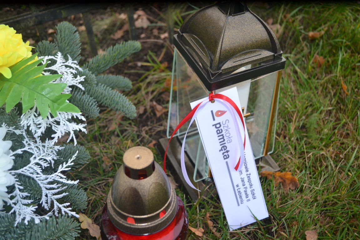 Uczniowie naszej szkoły i wychowankowie przedszkola wraz z nauczycielami przystąpili do akcji zorganizowanej przez Ministerstwo Edukacji Narodowej „Szkoła pamięta”. W dniu akcji tj. w piątek 25 października nasi uczniowie i wychowankowie odwiedzili cmenatarze w Łebieniu, Lęborku i Brzeźnie Lęborskim. Na tychże cmenatarzach spoczywają byli dyrektorzy, nauczyciele i pracownicy Szkoły Podstawowej i Przedszkola w Łebieniu. Na ich grobach uczniowie zapalili świeczki . Na cmentarzu w Łebieniu spoczywają również Ci, którzy w tej miejscowości szczególnie zostawili swój ślad: sołtysi, strażacy, pracownicy administracji samorządowej. O nich nasi ucziowie również pamiętali. Przy naszej szkole rośnie "dąb katyński" poświęcony jednej z ofiar zbrodni katyńskiej. Pod dębem wychowankowie przedszkola i uczniowie zapalili znicze i położyli kwiaty. Tym samym uczcili pamięć wszystkich ofiar totalitarnych reżimów. Ostatnim punktem akcji będzie żywa lekcja historii. W środę tj. 30 października uczniowie klasy siódmej i ósmej udadzą się do Krępy Kaszubskiej na cmentarz Męczenników Marszu Śmierci Kl Stutthof, by upamiętnić ich bohaterską i męczeńską śmierć światełkiem zapalonego znicza. Po lekcji na cmentarzu uczniowie udzadzą się do Izby Pamięci im poświęconej. Lekcję w Izbie Pamięci poprowadzi nauczycielka historii Elżbieta Laskiewicz