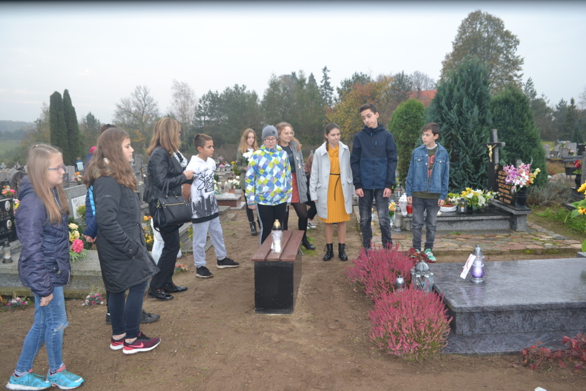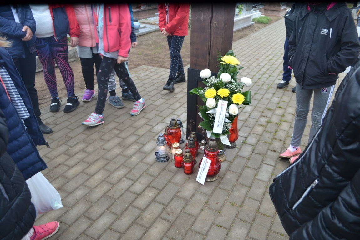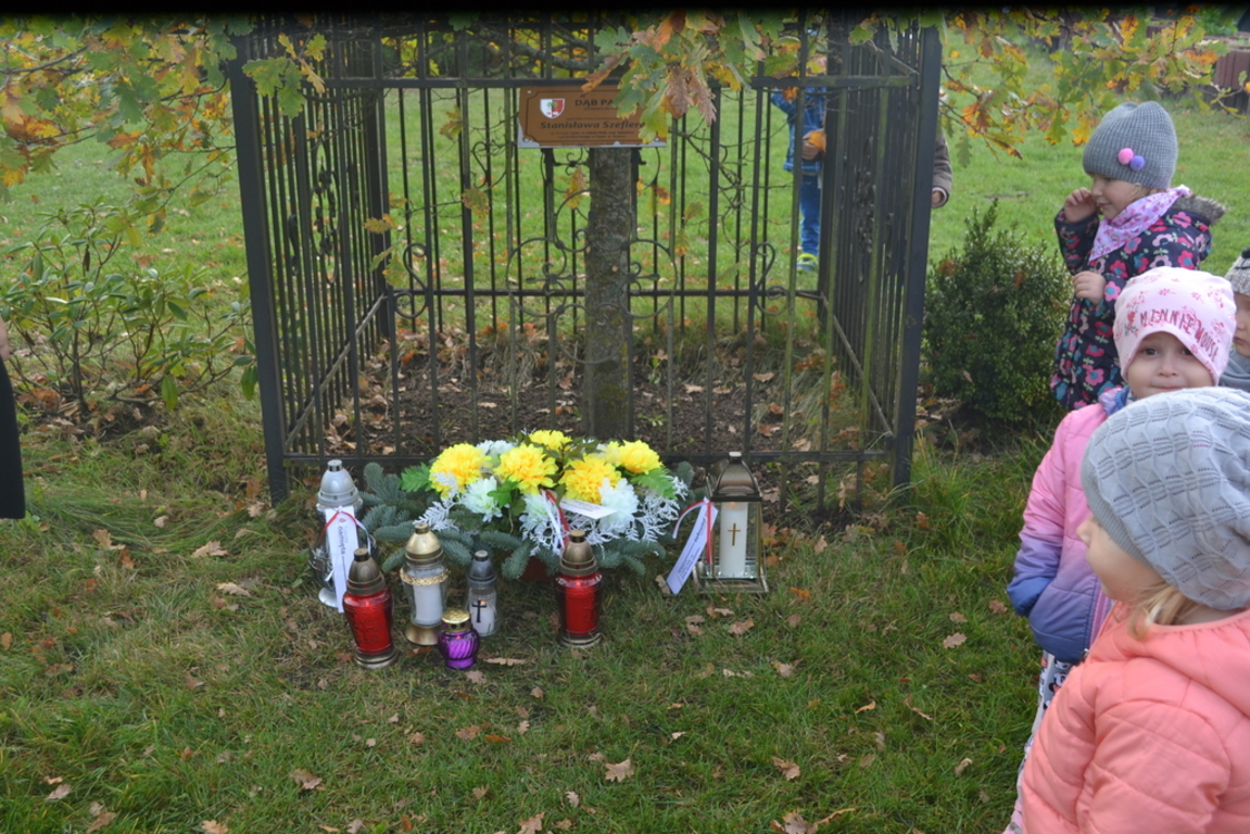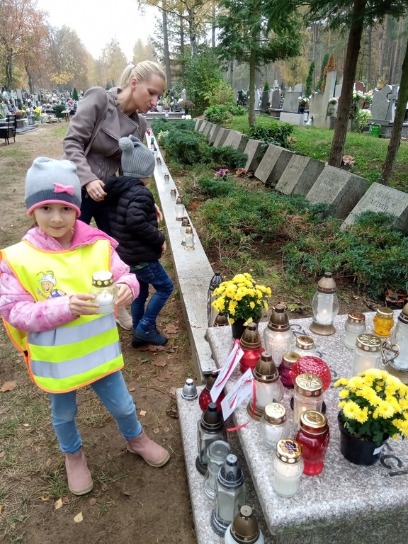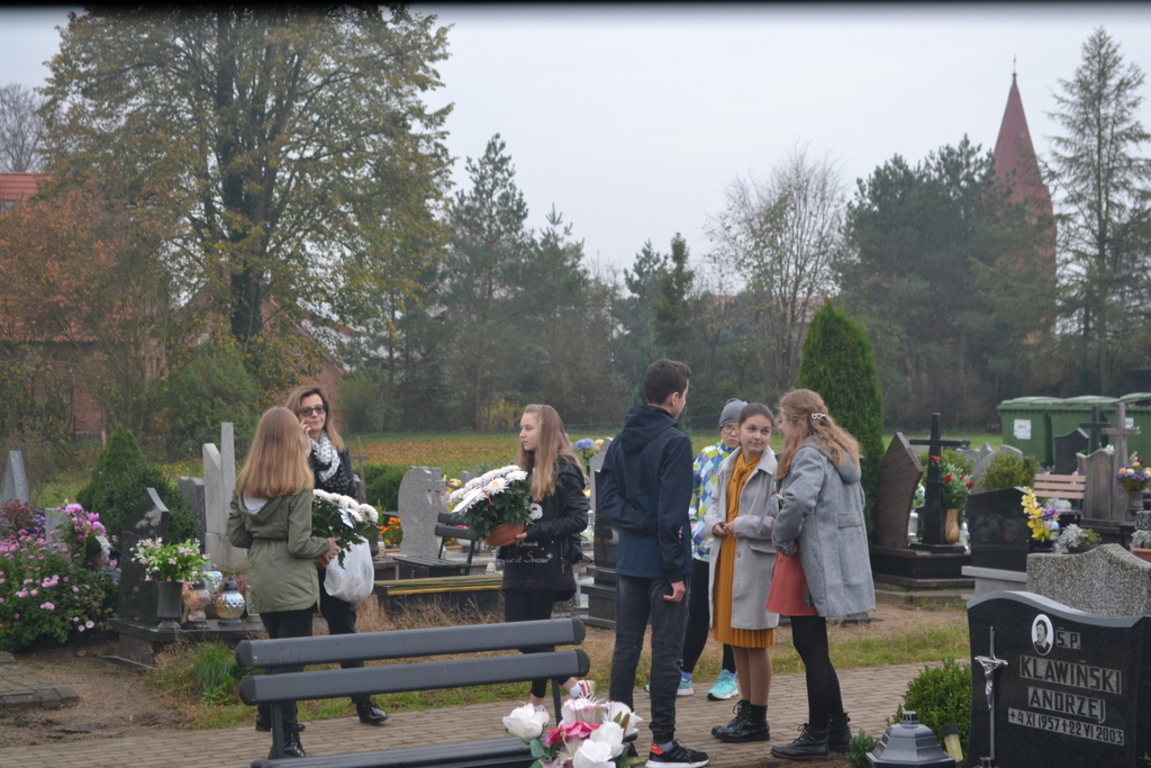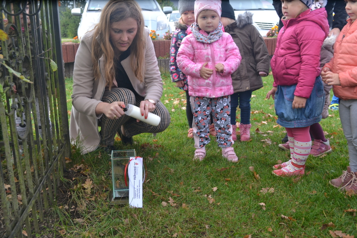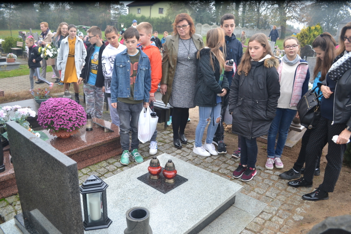 Uczniowie naszej szkoły i wychowankowie przedszkola wraz z nauczycielami przystąpili do akcji zorganizowanej przez Ministerstwo Edukacji Narodowej „Szkoła pamięta”. W dniu akcji tj. w piątek 25 października nasi uczniowie i wychowankowie odwiedzili cmenatarze w Łebieniu, Lęborku i Brzeźnie Lęborskim. Na tychże cmenatarzach spoczywają byli dyrektorzy, nauczyciele i pracownicy Szkoły Podstawowej i Przedszkola w Łebieniu. Na ich grobach uczniowie zapalili świeczki . Na cmentarzu w Łebieniu spoczywają również Ci, którzy w tej miejscowości szczególnie zostawili swój ślad: sołtysi, strażacy, pracownicy administracji samorządowej. O nich nasi ucziowie również pamiętali. Przy naszej szkole rośnie "dąb katyński" poświęcony jednej z ofiar zbrodni katyńskiej. Pod dębem wychowankowie przedszkola i uczniowie zapalili znicze i położyli kwiaty. Tym samym uczcili pamięć wszystkich ofiar totalitarnych reżimów. Ostatnim punktem akcji będzie żywa lekcja historii. W środę tj. 30 października uczniowie klasy siódmej i ósmej udadzą się do Krępy Kaszubskiej na cmentarz Męczenników Marszu Śmierci Kl Stutthof, by upamiętnić ich bohaterską i męczeńską śmierć światełkiem zapalonego znicza. Po lekcji na cmentarzu uczniowie udzadzą się do Izby Pamięci im poświęconej. Lekcję w Izbie Pamięci poprowadzi nauczycielka historii Elżbieta Laskiewicz
