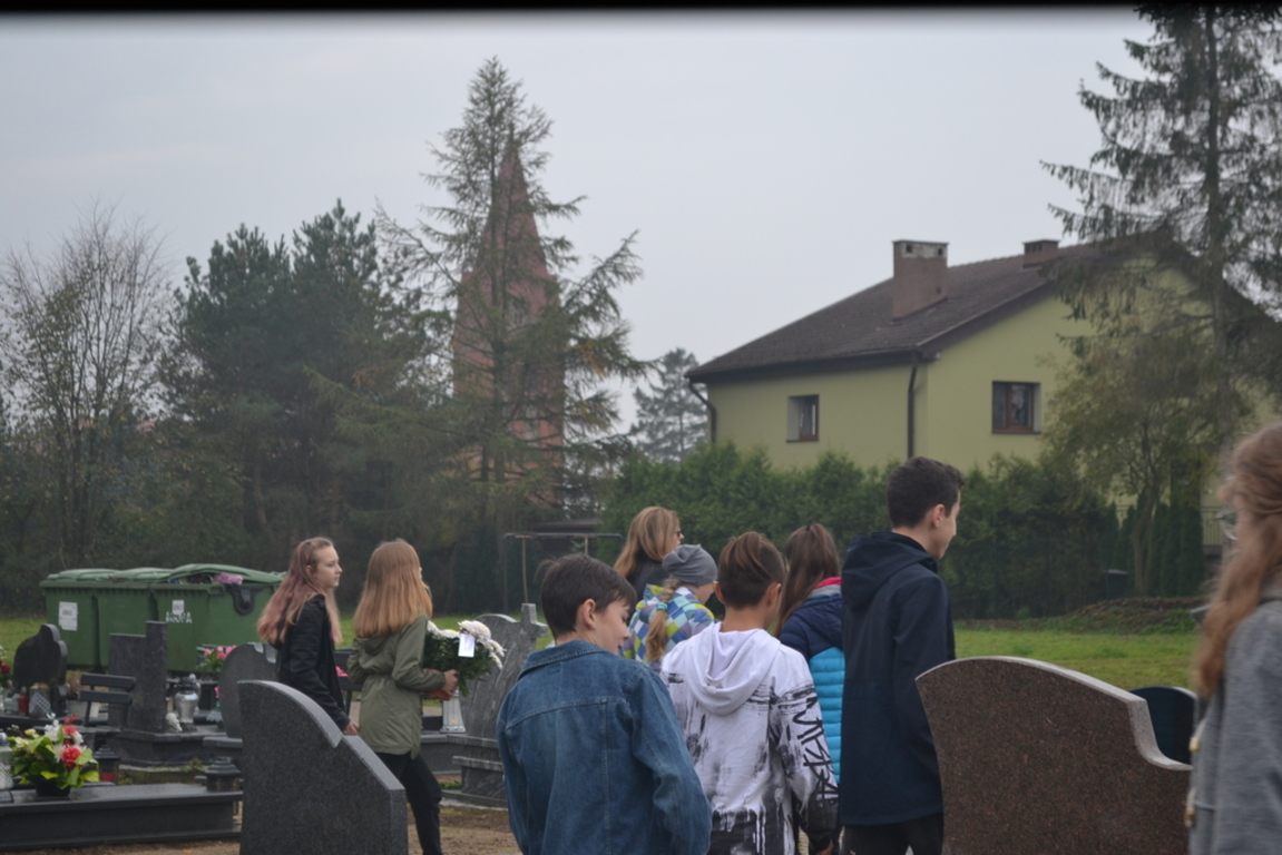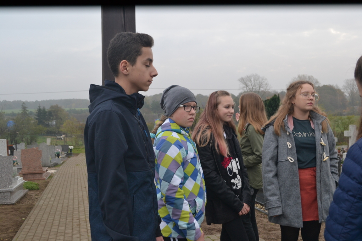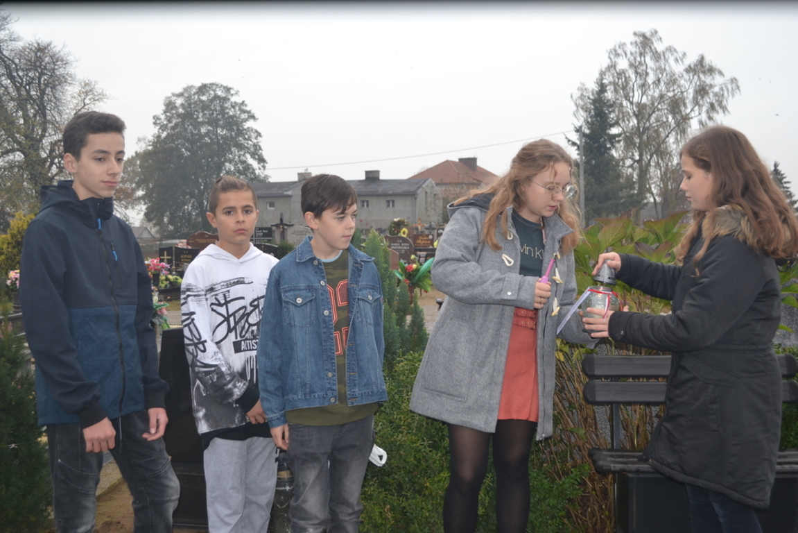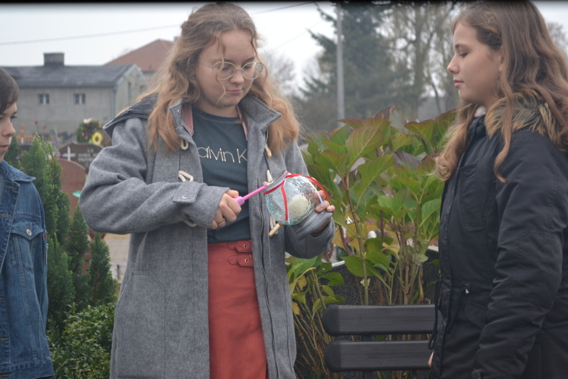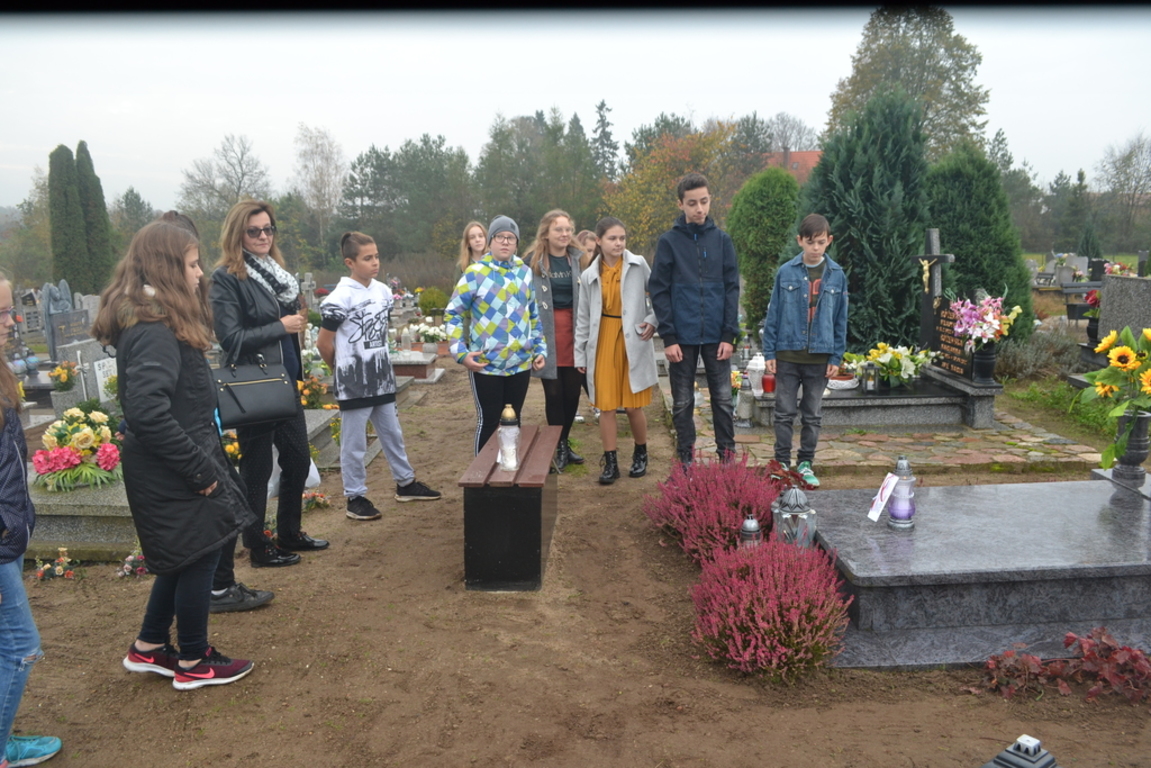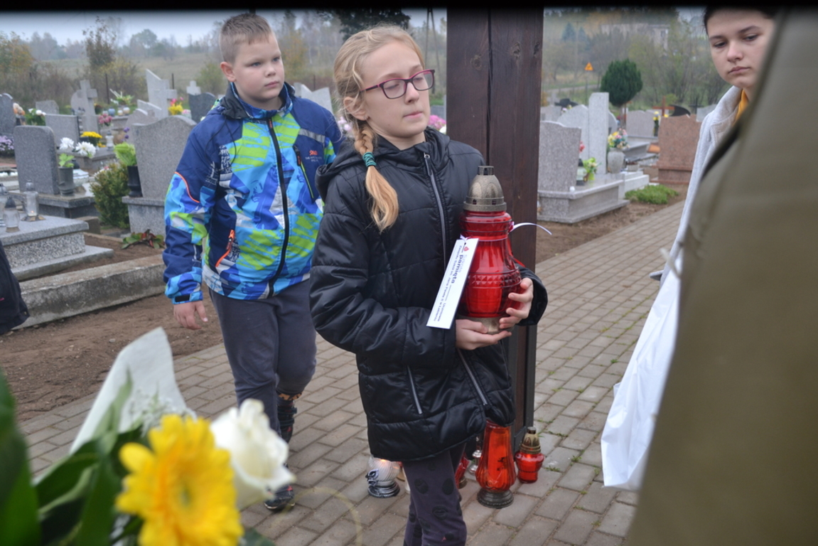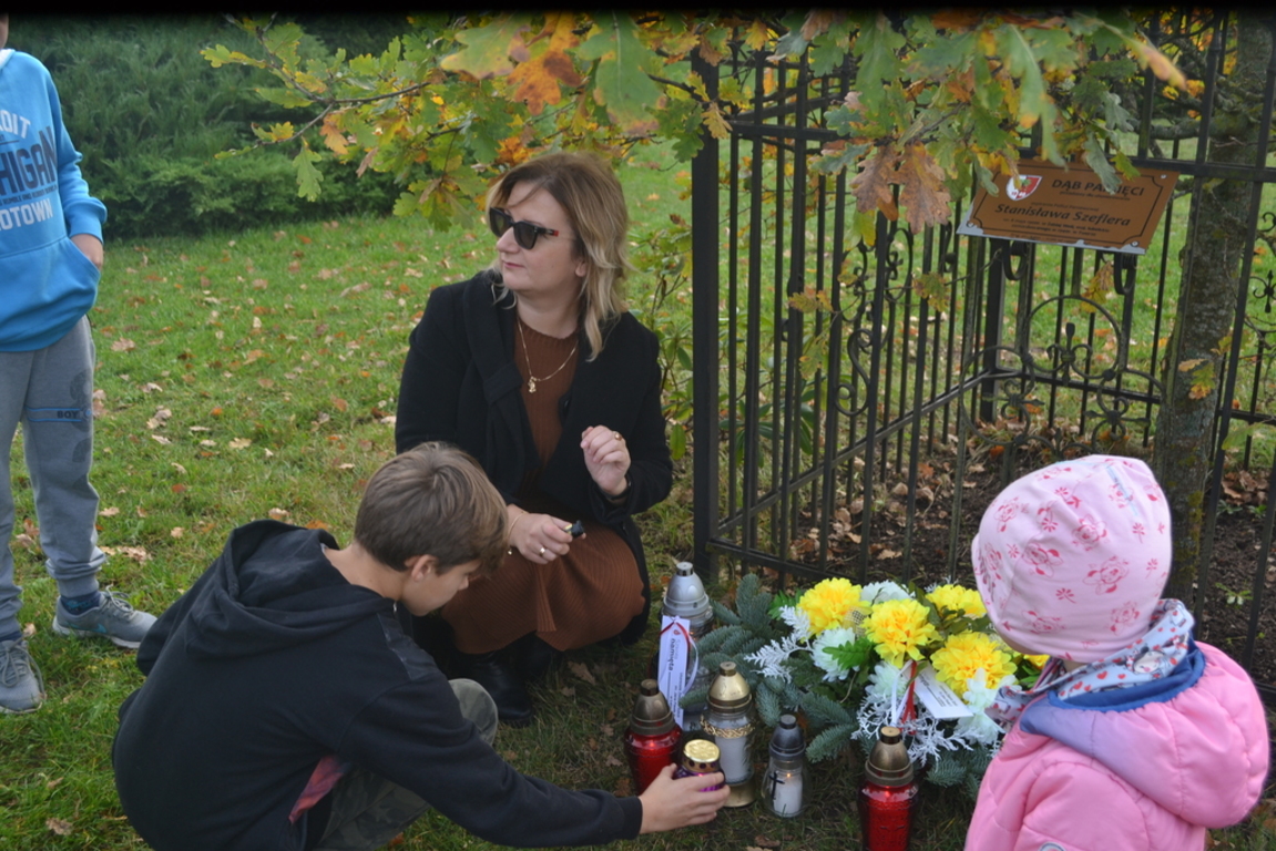 Uczniowie naszej szkoły i wychowankowie przedszkola wraz z nauczycielami przystąpili do akcji zorganizowanej przez Ministerstwo Edukacji Narodowej „Szkoła pamięta”. W dniu akcji tj. w piątek 25 października nasi uczniowie i wychowankowie odwiedzili cmenatarze w Łebieniu, Lęborku i Brzeźnie Lęborskim. Na tychże cmenatarzach spoczywają byli dyrektorzy, nauczyciele i pracownicy Szkoły Podstawowej i Przedszkola w Łebieniu. Na ich grobach uczniowie zapalili świeczki . Na cmentarzu w Łebieniu spoczywają również Ci, którzy w tej miejscowości szczególnie zostawili swój ślad: sołtysi, strażacy, pracownicy administracji samorządowej. O nich nasi ucziowie również pamiętali. Przy naszej szkole rośnie "dąb katyński" poświęcony jednej z ofiar zbrodni katyńskiej. Pod dębem wychowankowie przedszkola i uczniowie zapalili znicze i położyli kwiaty. Tym samym uczcili pamięć wszystkich ofiar totalitarnych reżimów. Ostatnim punktem akcji będzie żywa lekcja historii. W środę tj. 30 października uczniowie klasy siódmej i ósmej udadzą się do Krępy Kaszubskiej na cmentarz Męczenników Marszu Śmierci Kl Stutthof, by upamiętnić ich bohaterską i męczeńską śmierć światełkiem zapalonego znicza. Po lekcji na cmentarzu uczniowie udzadzą się do Izby Pamięci im poświęconej. Lekcję w Izbie Pamięci poprowadzi nauczycielka historii Elżbieta Laskiewicz