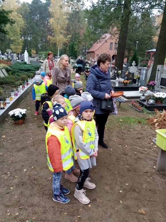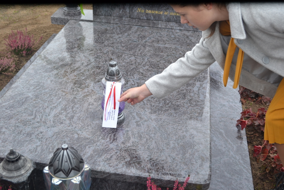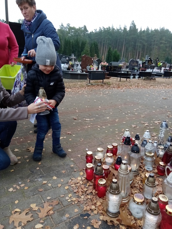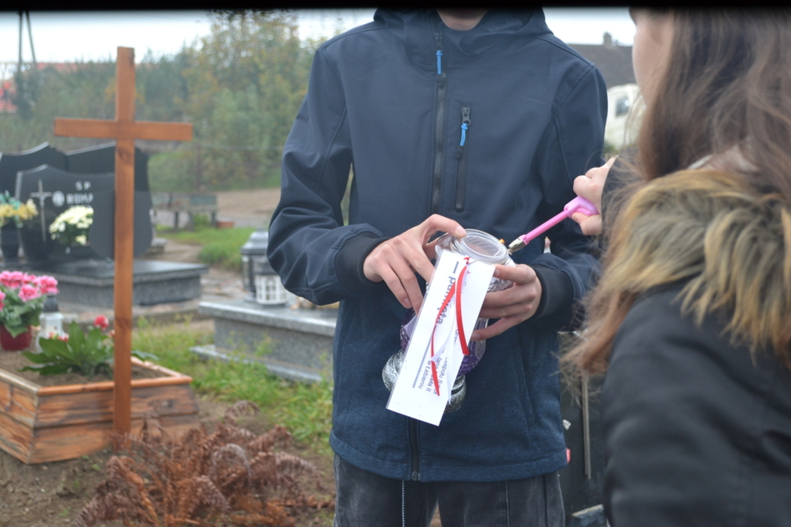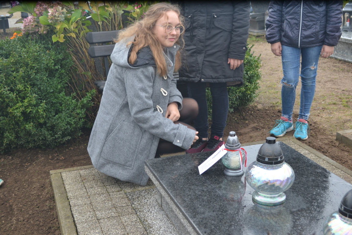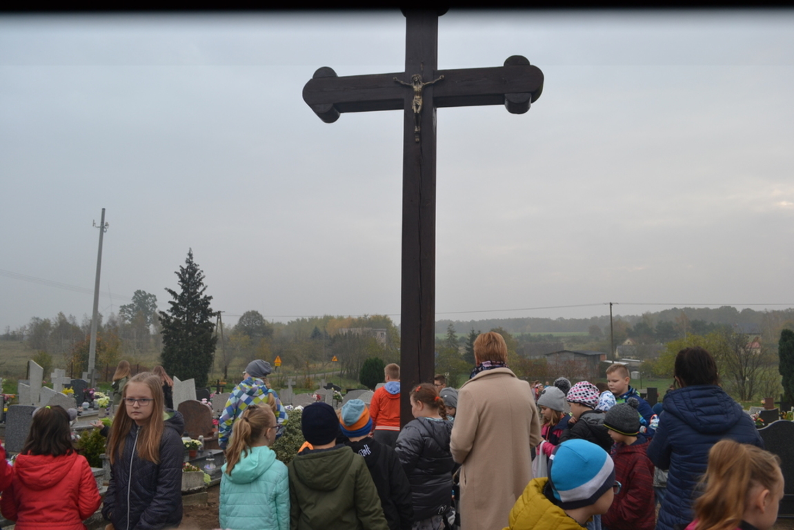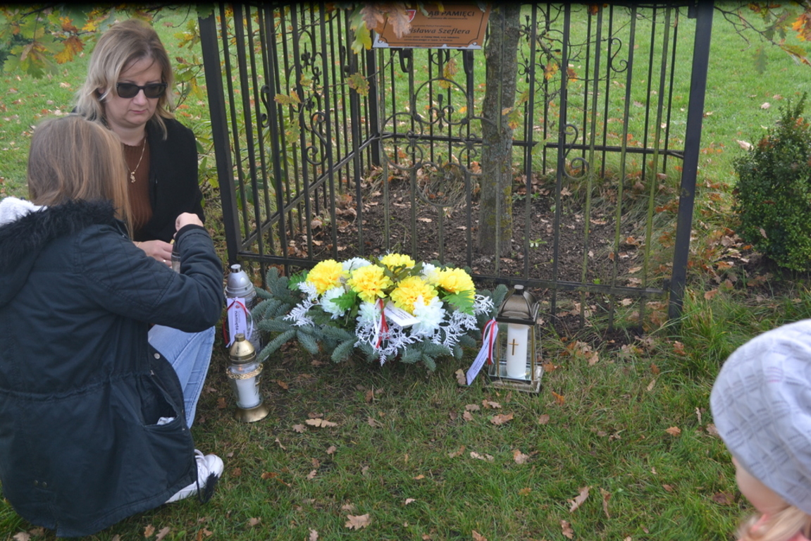 Uczniowie naszej szkoły i wychowankowie przedszkola wraz z nauczycielami przystąpili do akcji zorganizowanej przez Ministerstwo Edukacji Narodowej „Szkoła pamięta”. W dniu akcji tj. w piątek 25 października nasi uczniowie i wychowankowie odwiedzili cmenatarze w Łebieniu, Lęborku i Brzeźnie Lęborskim. Na tychże cmenatarzach spoczywają byli dyrektorzy, nauczyciele i pracownicy Szkoły Podstawowej i Przedszkola w Łebieniu. Na ich grobach uczniowie zapalili świeczki . Na cmentarzu w Łebieniu spoczywają również Ci, którzy w tej miejscowości szczególnie zostawili swój ślad: sołtysi, strażacy, pracownicy administracji samorządowej. O nich nasi ucziowie również pamiętali. Przy naszej szkole rośnie "dąb katyński" poświęcony jednej z ofiar zbrodni katyńskiej. Pod dębem wychowankowie przedszkola i uczniowie zapalili znicze i położyli kwiaty. Tym samym uczcili pamięć wszystkich ofiar totalitarnych reżimów. Ostatnim punktem akcji będzie żywa lekcja historii. W środę tj. 30 października uczniowie klasy siódmej i ósmej udadzą się do Krępy Kaszubskiej na cmentarz Męczenników Marszu Śmierci Kl Stutthof, by upamiętnić ich bohaterską i męczeńską śmierć światełkiem zapalonego znicza. Po lekcji na cmentarzu uczniowie udzadzą się do Izby Pamięci im poświęconej. Lekcję w Izbie Pamięci poprowadzi nauczycielka historii Elżbieta Laskiewicz