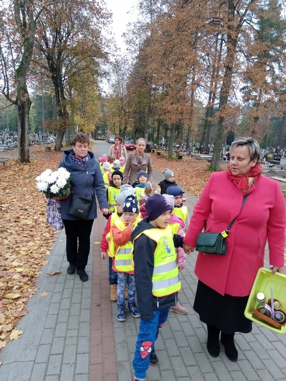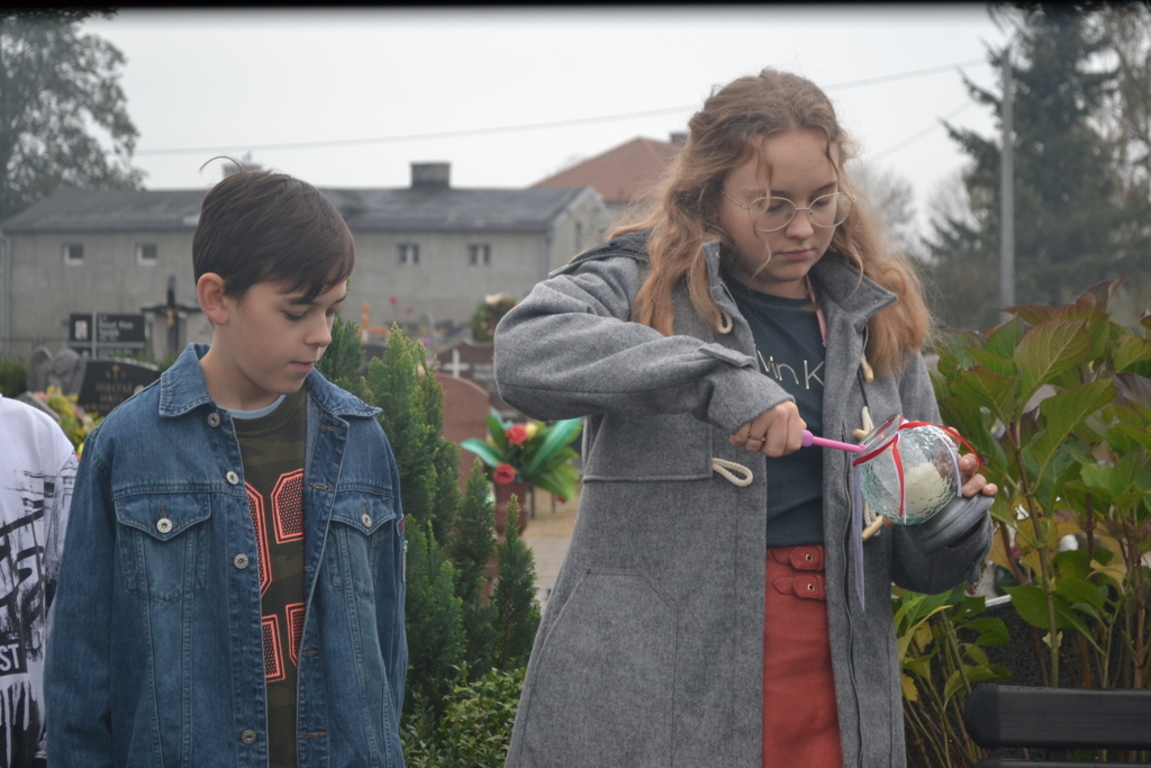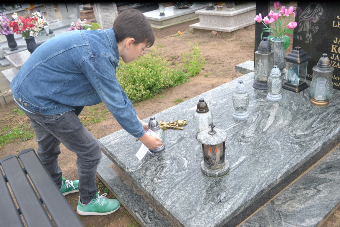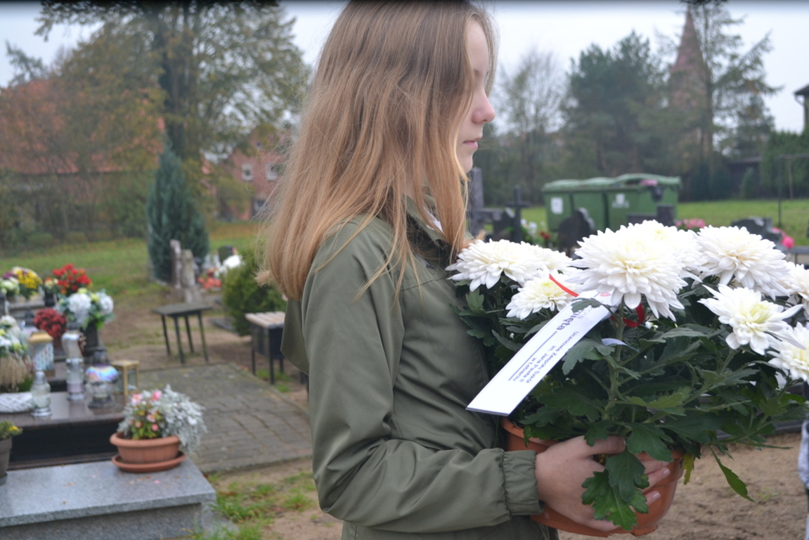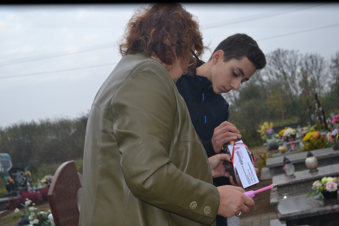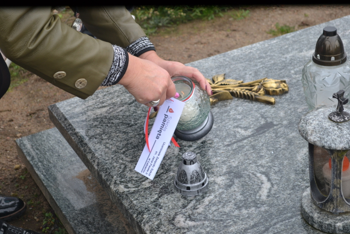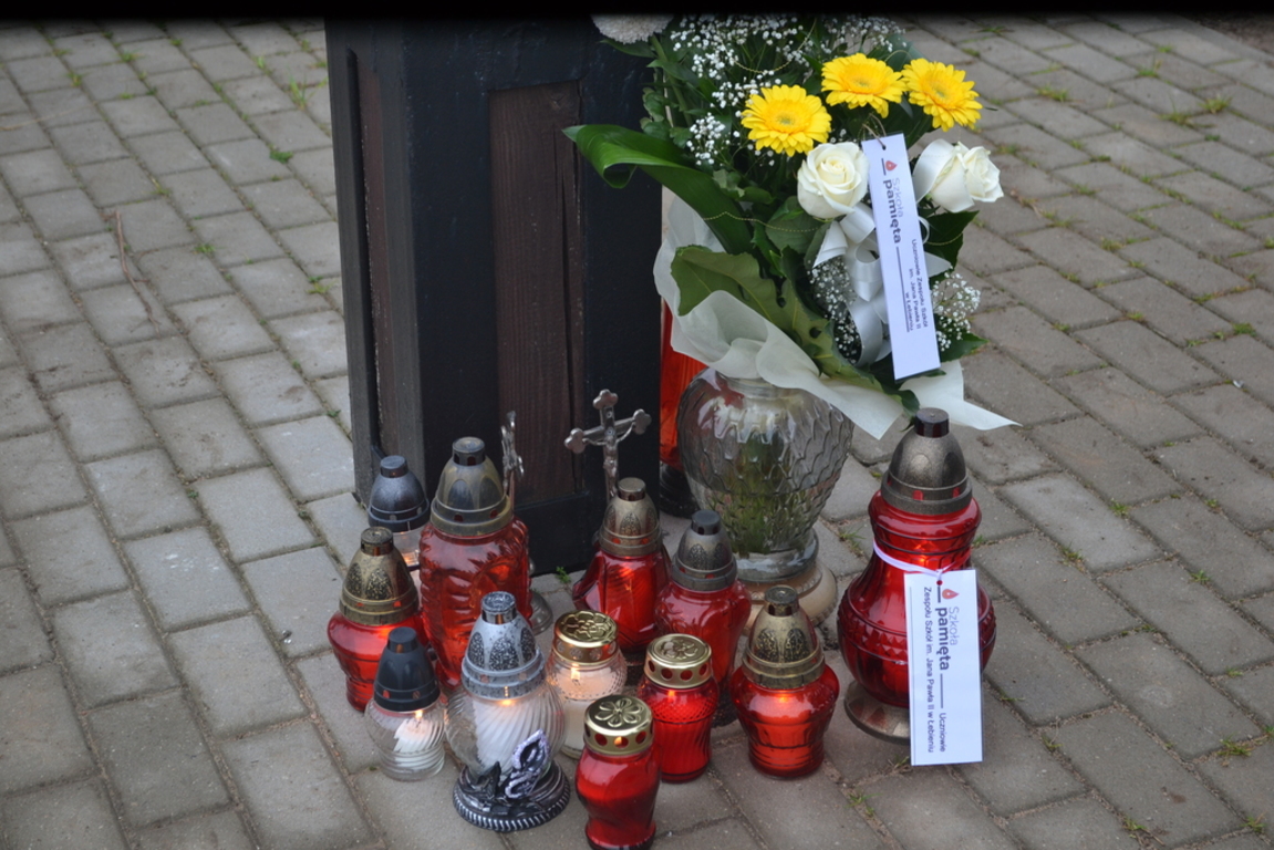 Uczniowie naszej szkoły i wychowankowie przedszkola wraz z nauczycielami przystąpili do akcji zorganizowanej przez Ministerstwo Edukacji Narodowej „Szkoła pamięta”. W dniu akcji tj. w piątek 25 października nasi uczniowie i wychowankowie odwiedzili cmenatarze w Łebieniu, Lęborku i Brzeźnie Lęborskim. Na tychże cmenatarzach spoczywają byli dyrektorzy, nauczyciele i pracownicy Szkoły Podstawowej i Przedszkola w Łebieniu. Na ich grobach uczniowie zapalili świeczki . Na cmentarzu w Łebieniu spoczywają również Ci, którzy w tej miejscowości szczególnie zostawili swój ślad: sołtysi, strażacy, pracownicy administracji samorządowej. O nich nasi ucziowie również pamiętali. Przy naszej szkole rośnie "dąb katyński" poświęcony jednej z ofiar zbrodni katyńskiej. Pod dębem wychowankowie przedszkola i uczniowie zapalili znicze i położyli kwiaty. Tym samym uczcili pamięć wszystkich ofiar totalitarnych reżimów. Ostatnim punktem akcji będzie żywa lekcja historii. W środę tj. 30 października uczniowie klasy siódmej i ósmej udadzą się do Krępy Kaszubskiej na cmentarz Męczenników Marszu Śmierci Kl Stutthof, by upamiętnić ich bohaterską i męczeńską śmierć światełkiem zapalonego znicza. Po lekcji na cmentarzu uczniowie udzadzą się do Izby Pamięci im poświęconej. Lekcję w Izbie Pamięci poprowadzi nauczycielka historii Elżbieta Laskiewicz