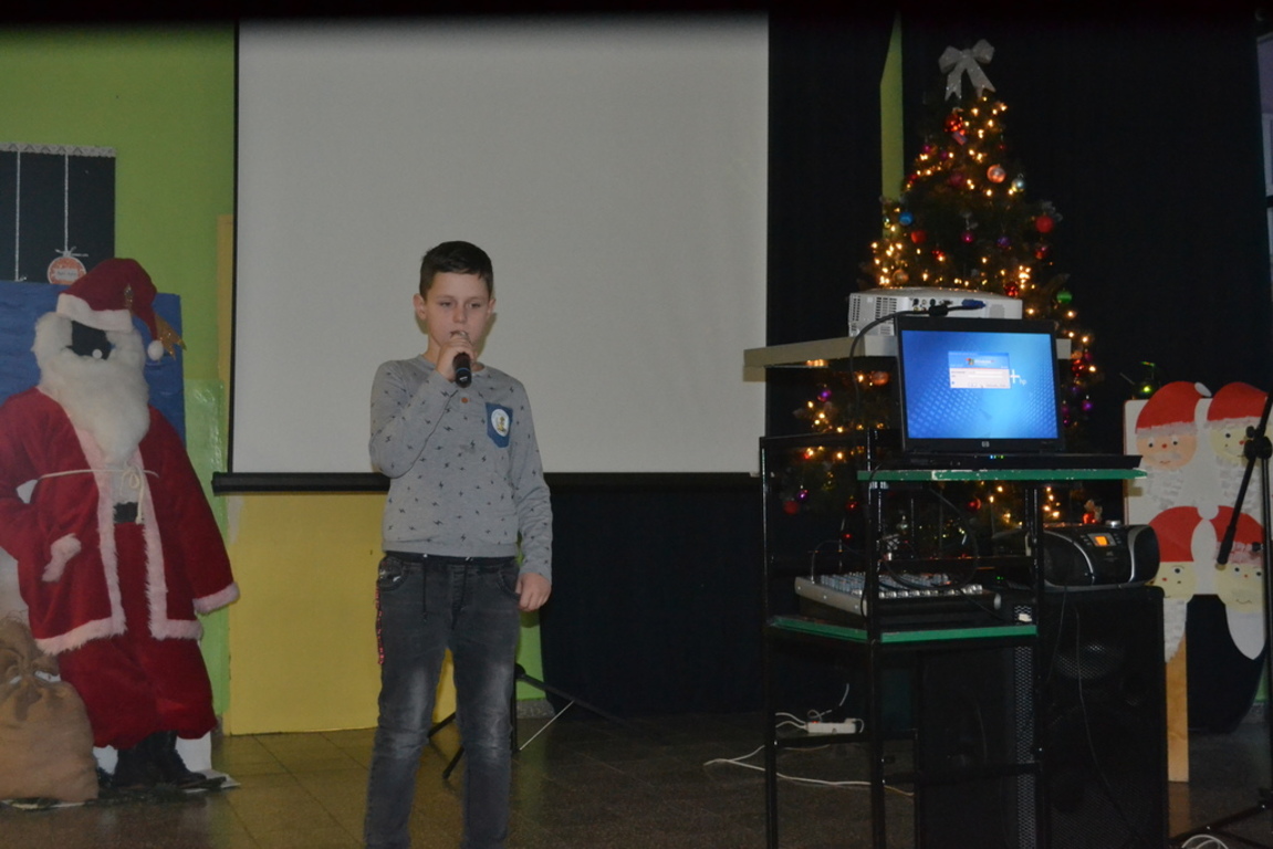 20 grudnia odbył się w naszej szkole Konkurs Kolęd i Pastorałek dla klas I-III. Celem konkursu było podtrzymanie tradycji śpiewania kolęd i pastorałek oraz umożliwienie dzieciom prezentowania swoich umiejętności i zdolności wokalnych. Konkurs przebiegał w miłym, świątecznym nastroju. Wszystkie dzieci z dużym zaangażowaniem, pod kierunkiem swoich wychowawczyń przygotowały się do występu. Na koniec uczestnicy otrzymali pamiątkowe dyplomy i nagrody rzeczowe.