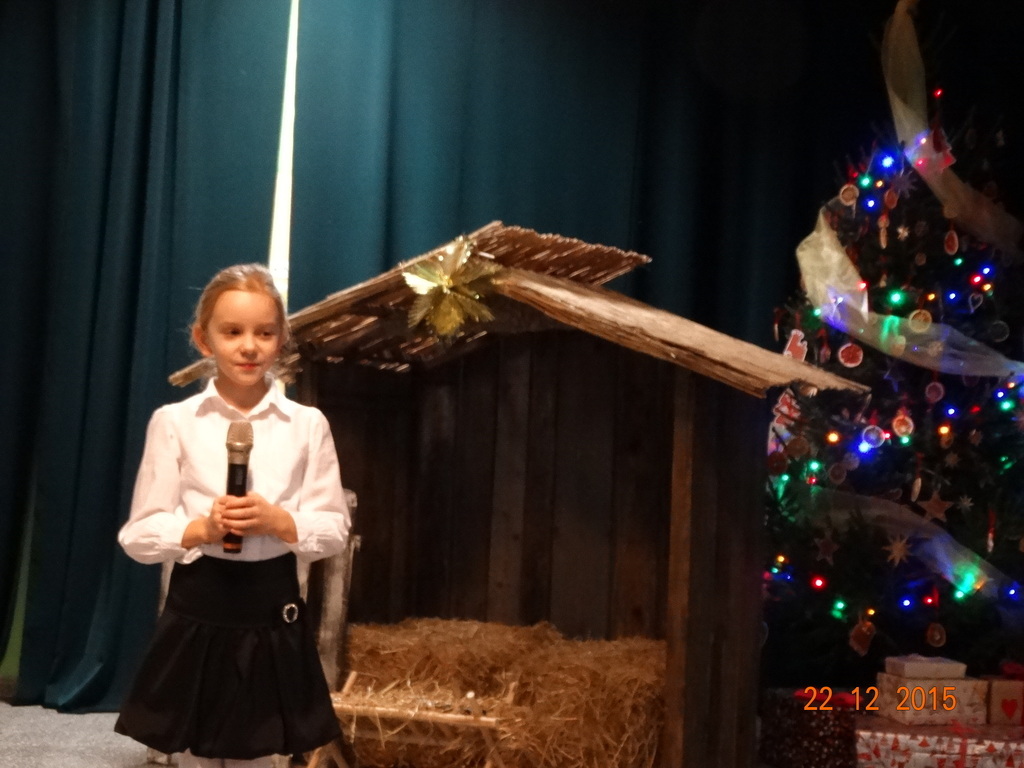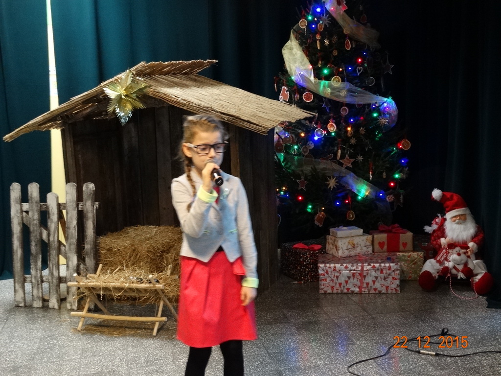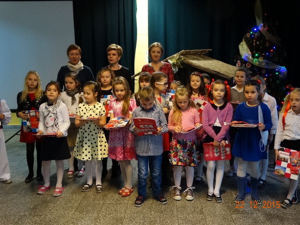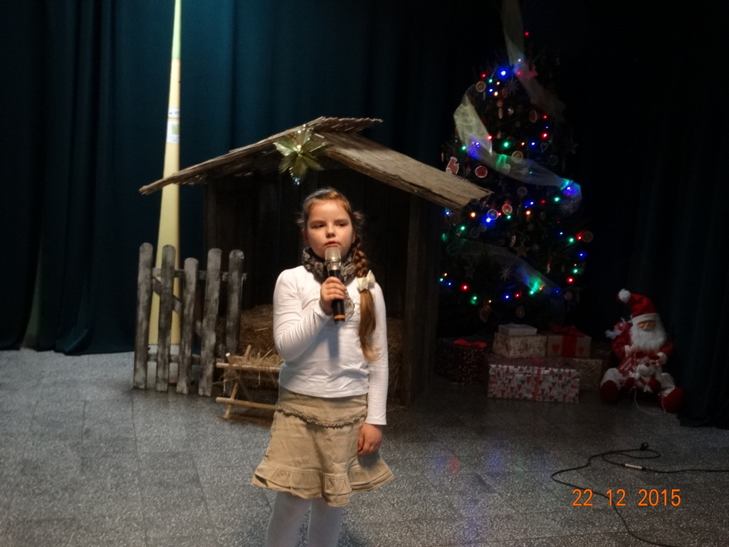 Tradycyjnie w ostatnim dniu przed przerwą świąteczno-noworoczną, w naszej szkole odbywa się konkurs kolęd i pastorałek dla dzieci z klas I-III. W tym roku było wielu śmiałków. Jury w składzie: p. Beata Suchta, p. Wioleta Marczewska oraz p. Dorota Klawikowska miały bardzo trudną pracę. Wszystkie odważne dzieci, które zaprezentowały świąteczny utwór, otrzymały upominki, ale wg jury na szczególne wyróżnienie zasłużyli:
