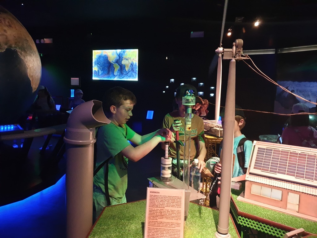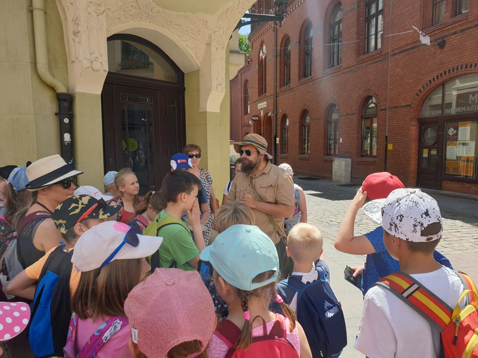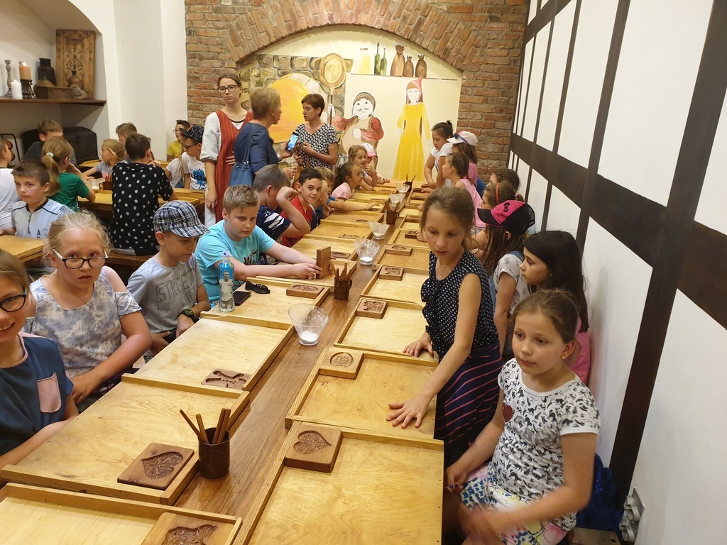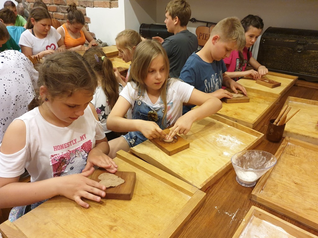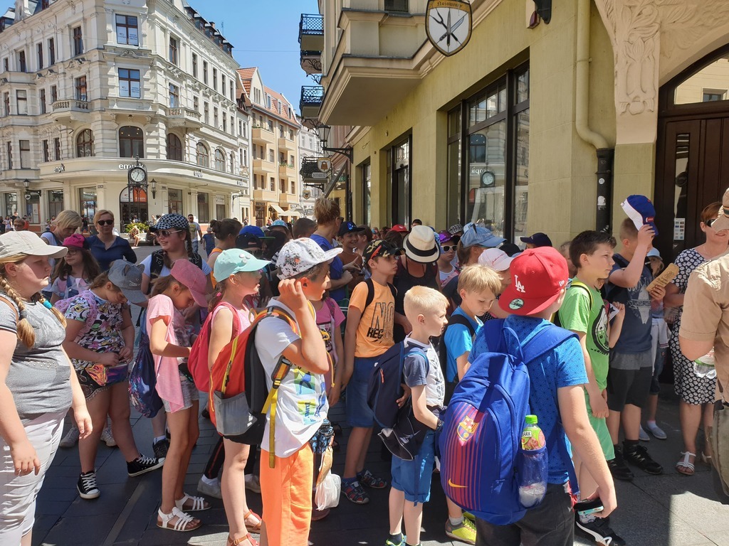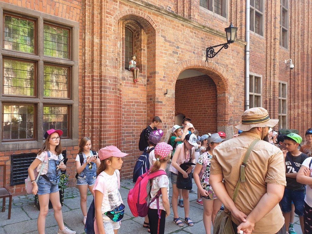 We wtorek, 4 czerwca 2019 roku uczniowie naszej szkoły wybrali się na całodniową wycieczkę do Torunia. Autokar z panią pilot podjechał punktualnie, a o godzinie 6.40 wyruszyliśmy. Jeszcze tylko wizyta w Komendzie Powiatowe Policji w Lęborku w celu sprawdzenia autokaru i w drogę ! Trasa była dość długa, ale mieliśmy jeden postój na zjedzenie śniadania. W autokarze pani pilot opowiadała nam o Toruniu. Poznaliśmy legendy toruńskie, a także dowiedzieliśmy się, skąd wzięła się nazwa tego zabytkowego miasta. Po przyjeździe wizyta w Piernikarni Mistrza Bogumiła , gdzie poznaliśmy tajniki wyrobu najznakomitszych, korzennych toruńskich smakołyków oraz wspólnie je wypiekliśmy. Potem wizyta w Sali Geodium , gdzie znajduje się interaktywna wystawa poświęcona Ziemi jako planecie. Jej centralnym elementem jest obracający się i odpowiednio oświetlony model kuli ziemskiej o średnicy 2,15 m. Dzięki grze świateł w łatwy sposób można przekonać się, dlaczego mamy cztery pory roku, a po dniu następuje noc. Wokół globusa znajdują się interaktywne urządzenia, dzięki którym można samodzielnie eksperymentować, włączając odpowiednie przyciski. Po tej bardzo pouczającej wizycie mieliśmy spacer z przewodnikiem Torunia po Staromiejskiej Dzielnicy z zespołem zabytków Starego Miasta. Pan, który nas oprowadzał mówił ciekawie. Po południu i po obiedzie nowy atrakcyjny obiekt - Niewidzialny Dom, który pokazał nam świat, którego nie możemy zobaczyć. Potem jeszcze czas na zakupy pierników i innych pamiątek, pyszne lody i powrót do domu .