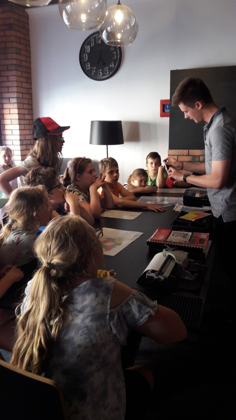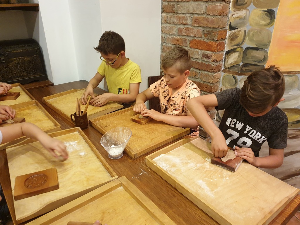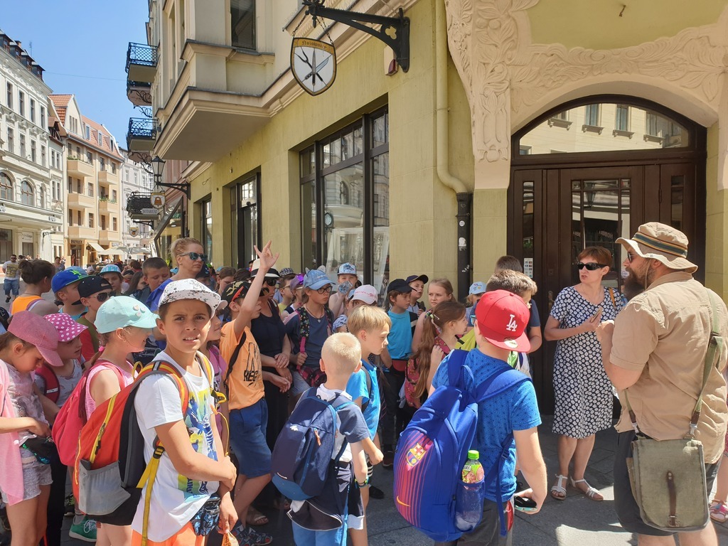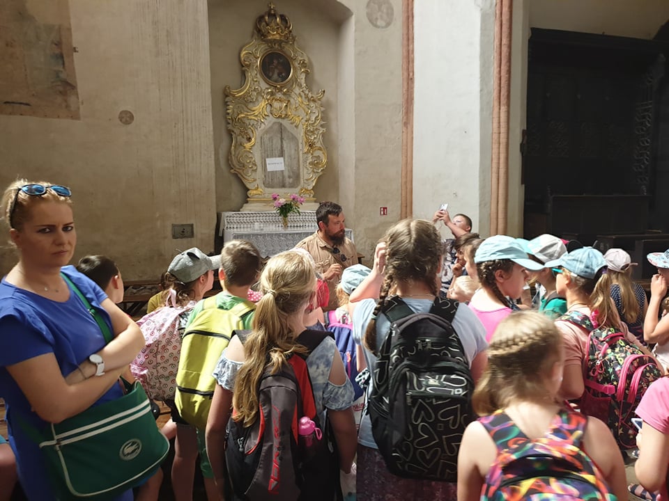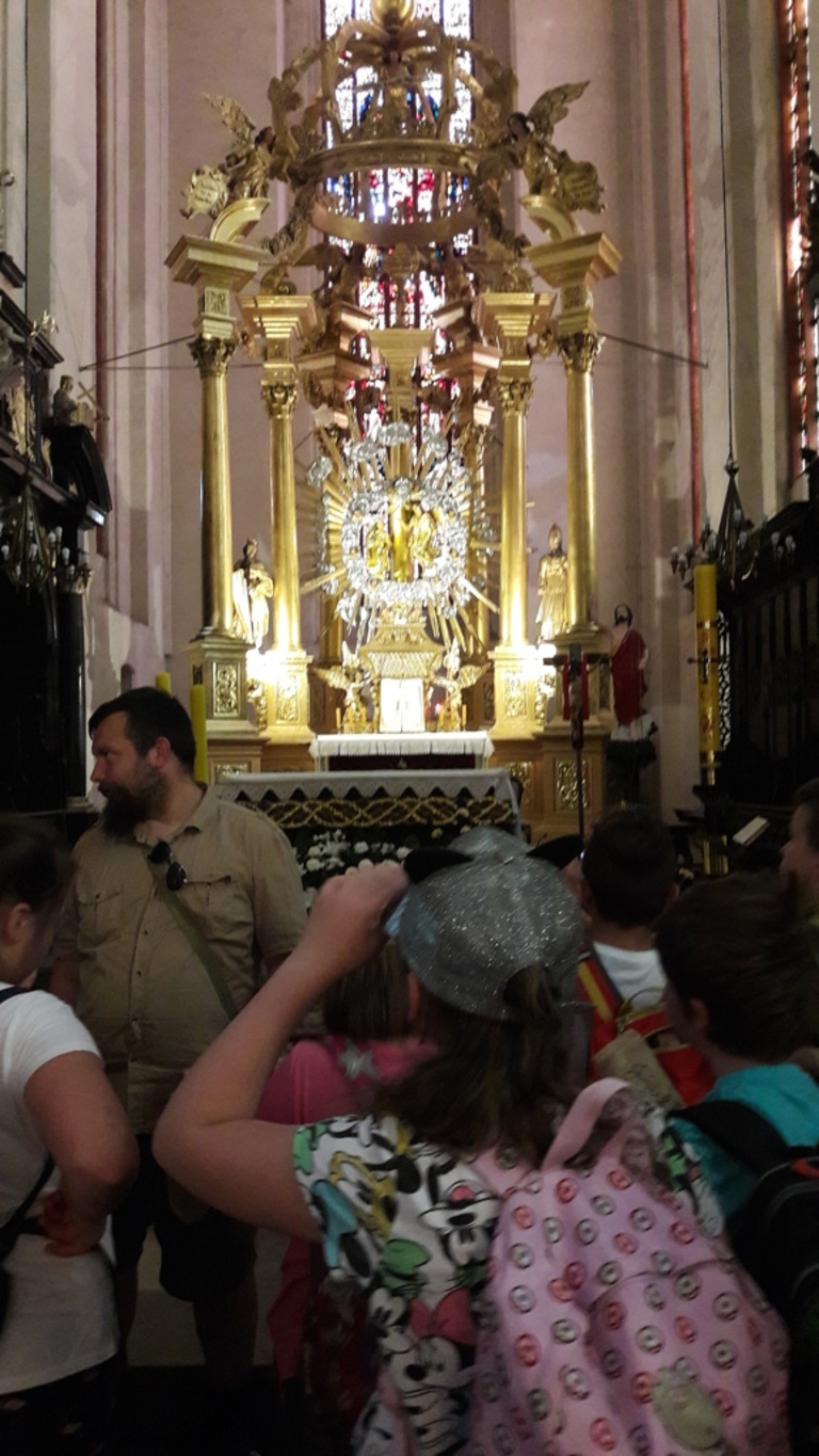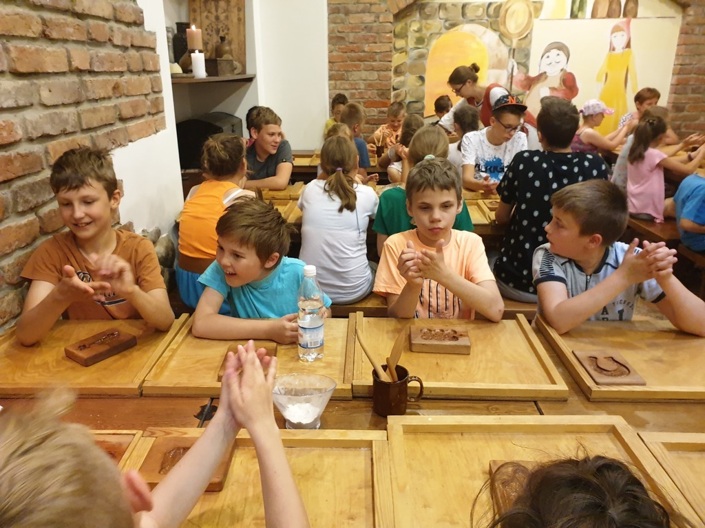 We wtorek, 4 czerwca 2019 roku uczniowie naszej szkoły wybrali się na całodniową wycieczkę do Torunia. Autokar z panią pilot podjechał punktualnie, a o godzinie 6.40 wyruszyliśmy. Jeszcze tylko wizyta w Komendzie Powiatowe Policji w Lęborku w celu sprawdzenia autokaru i w drogę ! Trasa była dość długa, ale mieliśmy jeden postój na zjedzenie śniadania. W autokarze pani pilot opowiadała nam o Toruniu. Poznaliśmy legendy toruńskie, a także dowiedzieliśmy się, skąd wzięła się nazwa tego zabytkowego miasta. Po przyjeździe wizyta w Piernikarni Mistrza Bogumiła , gdzie poznaliśmy tajniki wyrobu najznakomitszych, korzennych toruńskich smakołyków oraz wspólnie je wypiekliśmy. Potem wizyta w Sali Geodium , gdzie znajduje się interaktywna wystawa poświęcona Ziemi jako planecie. Jej centralnym elementem jest obracający się i odpowiednio oświetlony model kuli ziemskiej o średnicy 2,15 m. Dzięki grze świateł w łatwy sposób można przekonać się, dlaczego mamy cztery pory roku, a po dniu następuje noc. Wokół globusa znajdują się interaktywne urządzenia, dzięki którym można samodzielnie eksperymentować, włączając odpowiednie przyciski. Po tej bardzo pouczającej wizycie mieliśmy spacer z przewodnikiem Torunia po Staromiejskiej Dzielnicy z zespołem zabytków Starego Miasta. Pan, który nas oprowadzał mówił ciekawie. Po południu i po obiedzie nowy atrakcyjny obiekt - Niewidzialny Dom, który pokazał nam świat, którego nie możemy zobaczyć. Potem jeszcze czas na zakupy pierników i innych pamiątek, pyszne lody i powrót do domu .