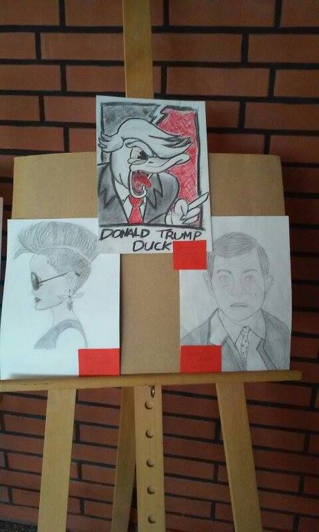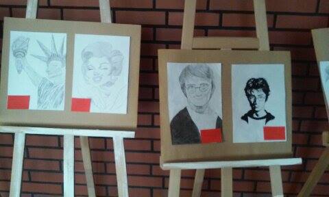 Na korytarzu została także zaprezentowana wystawa prac konkursowych. Uczniowie z klas 4-6 i gimnazjum stworzyli ciekawe karykatury postaci pochodzących z krajów anglojęzycznych.