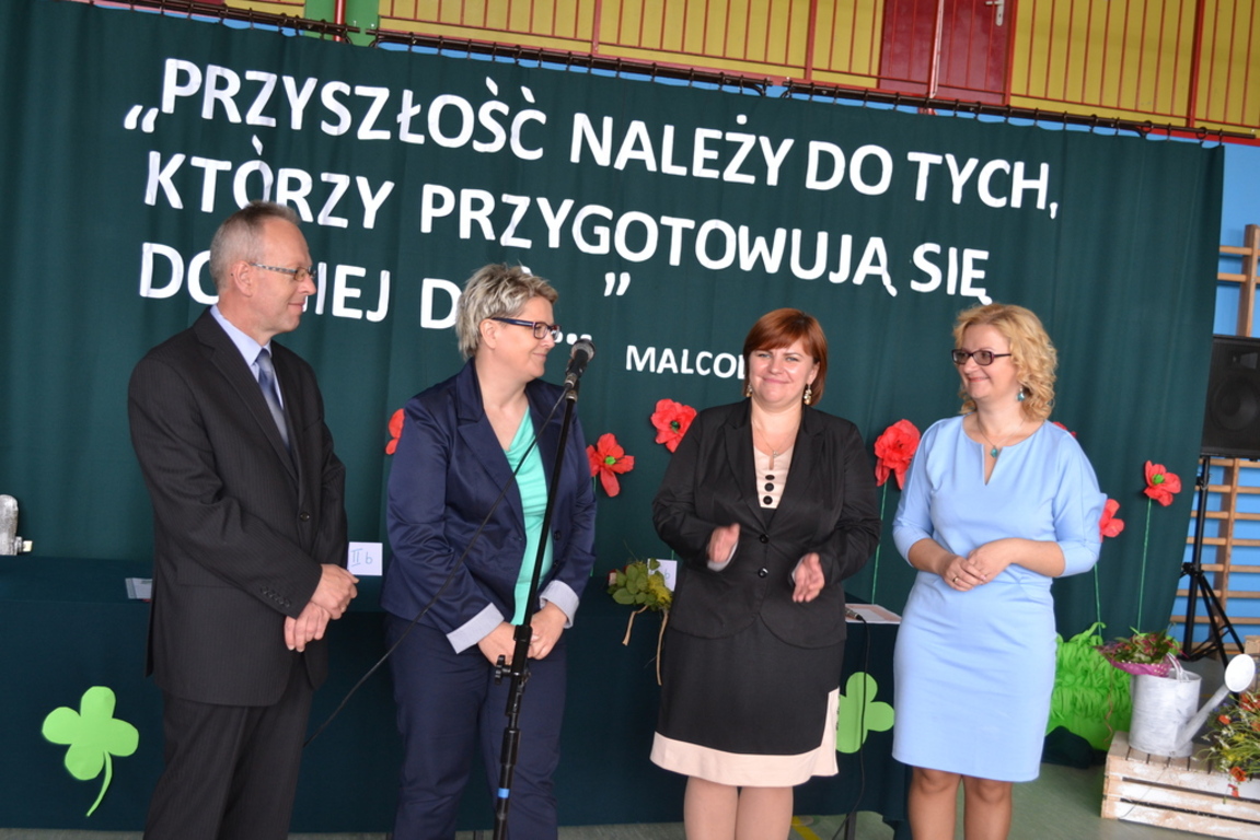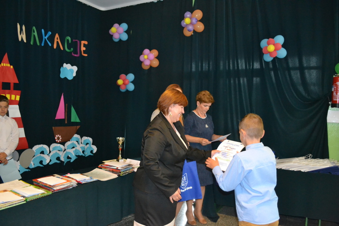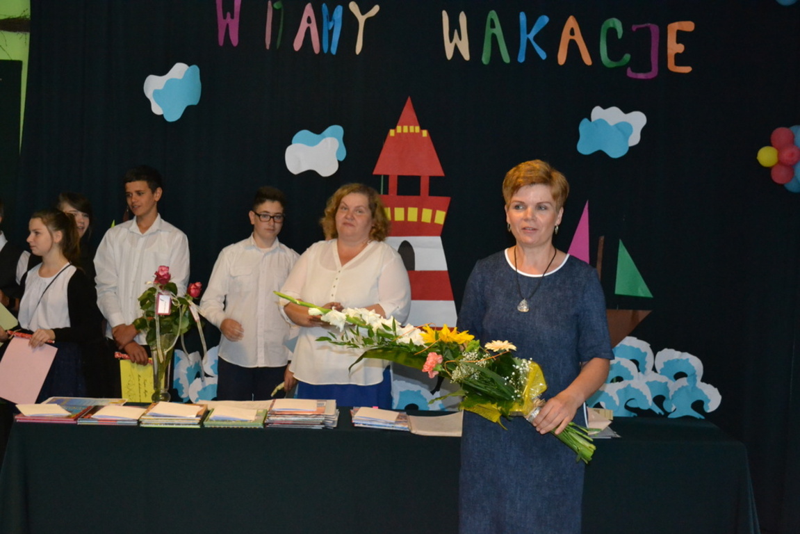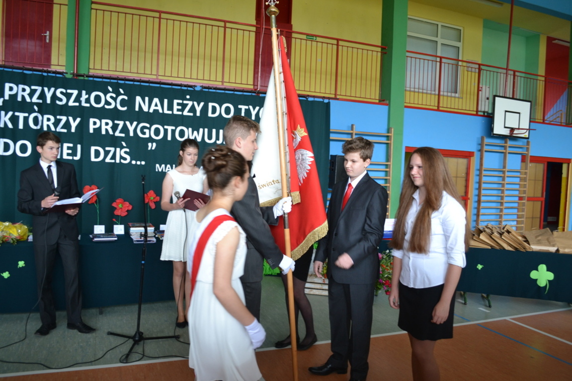 W dniu 26 czerwca odbyło się uroczyste zakończenie roku szkolnego 2014/2015.Przy bardzo licznym udziale rodziców uroczyście pożegnano absolwentów Gimnazjum i Szkoły Podstawowej w Łebieniu. Absolwentom Gimnazjum życzymy sukcesów w dalszej edukacji w nowych szkołach, a uczniom klasy szóstej sukcesów w Gimnazjum. Uczniowie wyróżniający się w nauce, sporcie i pracy społecznej otrzymali szereg nagród ufundowanych przez Radę Rodziców Zespołu Szkół im. Jana Pawła II w Łebieniu. Podsumowano również projekt realizowany przez cały rok szkolny pod nazwą „ Nauka z przyjemnością”. Pani Anetta Kolańczyk, kierownik referatu rozwoju gminy i promocji z Urzędu Gminy Nowa Wieś Lęborska, Pani Justyna Wożniak główny koordynator projektu oraz Pani Elżbieta Laskiewicz koordynator z ramienia szkoły, wręczyły wyróżniającym się uczniom w ramach zajęć projektowych nagrody rzeczowe, a pozostałym uczestnikom drobne upominki. Dyrektor szkoły Krzysztof Wojtysiak podziękował Paniom za wkład w realizację projektu, rodzicom za współpracę, nauczycielom i pracownikom za ogrom pracy w kształtowaniu postaw uczniów, a uczniom za godne reprezentowanie szkoły. Na czas wakacji życzymy wszystkim uczniom dużo słońca oraz miłego i bezpiecznego wypoczynku.