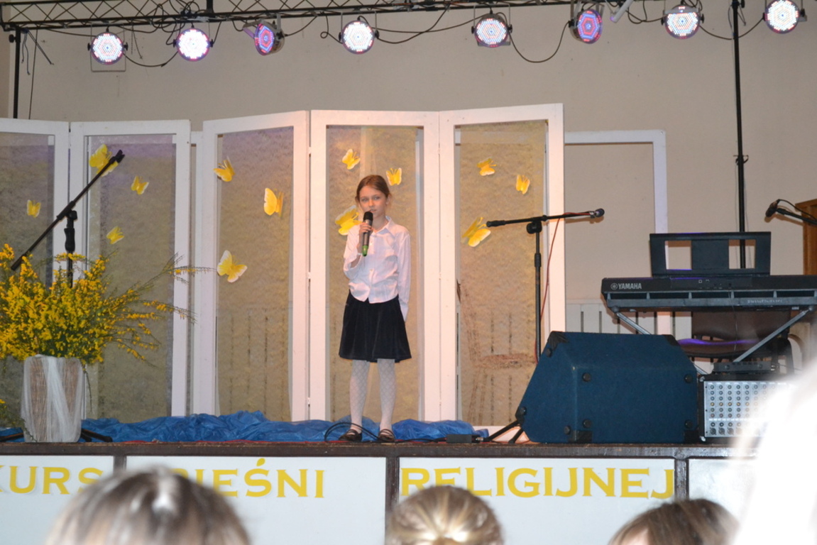 Pod czujnym okiem jurorów występowała młodzież i dzieci z Łebienia, Garczegorza, Redkowic i Nowej Wsi Lęborskiej. Wszyscy wykonawcy starali się jak najlepiej zaprezentować. Mieliśmy przyjemność wysłuchać łącznie trzydziestu utworów o tematyce religijnej. Uczestnicy prezentowali się w trzech grupach wiekowych: klasy I- III SP, IV – VI SP i Gimnazjum oraz w trzech kategoriach muzycznych: solo, duet, zespół. Jury oceniało przede wszystkim: walory wokalne uczestników, interpretację utworów, dobór repertuaru, aranżację, choreografię, pomysłowość i prezencję. Na zwycięzców czekały liczne nagrody. Wyróżniono i nagrodzono aż 28 wykonań. Jury orzekło jednogłośnie, że poziom tego konkursu był bardzo wysoki. Musimy przyznać, że wszystkie szkoły były bardzo starannie przygotowane do występów! Wyszukany repertuar sprawił, że nie powtarzały się tytuły utworów, a publiczność przyglądała się konkursowi z zainteresowaniem. Z roku na rok uczniowie naszej gminy śpiewają pewniej i piękniej.