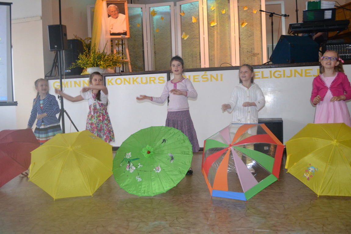 I miejsce zespół IV – VI SP w składzie: Aleksandra Kwiatkowska, Agnieszka Naczk, Marta Dąbek, Weronika Płotka, Michał Kazimierczak z pieśnią pt.”Będę tańczył przed Twym tronem”.