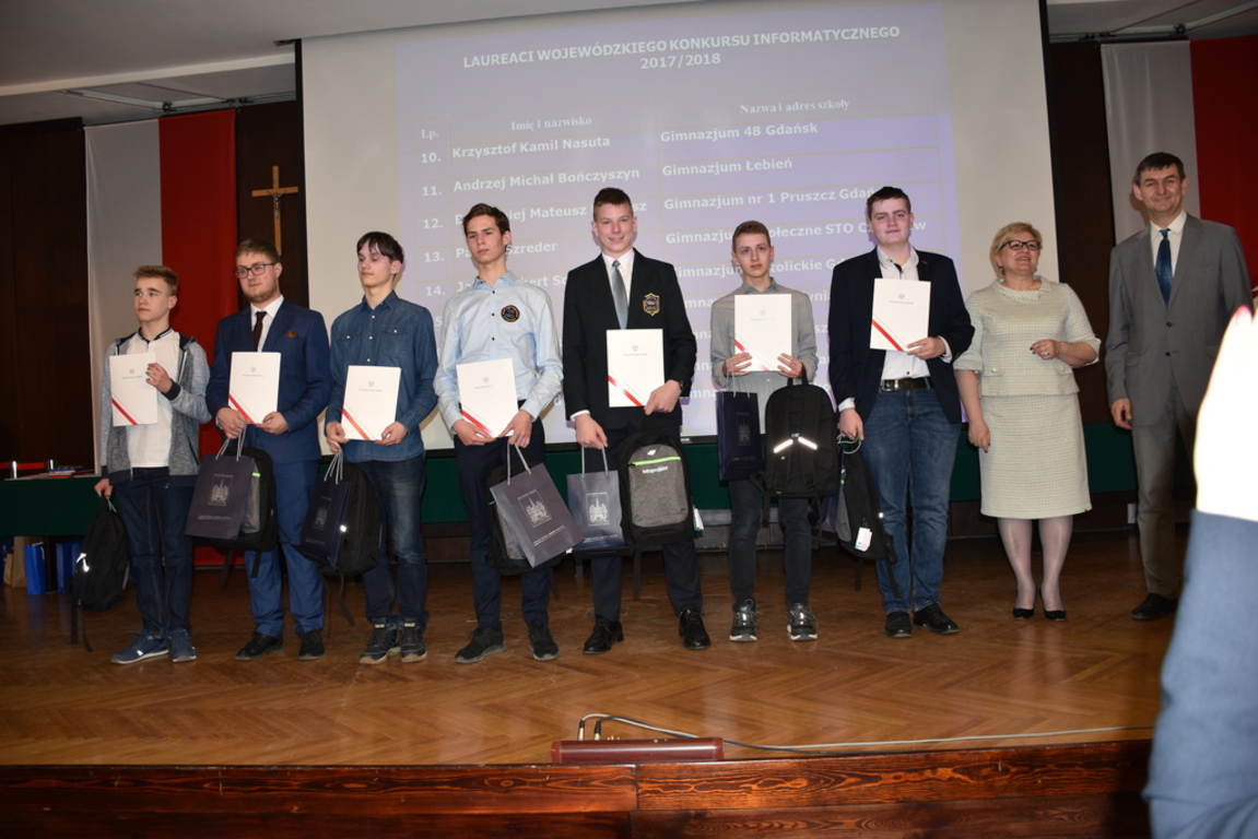 W poniedziałek w Gdańsku nastąpiło uroczyste podsumowanie kuratoryjnych konkursów przedmiotowych dla gimnazjalistów. Jako jedyny z naszego powiatu do grona nalepszych uczniów z informatyki zaklasyfikował się Andrzej Bończyszyn z kl. IIIb, tym samym otrzymał tytuł "Laureat Wojewódzkiego Konkursu Informatycznego". Droga do uzyskania tytułu laureata wymagała od niego przejścia trzech kolejnych etapów: szkolnego, rejonowego i wojewódzkiego. Na każdym z nich musiał wykazać się wiedzą i umiejętnościami informatycznymi wykraczającymi poza program szkolny.