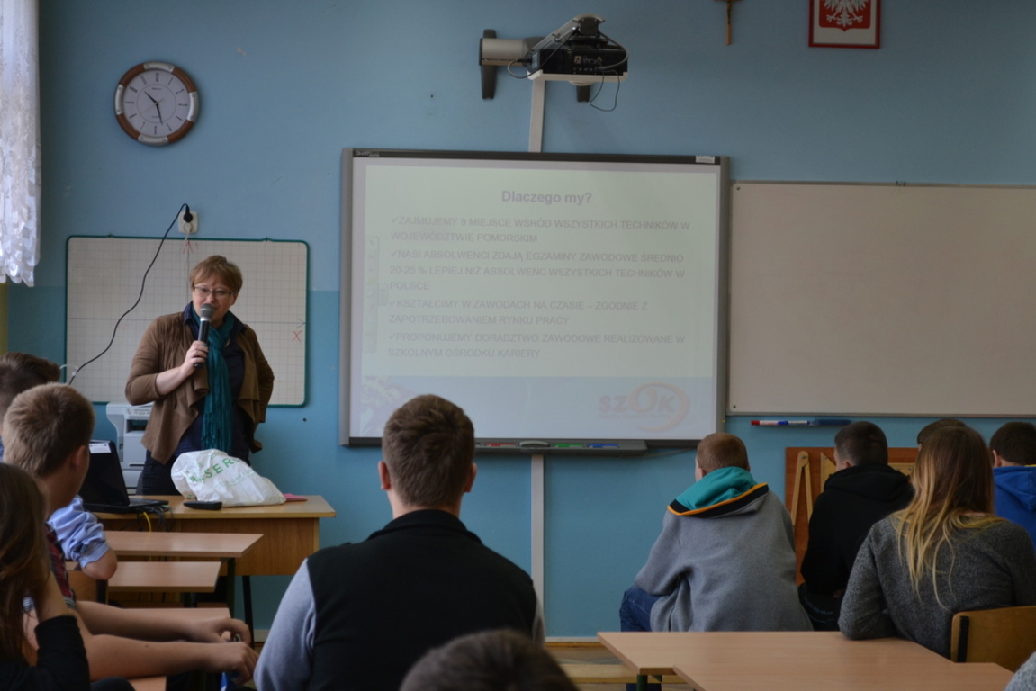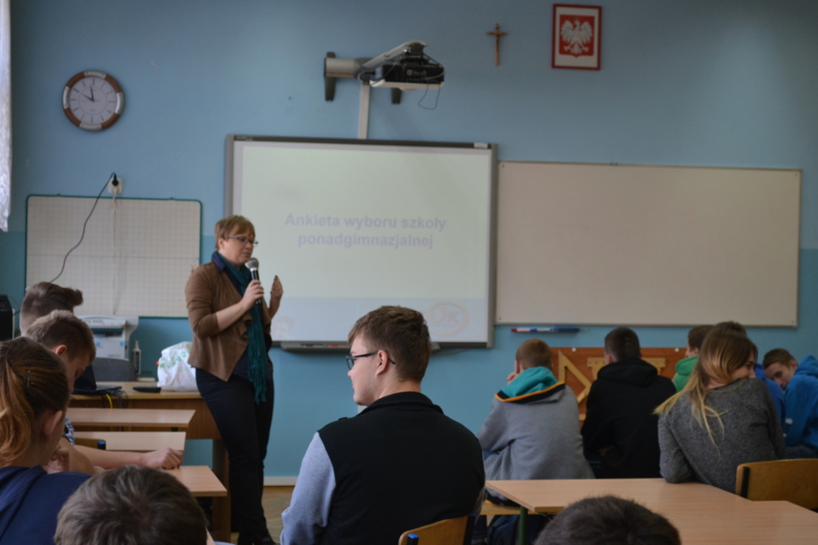 24 października 2014 roku uczniowie klas trzecich gimnazjalnych uczestniczyli w warsztatach na temat szkolnictwa ponadgimnazjalnego, które przeprowadziła pani Alina Fegler - Kotkiewicz z Zespołu Szkół Gospodarki Żywnościowej i Agrobiznesu w Lęborku