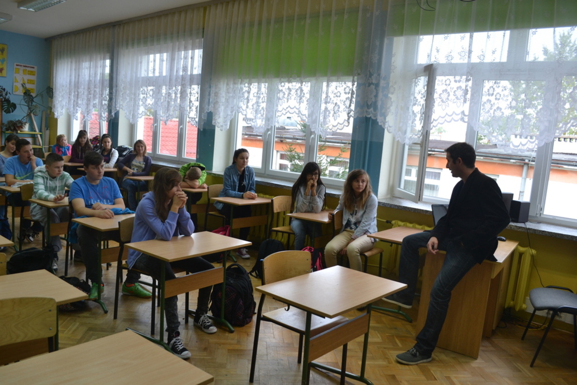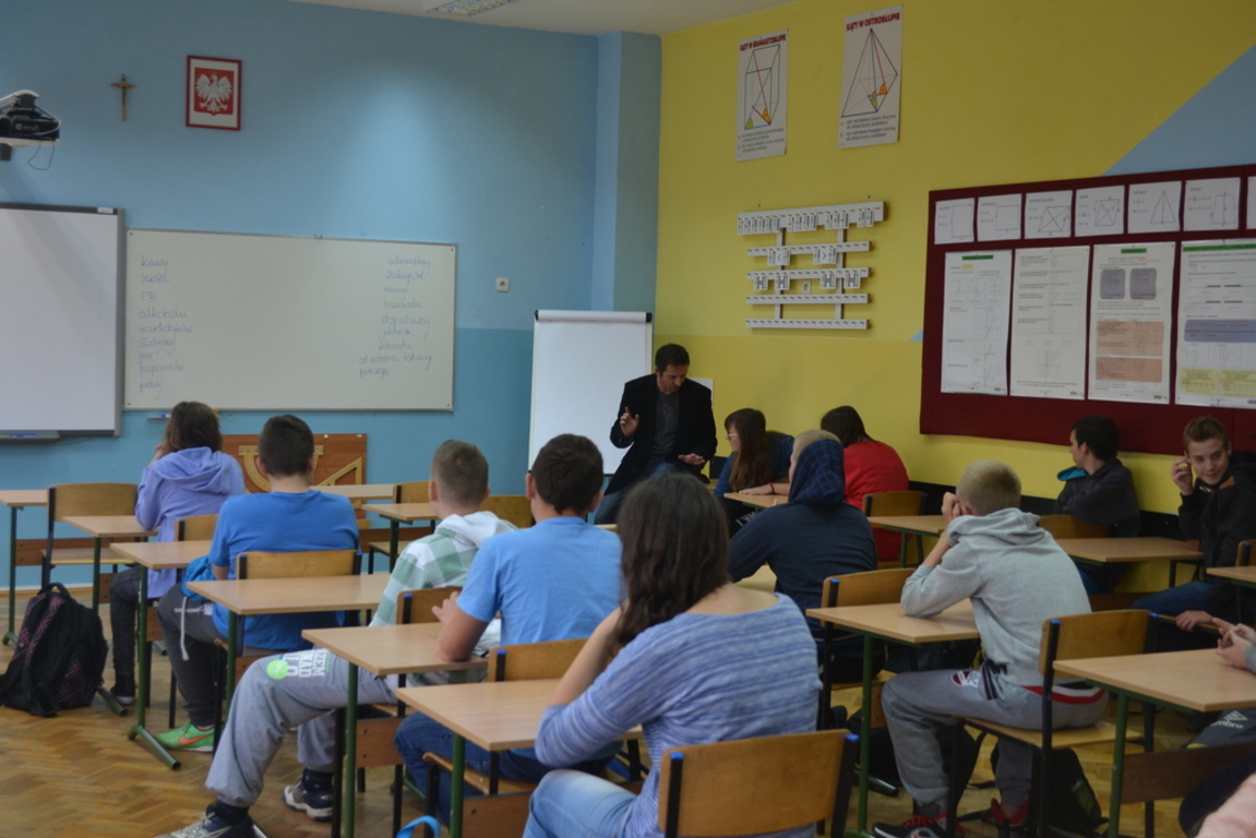 5 i 6 października w szkole odbyły się zajęcia warsztatowe dla uczniów Gimnazjum i uczniów klasy VI Szkoły Podstawowej. Tematem warsztatów były używki. Przeprowadził je terapeuta uzależnień p. Jacek Krysiak. Podczas zajęć zostały poruszone następujące zagadnienia: przyczyny uzależniania się przez ludzi, korzyści i niekorzyści związane z uzależnieniem, mechanizmy oraz etapy uzależnień. Dużym zainteresowaniem cieszyło się ćwiczenie „100 pytań do…”, ponieważ uczestnicy warsztatów mieli okazję uzyskać odpowiedź na konkretne pytania.