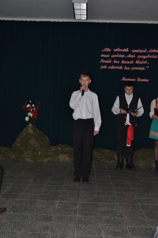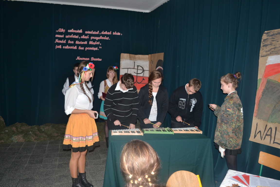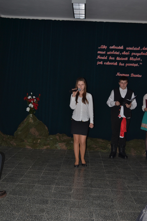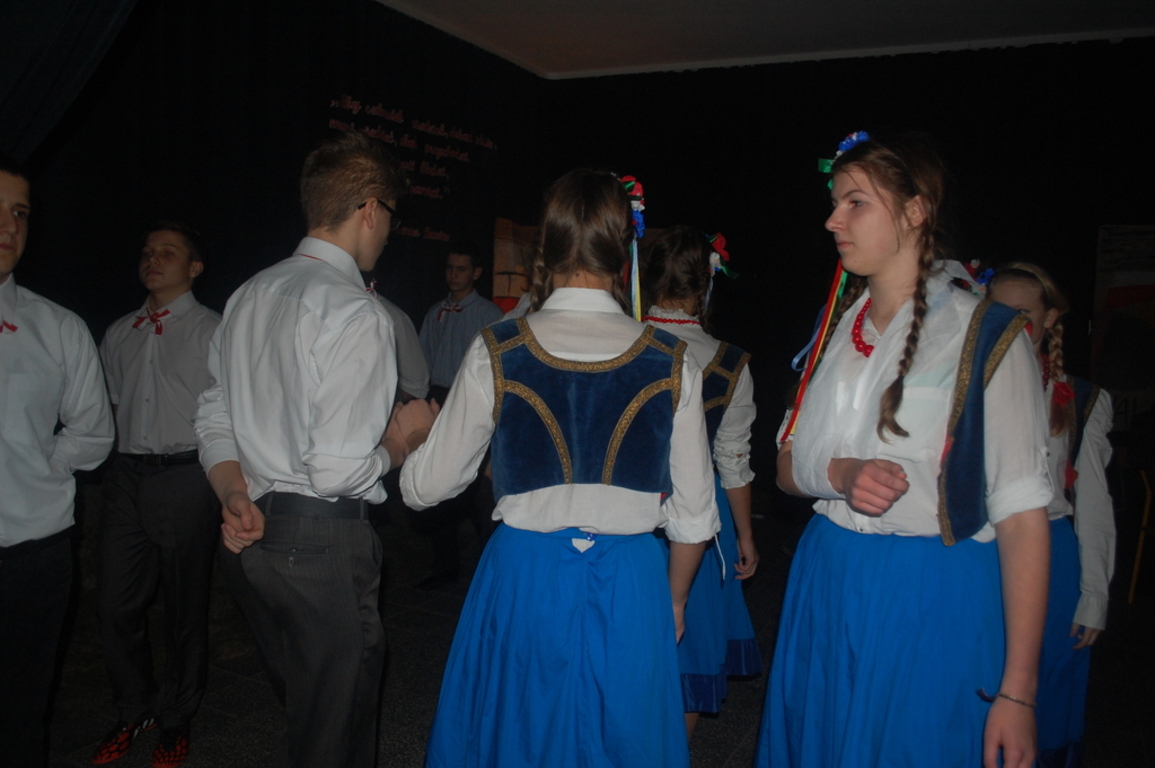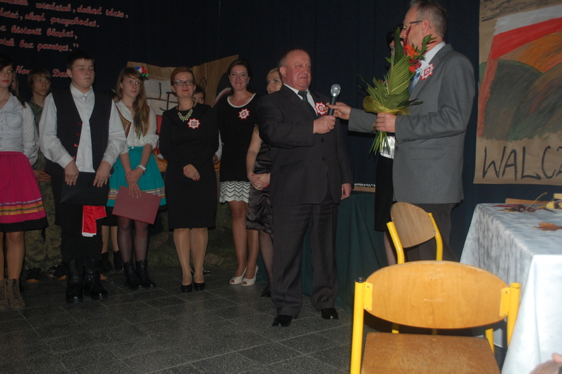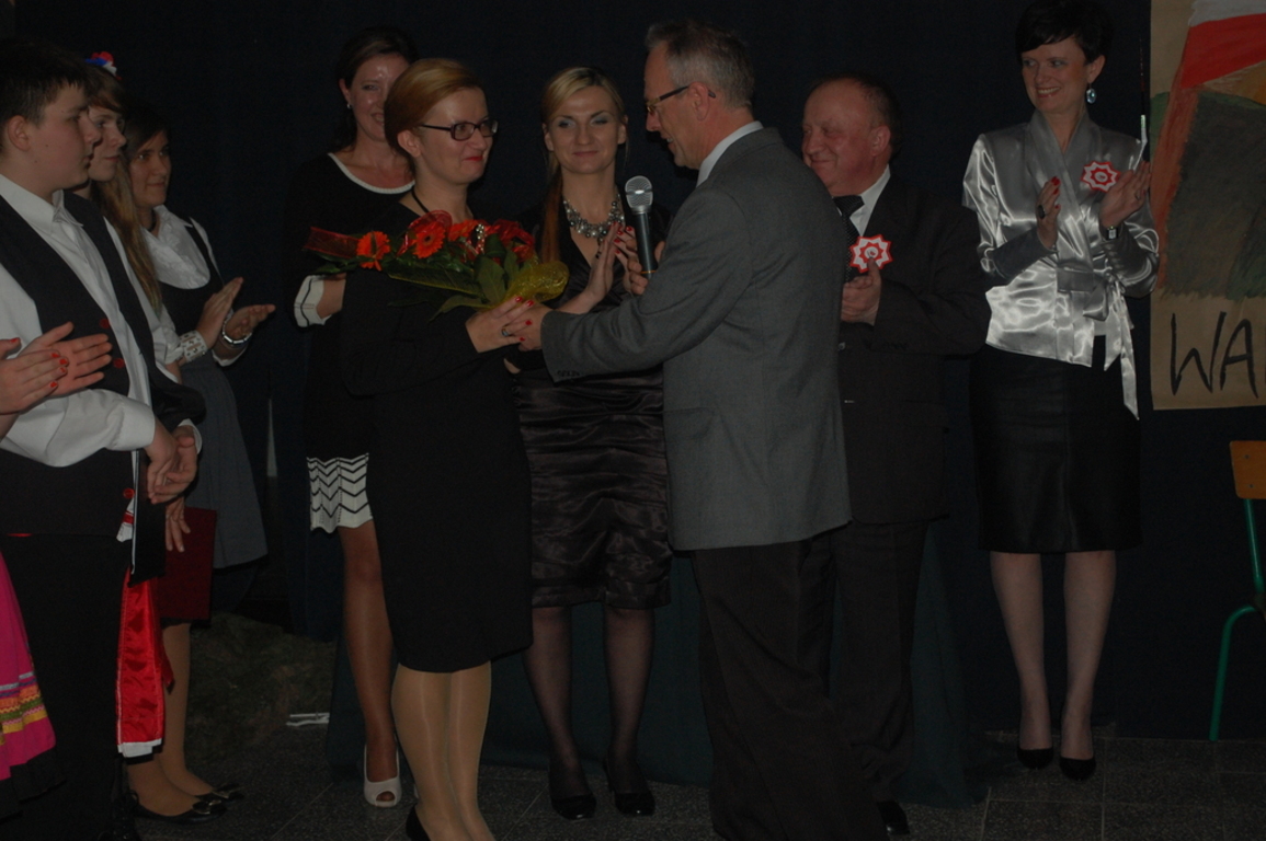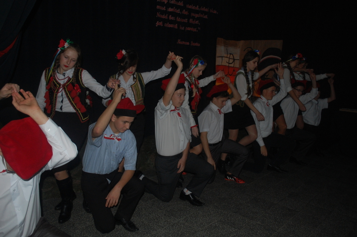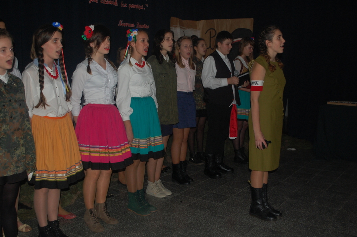 Goście byli oczarowani występem w wykonaniu uczniów. Głównymi prowadzącymi byli: Monika Domaros oraz Szymon Popiela. Wiersze recytowali: Patrycja Kowalik, Paulina Górczyńska, Karolina Czaja, Michalina Czajkowska, Zuzanna Bobrucka, Adrian Klejsa oraz Kinga Wyrwał. Tańce narodowe - polonez, krakowiak i oberek: Patrycja Kowalik, Olaf Jaskulski, Malwina Makurat, Szymon Stojek, Dominika Sadło, Błażej Marciniak, Patrycja Filcek, Bartłomiej Hinca, Marcelina Kucharska, Jakub Wyrwał, Joanna Gołębiowska, Paweł Czajkowski, Angelika Stenka i Cezary Pleśniak. Soliści i chór: Joanna Gołębiowska, Monika Domaros, Angelika Zakrzewska, Monika Mydlach, Weronika Daleka, Agata Smykowska, Katarzyna Skuza, Diana Brzeska, Angelika Ćwikła, Mateusz Rybarczyk, Olaf Jaskulski, Julia Prokopowicz, Milena Heland, Beata Ropela. Cymbałki: Ewa Wieczorkiewicz, Kacper Stojek i Maciej Sadło. Gitara - Milena Heland. Żołnierze trzymający wartę: Mateusz Rybarczyk, Błażej Banit, Olaf Jaskulski, Szymon Stojek, Jakub Wyrwał oraz Cezary Pleśniak.