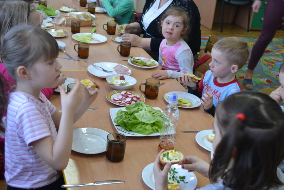 Dzieci z grupy „0B” przygotowały dzisiaj wiosenne śniadanie. Uczniowie samodzielnie robili kanapki i przy wspólnym stole z apetytem jedli. Wszystkim bardzo smakowało.