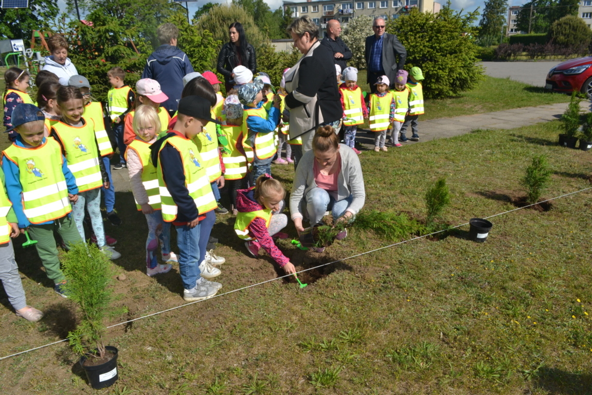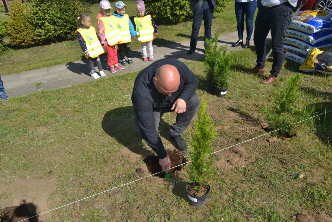 30 maja 2019r. odwiedziły nasze przedszkole maskotki ze sklepu PSB Mrówka w Lęborku. Mrówki przywiozły naszym dzieciom kamizelki odblaskowe, grabki i łopatki oraz piękne tuje, ziemię i korę. Dzieci razem z sołtysem panem Ryszardem Matakiem i dyrektorem szkoły posadziły tuje.