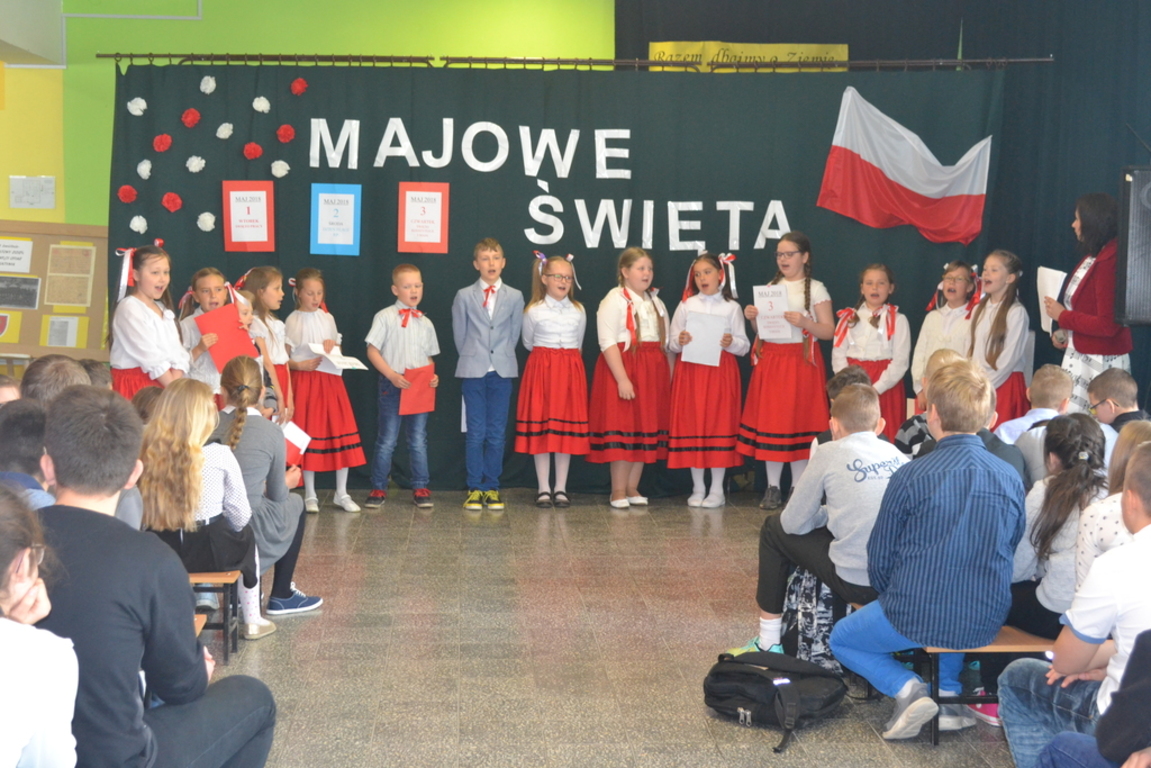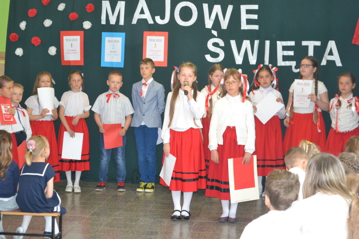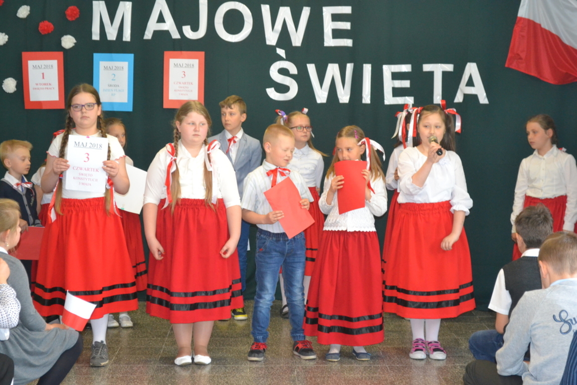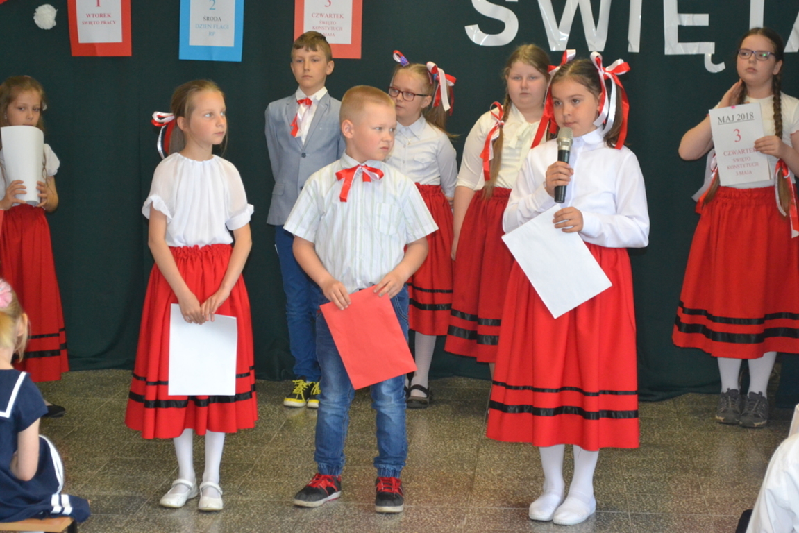 27 kwietnia, odbył się w naszej szkole apel, który przypomniał uczniom jak ważne święta patriotyczne obchodzimy na początku maja. Dzieci z klasy drugiej i trzecich SP wraz z wychowawczyniami ,przygotowały wiersze, piosenki i krótki rys historyczny ważnych w naszym kraju świąt: 1 maja - Święto Pracy, 2 maja- Święto Flagi RP oraz 3 maja - Święto Konstytucji 3 Maja.