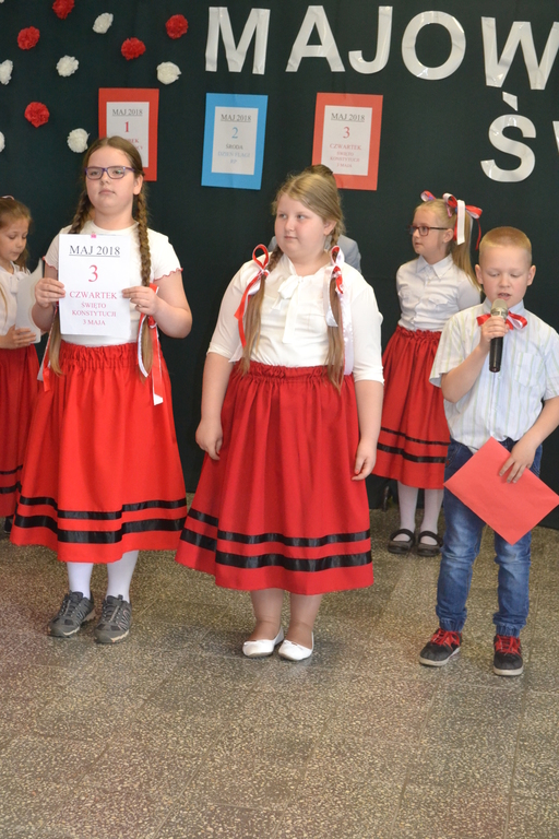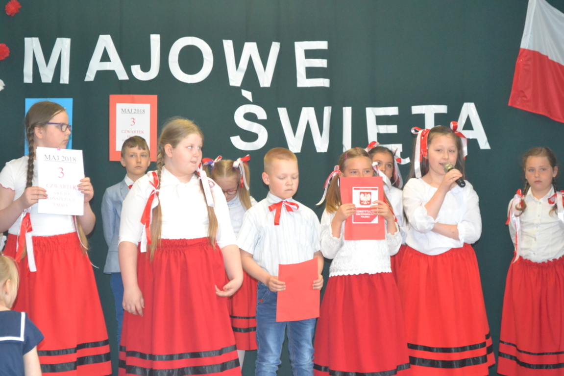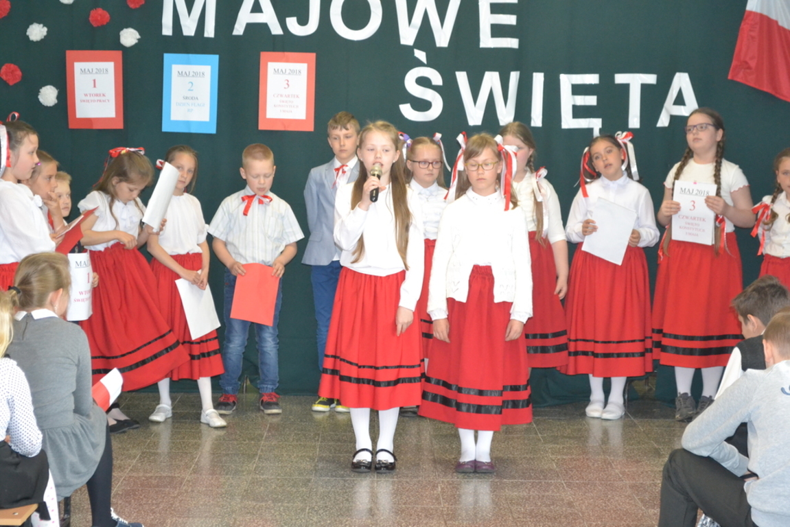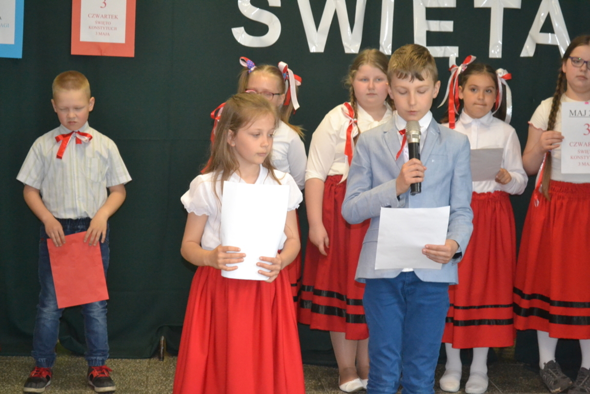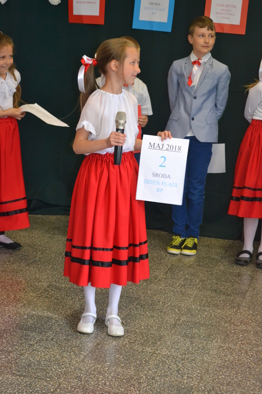 27 kwietnia, odbył się w naszej szkole apel, który przypomniał uczniom jak ważne święta patriotyczne obchodzimy na początku maja. Dzieci z klasy drugiej i trzecich SP wraz z wychowawczyniami ,przygotowały wiersze, piosenki i krótki rys historyczny ważnych w naszym kraju świąt: 1 maja - Święto Pracy, 2 maja- Święto Flagi RP oraz 3 maja - Święto Konstytucji 3 Maja.