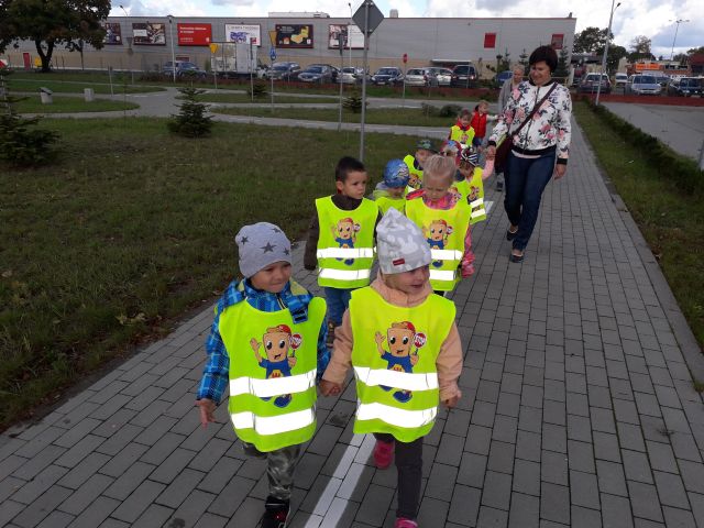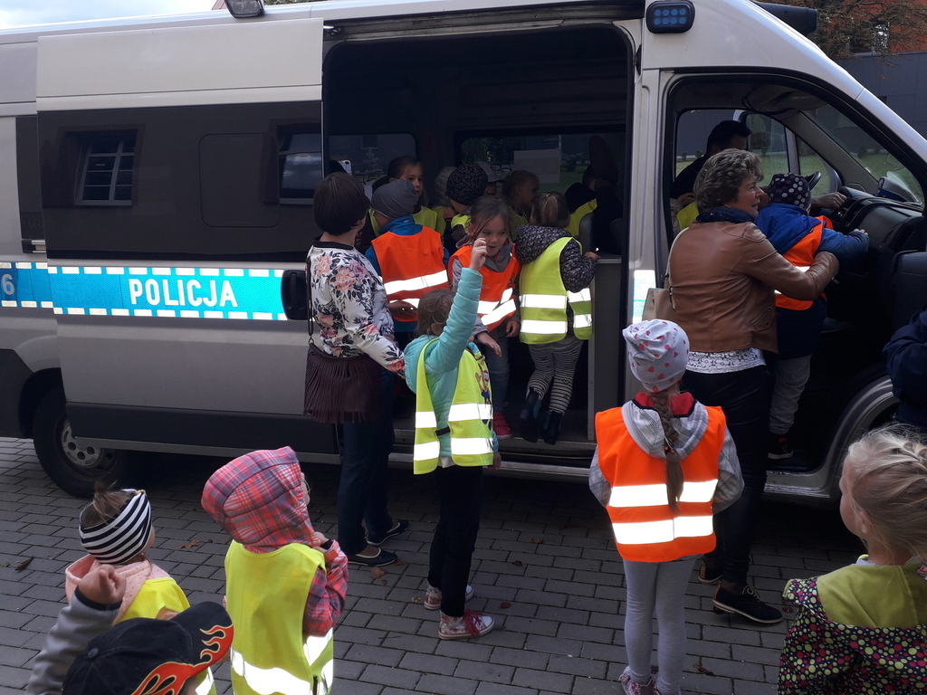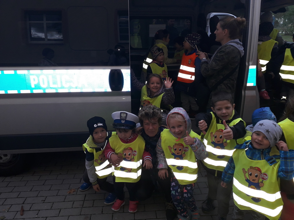 Dzieci z grupy Puchatki i Minionki 24.09.2018r. odbyły wycieczkę do Komendy Powiatowej Policji w Lęborku. Spacer rozpoczęliśmy od MIASTECZKA RUCHU, który znajduje się tuż przy Komendzie, a następnie Pani Policjantka oprowadziła nas po niej i opowiadała o swojej pracy. Umożliwiła nam wejście do celi i poprosiła pana dyżurnego, aby pokazał na czym polega jego zajęcie. Mogliśmy także wejść do radiowozu, przymierzyć czapkę policyjną i posłuchać sygnału dźwiękowego jaki wydaje pojazd.