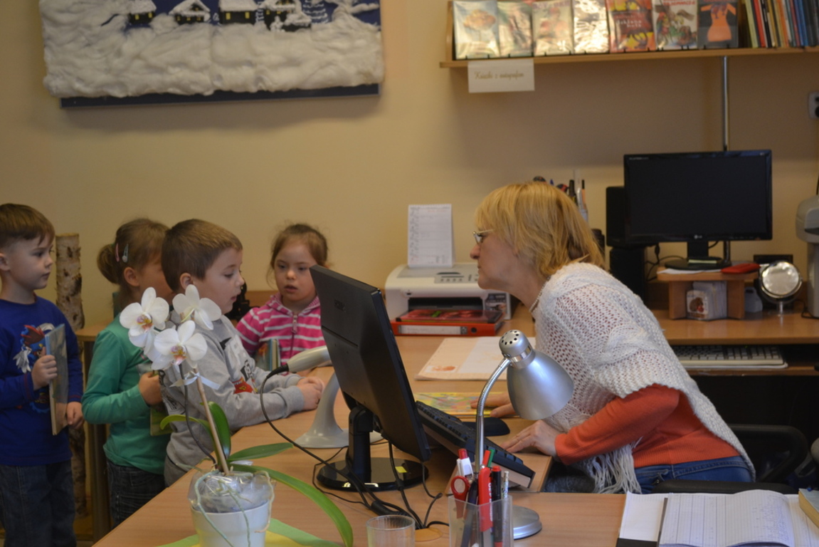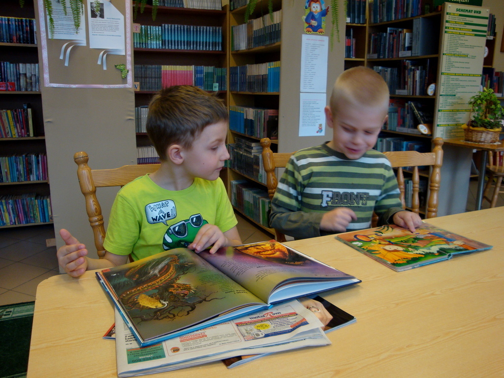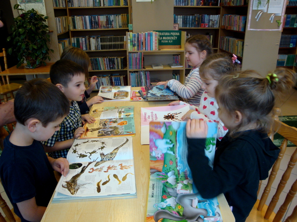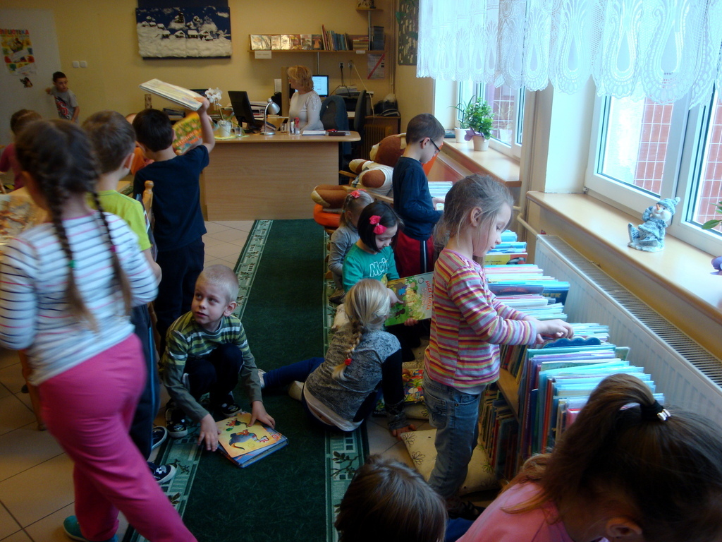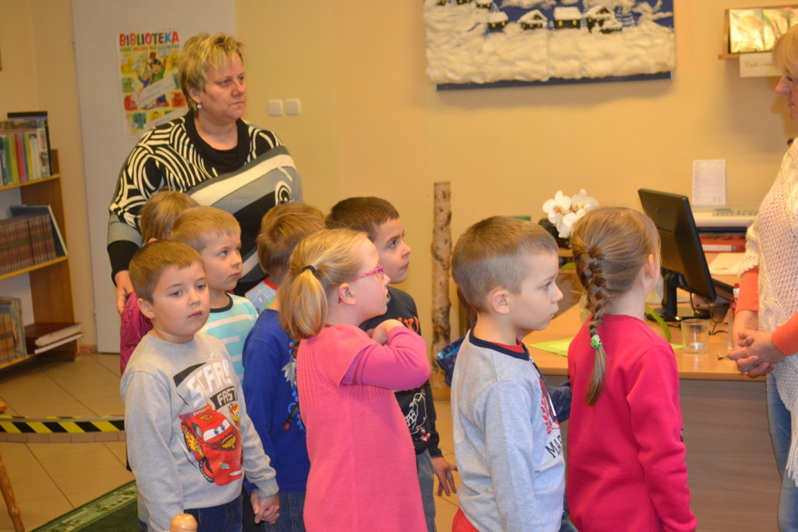 Dzieci z grup przedszkolnych odwiedziły naszą bibliotekę. Zostały tam zapoznane z pracą bibliotekarza, obejrzały księgozbiór oraz wysłuchały ciekawej pogadanki zachęcającej do korzystania z biblioteki. Dzieci zostały zaproszone do „kącika dla najmłodszych czytelników”. Kącik ten wzbudził żywe zainteresowanie wśród starszaków. Na koniec uczniowie mogli wypożyczyć książki, które najbardziej im się spodobały. Dzieci z chęcią będą wracać do tego miejsca.