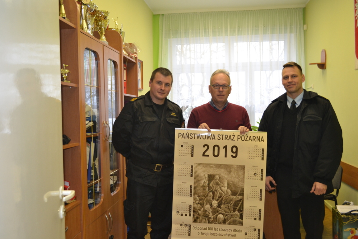Dziś naszą szkołę odwiedzili strażacy z Państwowej Powiatowej Straży Pożarnej w Lęborku. Mili goście złożyli życzenia noworoczne i zostawili kalendarze na 2019rok. Serdecznie dziękujemy za miłą wizytę.