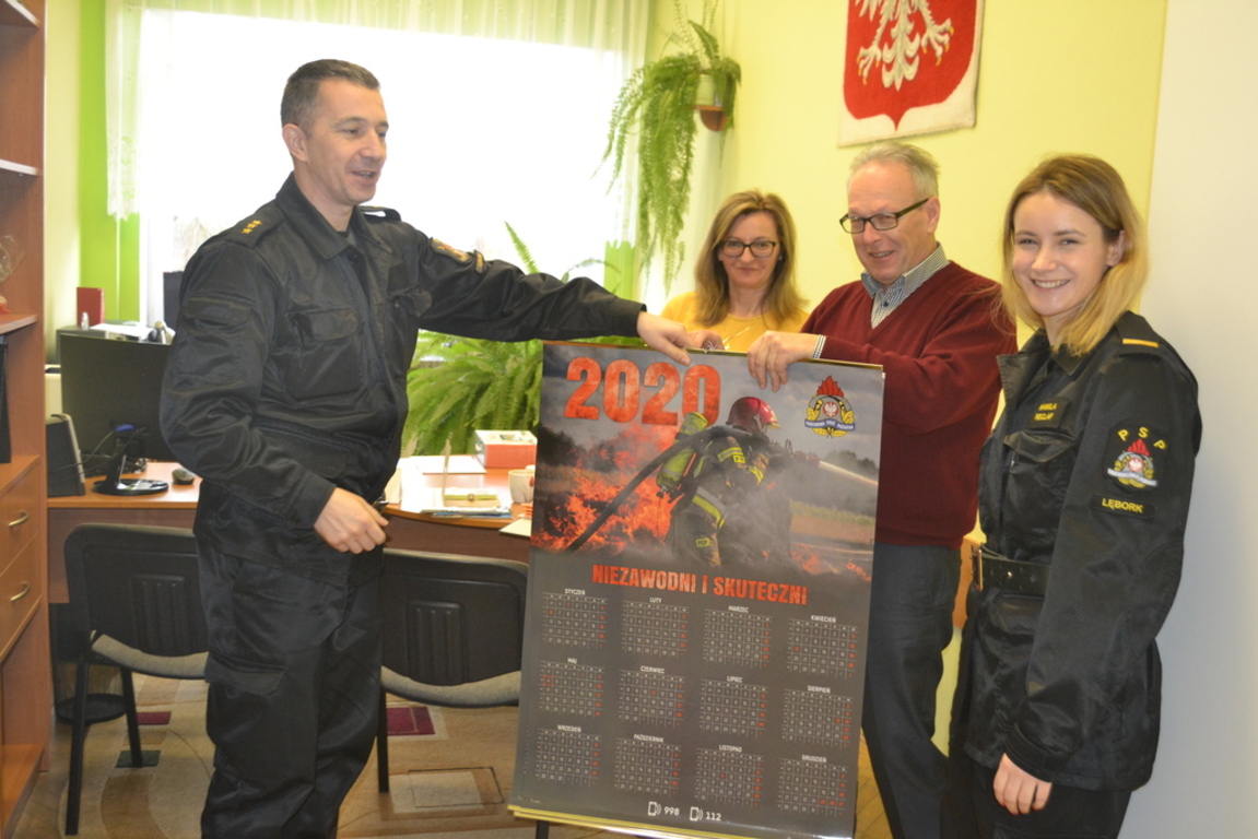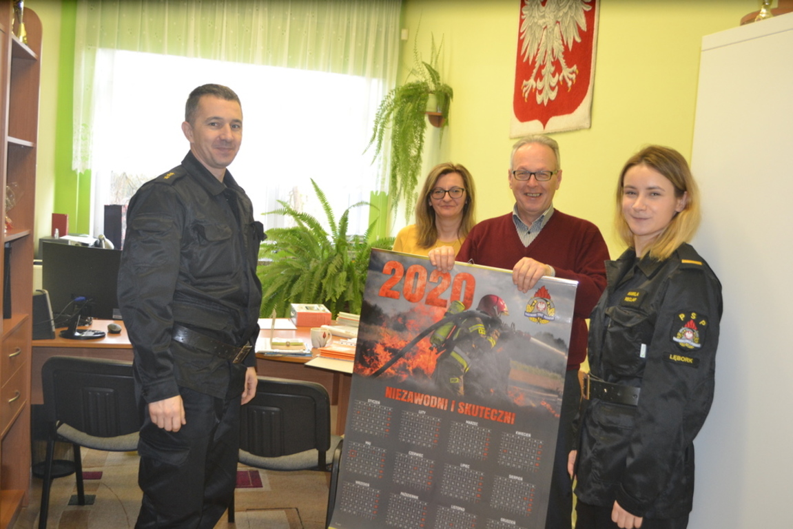 Dziś naszą szkołę odwiedzili strażacy z Państwowej Powiatowej Straży Pożarnej w Lęborku. Mili goście złożyli życzenia noworoczne i zostawili kalendarze na 2020 rok. Serdecznie dziękujemy za miłą wizytę.