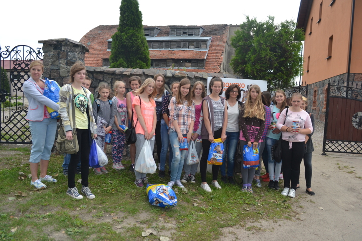 W dniu 21 czerwca 2016r. uczniowie naszej szkoły z nauczycielami p. Wiolettą Marczewską, p. Marzeną Łapa i p. Michałem Górskim odwiedzili Schronisko dla psów Bajer w Małoszycach.Na miejscu uczniów powitała właścicielka schroniska, której przekazano karmę zebraną w szkole. Podczas wizyty uczniowie dowiedzieli się m.in. o funkcjonowaniu placówki, o zwyczajach mieszkających tam psów i kotów.Wizyta w schronisku wzbudziła wiele emocji. Była znakomitym przykładem na to, że już od najmłodszych lat warto uczyć dzieci empatii zarówno w stosunku do ludzi, jak i zwierząt, uwrażliwić na nieszczęścia i wpoić chęć pomagania innym.