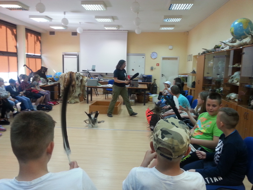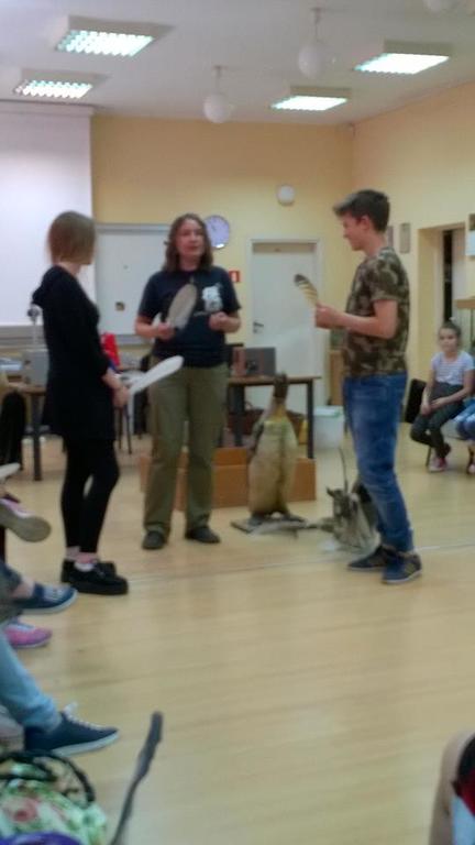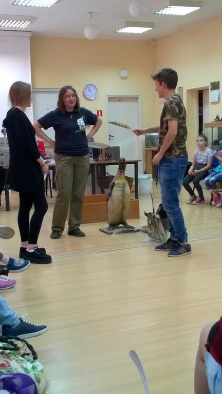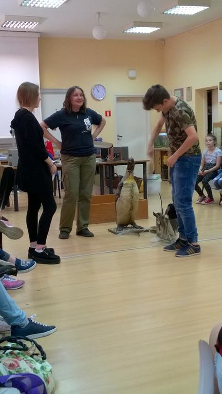 22 maja nasi uczniowie uczestniczyli w wycieczce do Gdańskiego Ogrodu Zoologicznego. W wyjeździe wzięli udział uczniowie z grup projektowych, uczniowie wyróżnieni za wyniki w nauce i zachowaniu na I semestr, dla których ten wyjazd był nagrodą oraz uczniowie, których po prostu interesuje przyroda. Maluchy ze szkoły podstawowej razem z gimnazjalistami uczestniczyli w lekcji prowadzonej przez panią Sabinę- pracownika Ogrodu. Lekcja dotyczyła ptaków, a nasi uczniowie zadziwiali panią swoją wiedzą o ich przystosowaniach do lotu. Było dużo zabawy różnymi piórami, było głaskanie sowy i pingwina, dotykanie ptasich jaj i elementów szkieletu. Po lekcji był jeszcze czas na zwiedzanie części Ogrodu, co było atrakcją dla wszystkich.