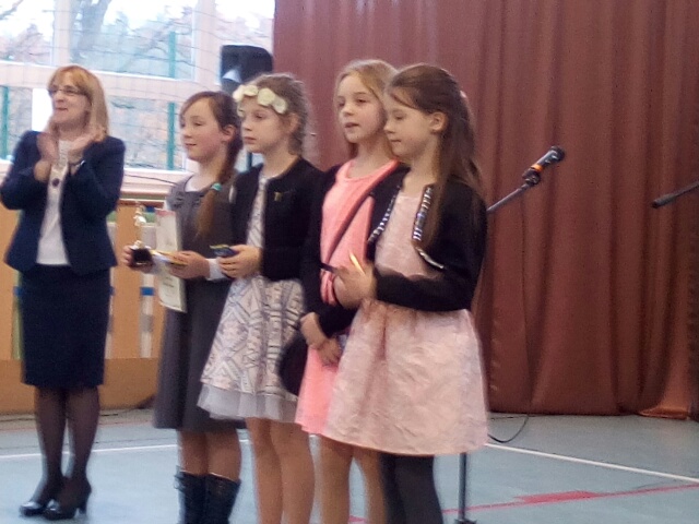 Zespół SP w składzie: Michalina Macieja, Anna Sęktas, Aleksandra Klonowska oraz Milena Daszkowska z piosenką ,,Piechota" - III miejsce. Gratulujemy!!! Oto zdjęcia z konkursu...