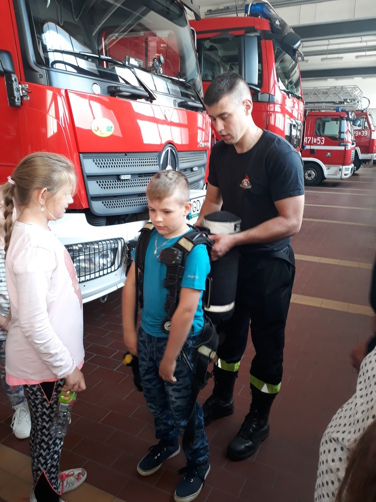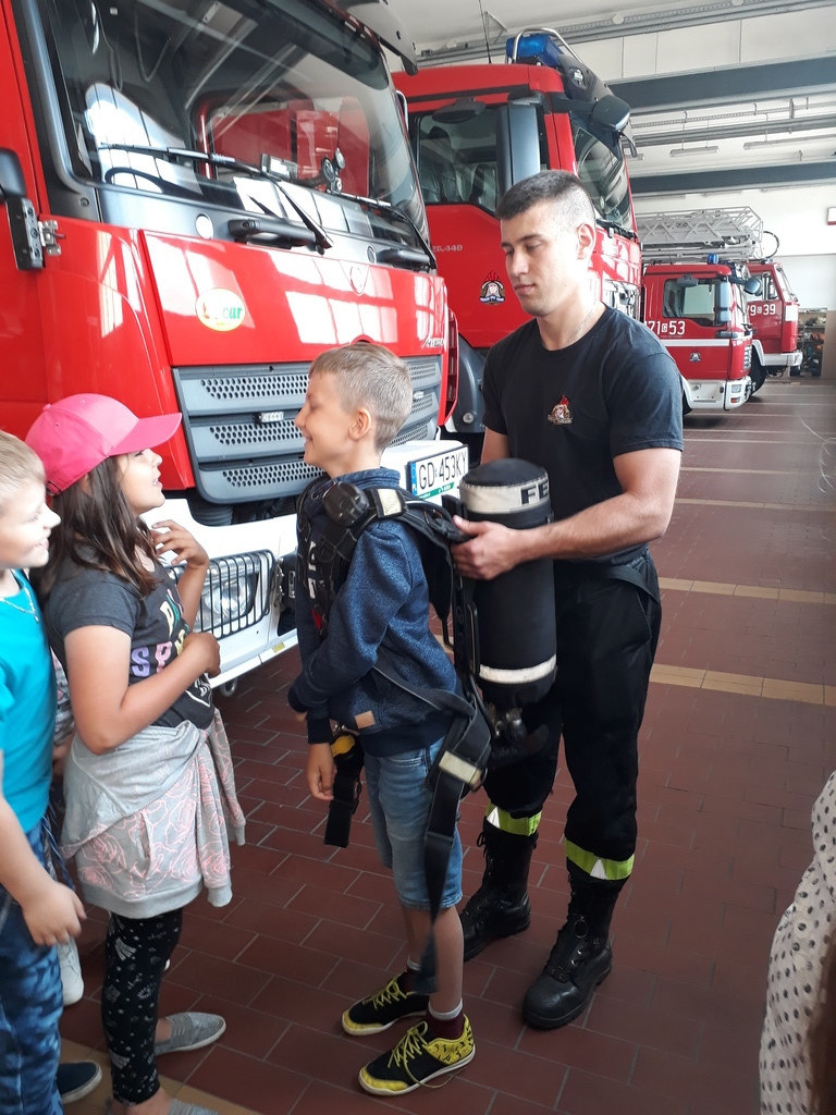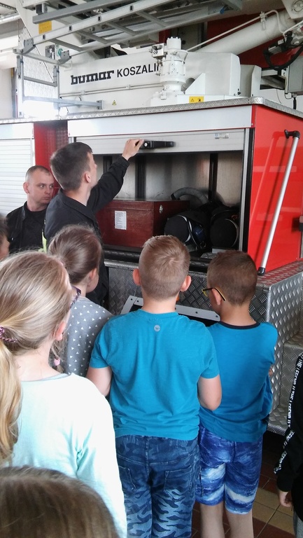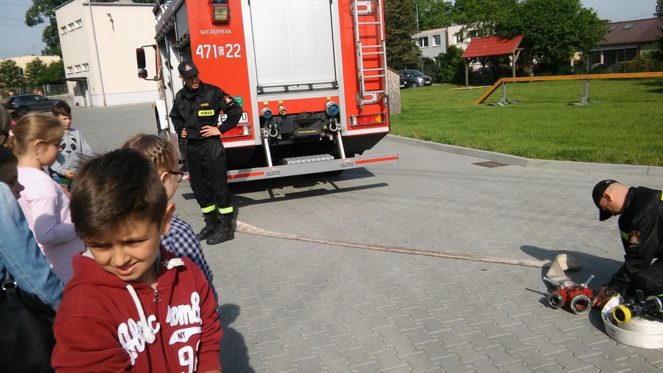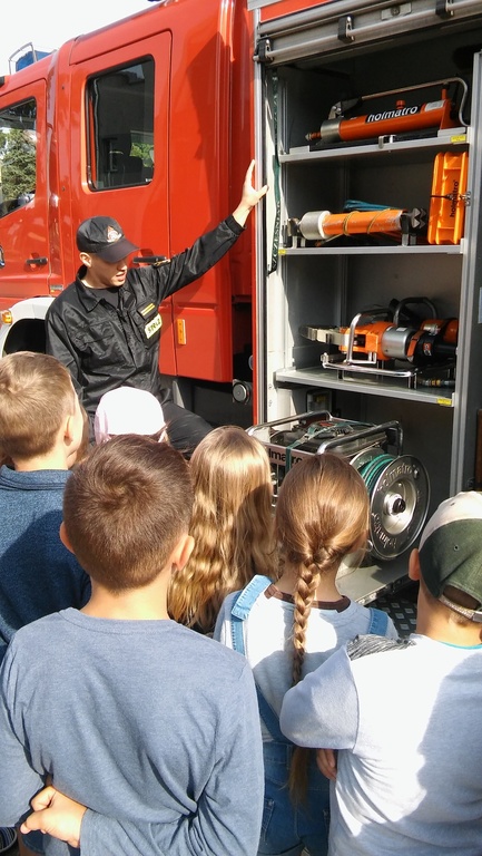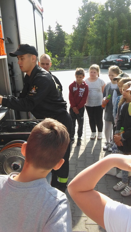 15 maja, wszystkie dzieci z klas I-III odwiedziły Państwową Straż Pożarną w Lęborku. Uczniowie zwiedzili całą remizę, zapoznali się z wozami strażackimi i całym sprzętem ratującym życie ludzkie. Dowiedzieli się jak ważna i niebezpieczna jest praca strażaków. Ogromny szacunek dla ich pracy.