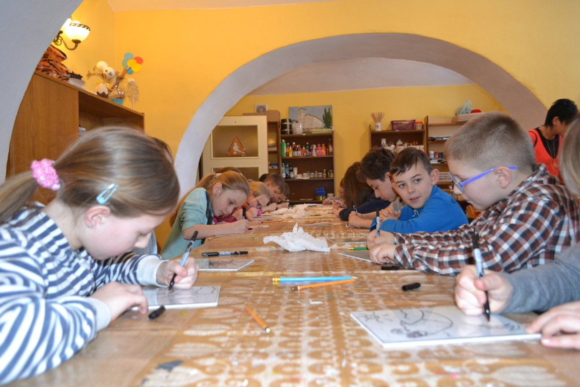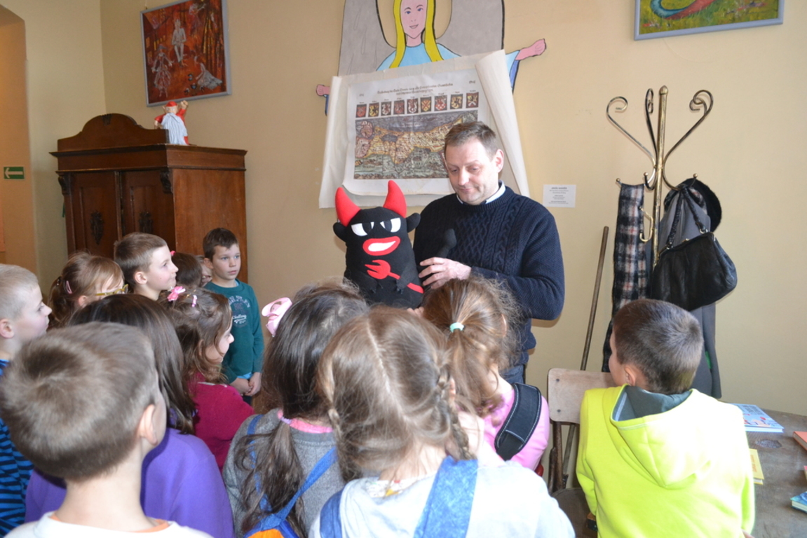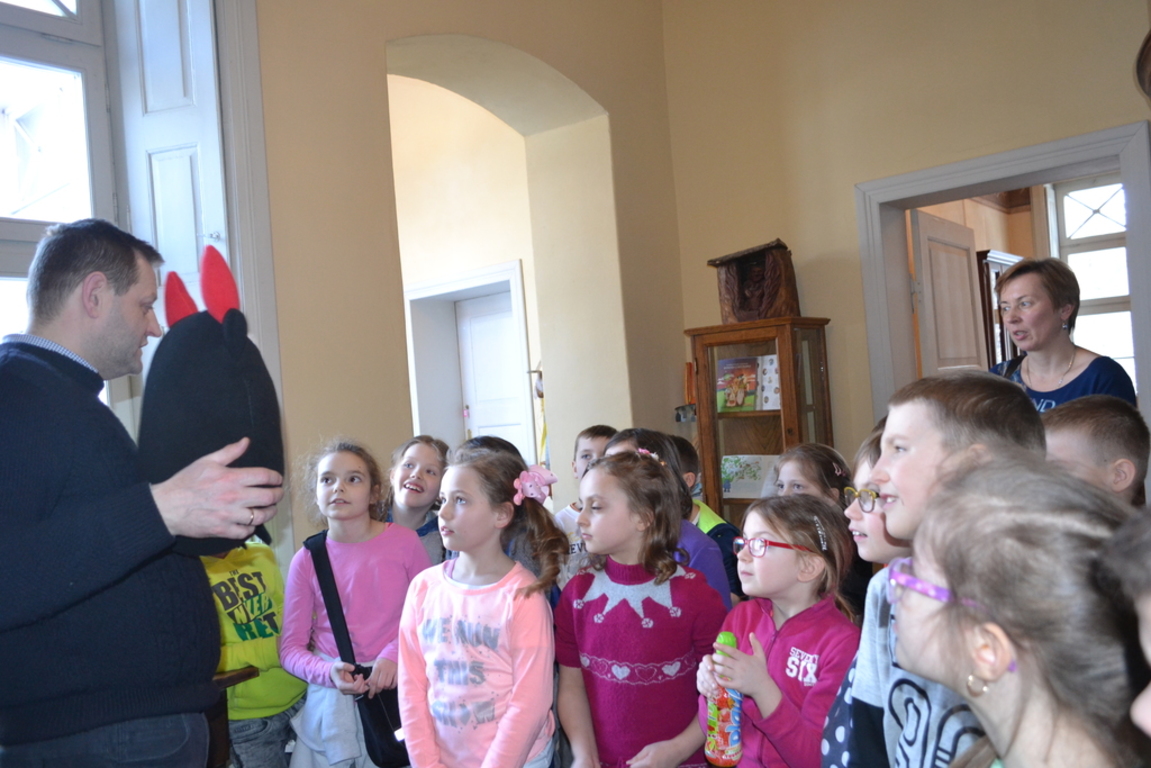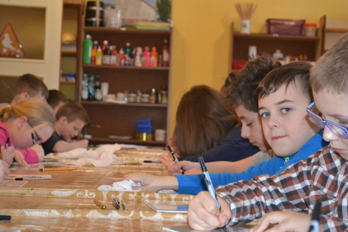 Dzieci z klas II i III uczęszczające na zajęcia z języka kaszubskiego 16 lutego2017r. udały się do Muzeum Piśmiennictwa i Muzyki Kaszubsko - Pomorskiej w Wejherowie. Wzięły udział w lekcji muzealnej „ Bajki kaszubskie” , podczas której utrwaliły kaszubskie nazwy ich bohaterów. Dowiedziały się również skąd na Kaszubach znalazła się tabaka i dlaczego nazywana jest „diabelskim zielskiem”. Przewodnik ciekawie i z humorem opowiadał o kaszubskich czarownicach, które często są bohaterkami bajek i filmów dla dzieci. Następnie dzieci wzięły udział w warsztatach malarstwa na szkle. Prowadząca zapoznała uczestników z dawną techniką ozdabiania domów na Kaszubach. Uczniowie wykonali bardzo ciekawe i pomysłowe obrazki . Wrócili z wycieczki bardzo zadowoleni. Kolejne zajęcia języka kaszubskiego pobudziły dziecięcą wyobraźnię, zaciekawiły, ale przede wszystkim pozwoliły tworzyć, doświadczać, przeżywać.