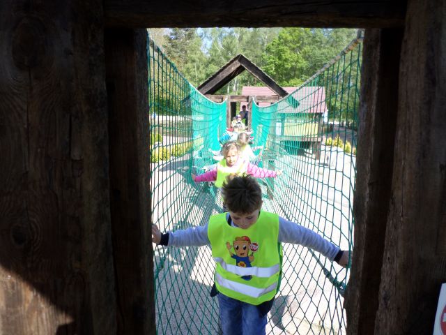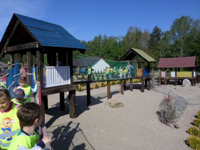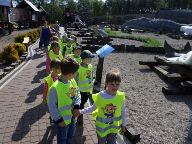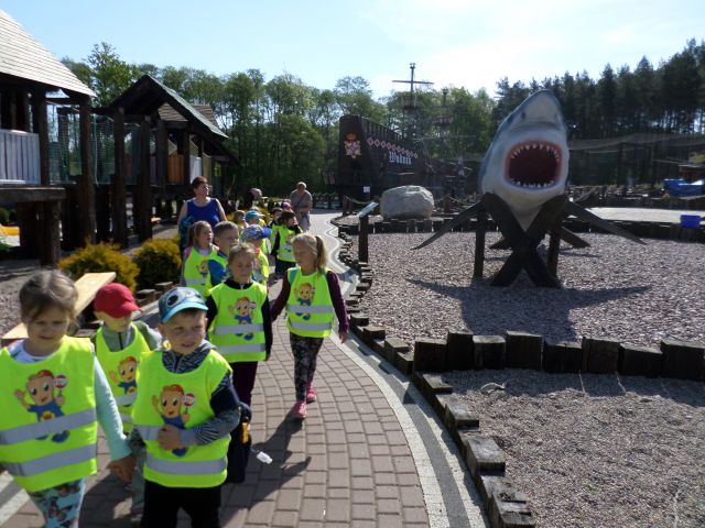Wielkie emocje wzbudził także Interaktywny Delfin „Błękitek”, który nie tylko nas rozbawił, ale i wiele nauczył. Zapewne na długi czas zapadnie nam w pamięć, wizyta na odwróconej replice szwedzkiego galeonu Solen. Przejście przez wrak przyprawiło wszystkich o zawrót głowyJ Na koniec wycieczki udaliśmy się do Parku Zręcznościowo- Linowego „Mały Pirat” gdzie musieliśmy pokonać wiele pirackich przeszkód. Wszyscy wróciliśmy do przedszkola z wielkimi uśmiechami na twarzach!