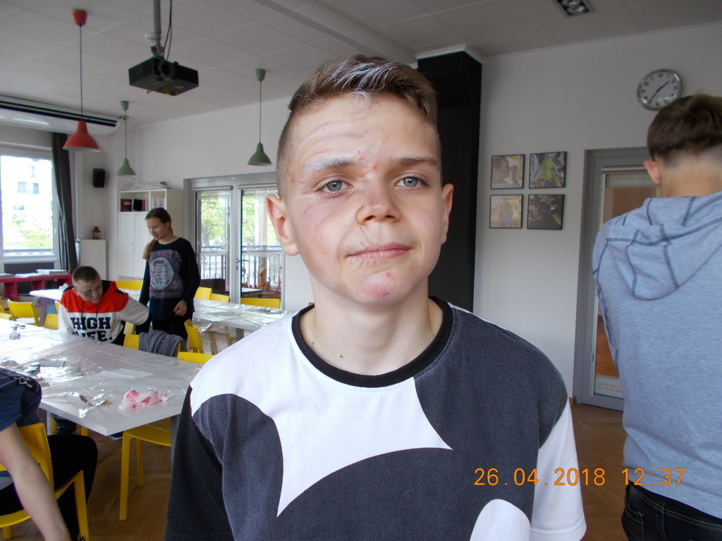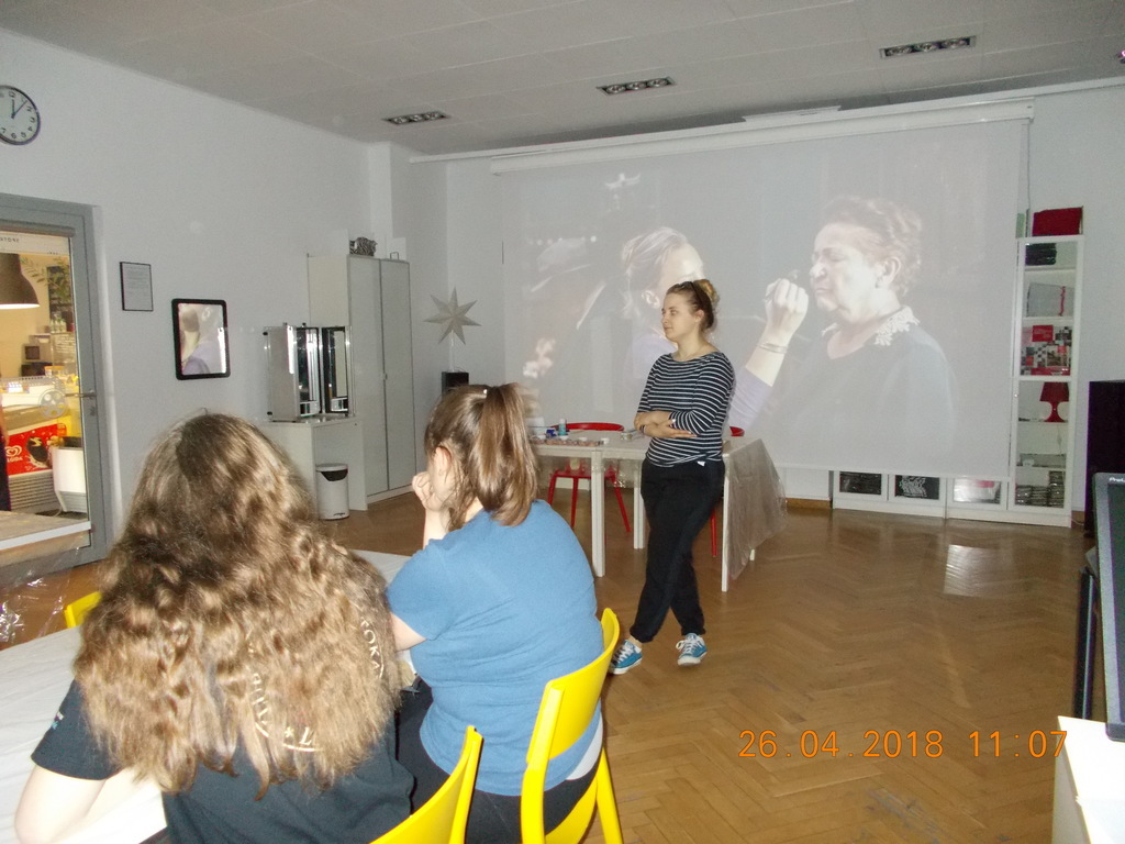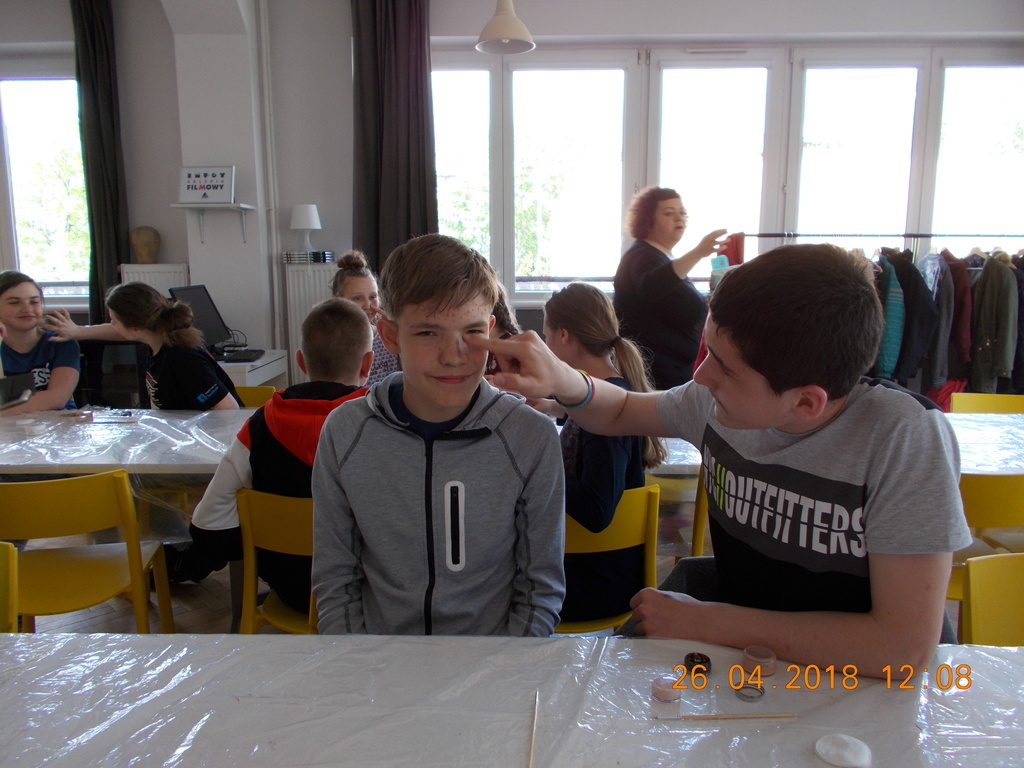26 kwietnia o 4.00 rano dwie klasy siódme wyruszyły w drogę do Stolicy. Na miejscu zameldowaliśmy się o 12.00 i uczestniczyliśmy w warsztatach z charakteryzacji w Wytwórni Filmów Dokumentalnych i Fabularnych. Zajęcia były bardzo ciekawe i pełne dobrej zabawy. Pod okiem zawodowej charakteryzatorki nauczyliśmy się, jak można postarzeć twarze niektórych z nas.