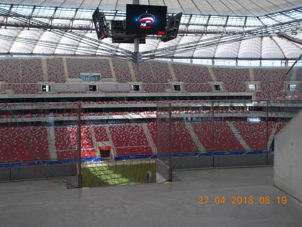 Następnego dnia już od 9.00 rozpoczęliśmy zwiedzanie Warszawy od Stadionu Narodowego. Mieliśmy możliwość wejścia na najwyższy poziom widowni, tzw. taras widokowy. Niektórym zakręciło się w głowach, tak od wysokości, jak i od rozmiarów obiektu.