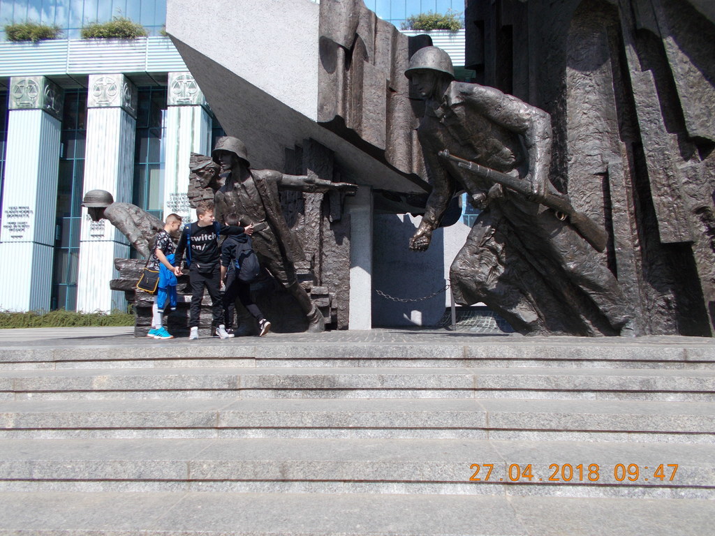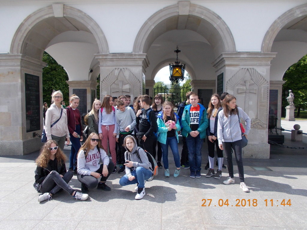 Ze stadionu przejechaliśmy metrem do centrum stolicy i zwiedziliśmy Stare Miasto, Zamek Królewski, Pomnik Powstańców, Barbakan, Pomnik Małego Powstańca, Grób Nieznanego Żołnierza. Zatrzymaliśmy się na kilka minut przed Pałacem Prezydenckim, żeby zobaczyć uroczystą zmianę warty. Punktem kulminacyjnym był wjazd na najwyższe piętro Pałacu Kultury i Nauki. W windzie zatykało nam uszy, a widoki z pałacu zapierały dech.