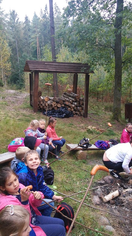 28 września 2016 r. klasa I i II b wraz z wychowawczyniami wybrały się na wycieczkę do lasu. Podróż odbyliśmy autobusem do Leśnic. Przypomnieliśmy sobie przy okazji jak należy zachowywać się w środkach komunikacji . Na miejscu odbyliśmy długi spacer przez las. Obserwowaliśmy przyrodę i zachodzące wczesną jesienią zmiany. Czasami udało się usłyszeć śpiew ptaków. W specjalnie przygotowanym miejscu zatrzymaliśmy się na odpoczynek. Mogliśmy się wspólnie pobawić i zjeść ze smakiem samodzielnie upieczoną w ognisku kiełbasę. Piknik w lesie był bardzo udany. Pogoda i humor nam dopisały. Zmęczeni, ale uśmiechnięci wróciliśmy do szkoły. Nasze wesołe miny na zdjęciach świadczą o udanej wycieczce. Z pewnością ją powtórzymy.