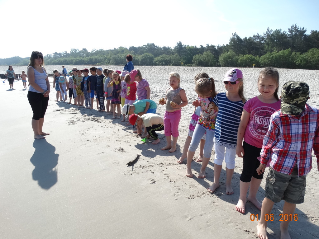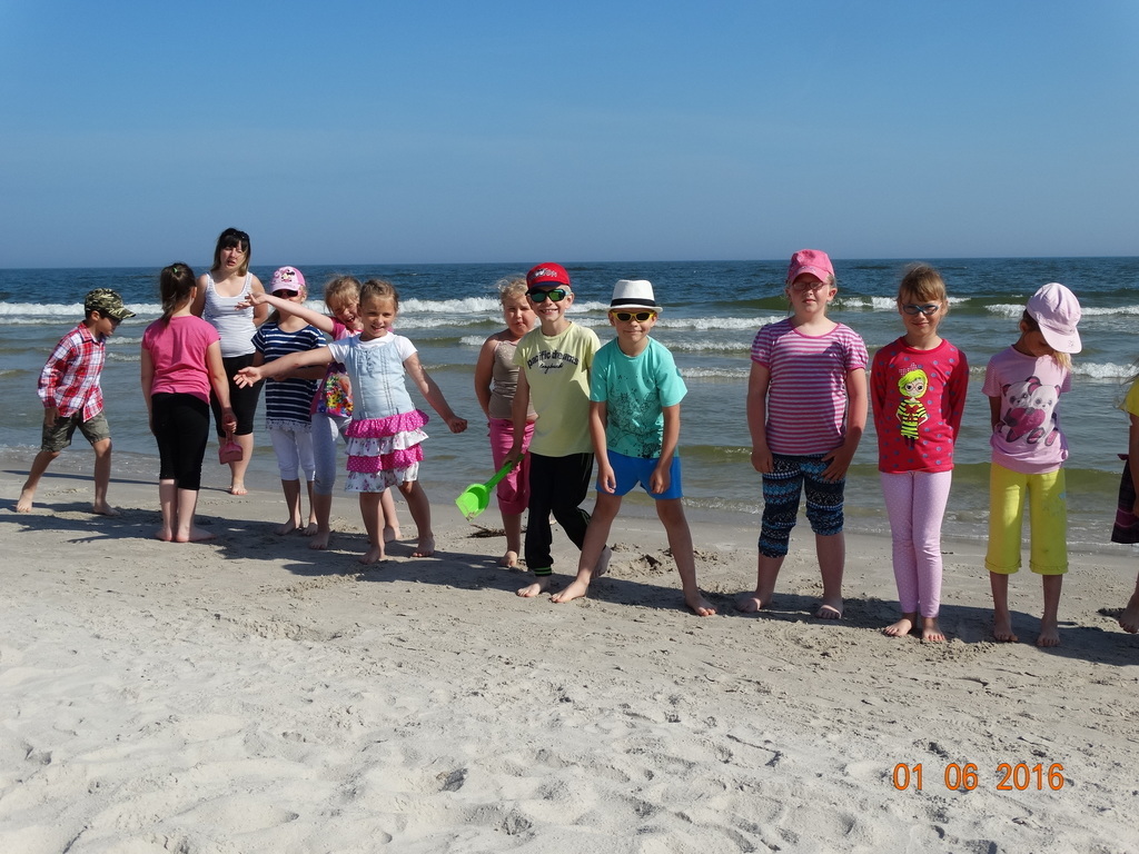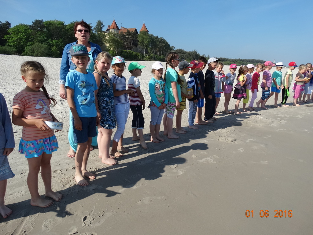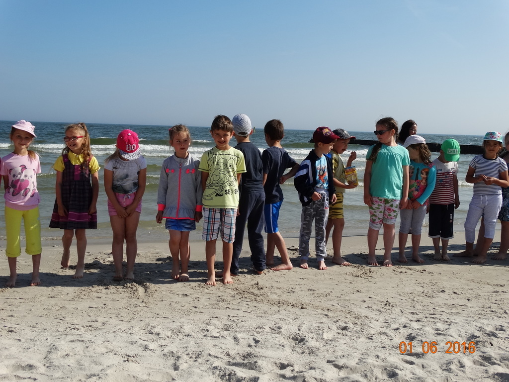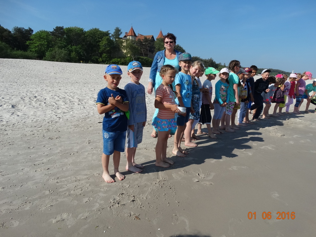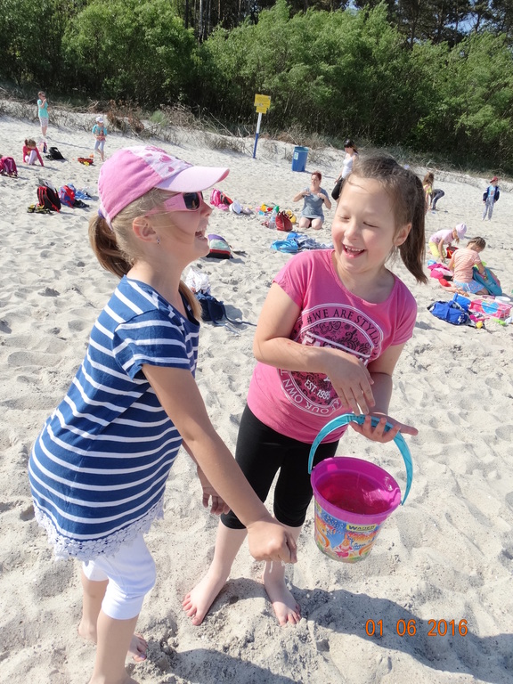 Z okazji Dnia Dziecka klasy 1a i 1b pojechały na wycieczkę do Łeby. Morze i plaża zawsze wywierają na dzieciach ogromne wrażenie. Pogoda nam dopisała, świeciło piękne słoneczko i wiała przyjemna bryza od morza. Dzieci budowały z piasku zamki, babeczki; biegały, czworakowały, czołgały się, bawiły się wyśmienicie i były przy tym naprawdę grzeczne. Stosowały się do wcześniej ustalonych zasad i reguł. Na koniec wycieczki każdy uczeń zjadł pysznego ogromnego loda. Taką wycieczkę musimy powtórzyć!
