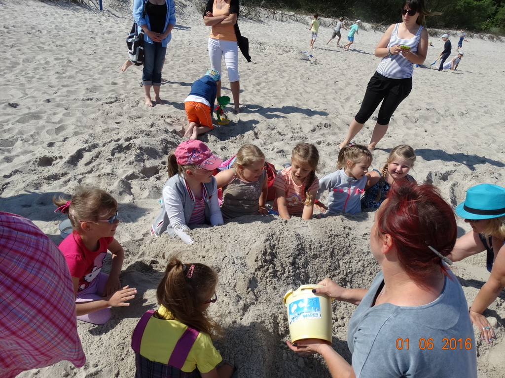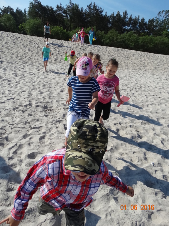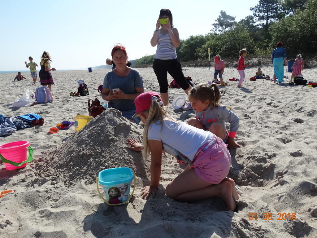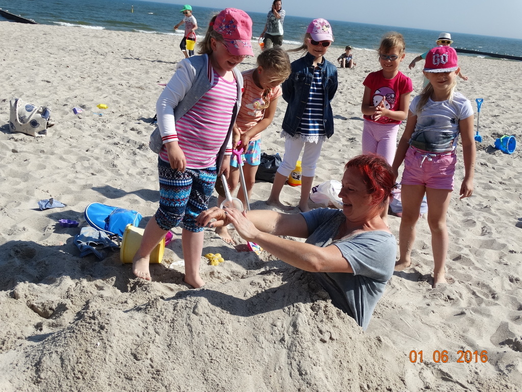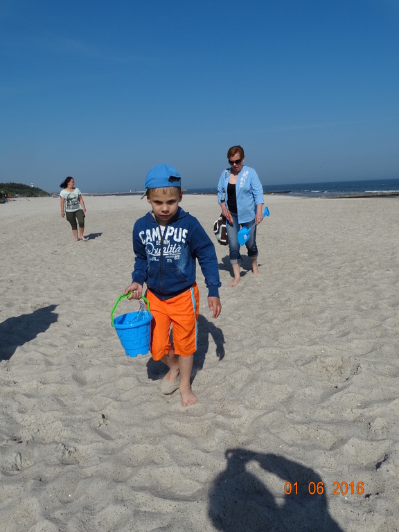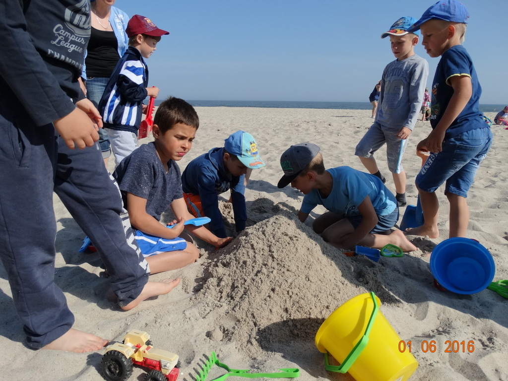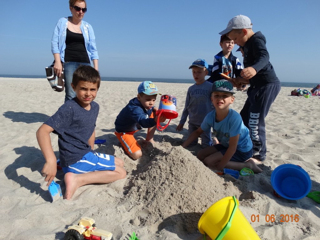 Z okazji Dnia Dziecka klasy 1a i 1b pojechały na wycieczkę do Łeby. Morze i plaża zawsze wywierają na dzieciach ogromne wrażenie. Pogoda nam dopisała, świeciło piękne słoneczko i wiała przyjemna bryza od morza. Dzieci budowały z piasku zamki, babeczki; biegały, czworakowały, czołgały się, bawiły się wyśmienicie i były przy tym naprawdę grzeczne. Stosowały się do wcześniej ustalonych zasad i reguł. Na koniec wycieczki każdy uczeń zjadł pysznego ogromnego loda. Taką wycieczkę musimy powtórzyć!