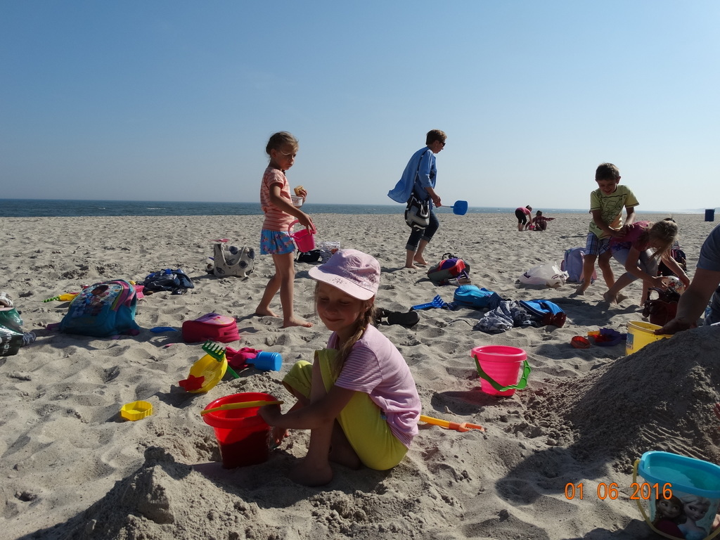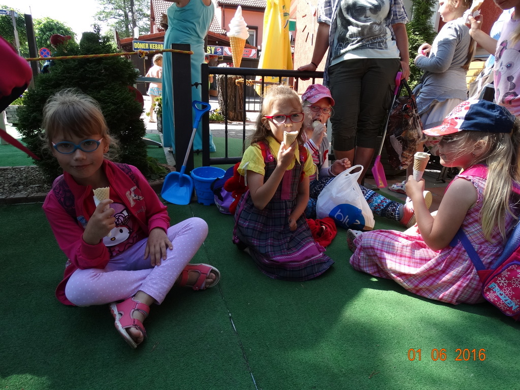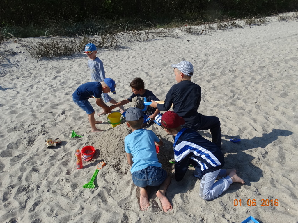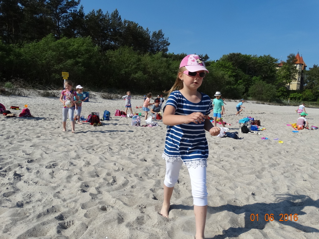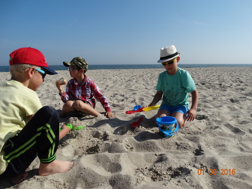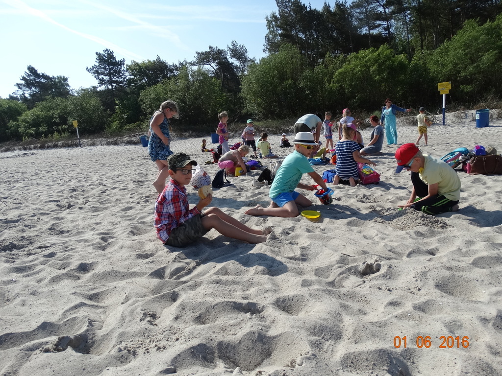 Z okazji Dnia Dziecka klasy 1a i 1b pojechały na wycieczkę do Łeby. Morze i plaża zawsze wywierają na dzieciach ogromne wrażenie. Pogoda nam dopisała, świeciło piękne słoneczko i wiała przyjemna bryza od morza. Dzieci budowały z piasku zamki, babeczki; biegały, czworakowały, czołgały się, bawiły się wyśmienicie i były przy tym naprawdę grzeczne. Stosowały się do wcześniej ustalonych zasad i reguł. Na koniec wycieczki każdy uczeń zjadł pysznego ogromnego loda. Taką wycieczkę musimy powtórzyć!
