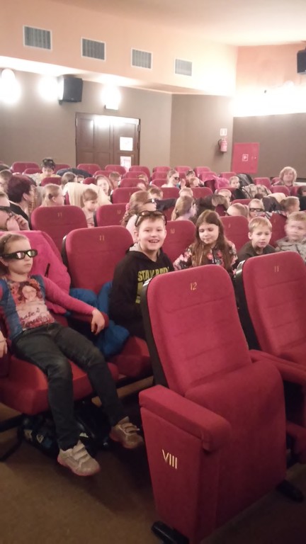 W dniu 9.03. 2016 r. uczniowie szkoły podstawowej wybrali się na wycieczkę do kina "Fregata" w Lęborku na animowaną komedię sensacyjną pt. „ Zwierzogród”. Film przedstawia perypetie samicy królika Judy Hopps i lisa Nicka Bajera w mieście zamieszkanym przez antropomorficzne zwierzęta - Zwierzogrodzie . Wspaniała opowieść swoją fabułą i akcją przeniosła dzieci w niesamowite miejsca z bajki, wywierając ogromne wrażenie na młodych widzach. Wizyta w kinie wzbogaciła uczniów o nowe, ciekawe doświadczenia.