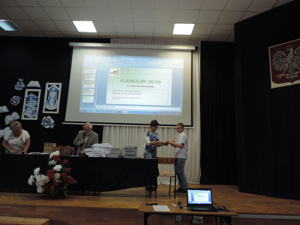 W konkursie „Kangur2019” troje uczniów klasy szóstej otrzymało wyróżnienia. Są to Łukasz Browarczyk, Kamil Kaczkowski oraz Dobrosława Laskiewicz. Łukasz Browarczyk otrzymał też zaproszenie na uroczyste podsumowanie konkursu w Słupsku, gdzie wręczono nagrody najlepszym uczestnikom matematycznych zmagań. Gratulujemy wszystkim nagrodzonym uzyskanych wyników.