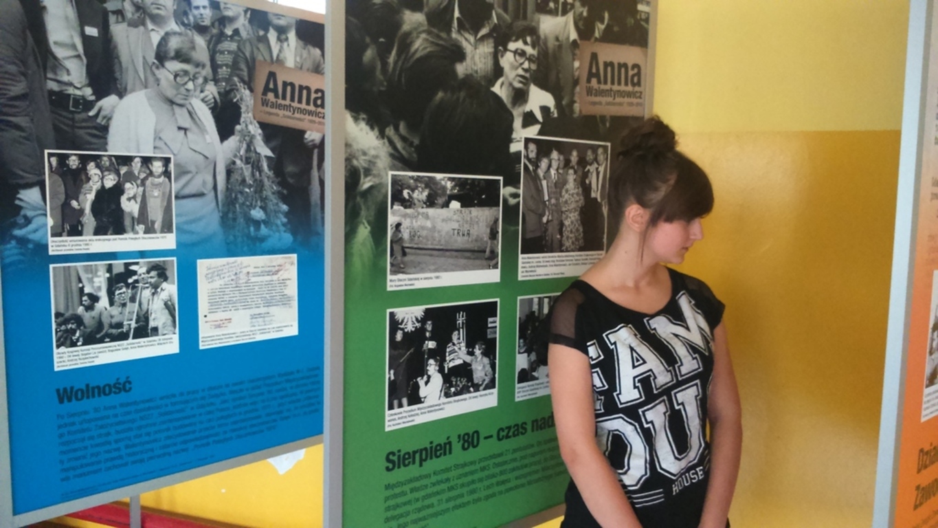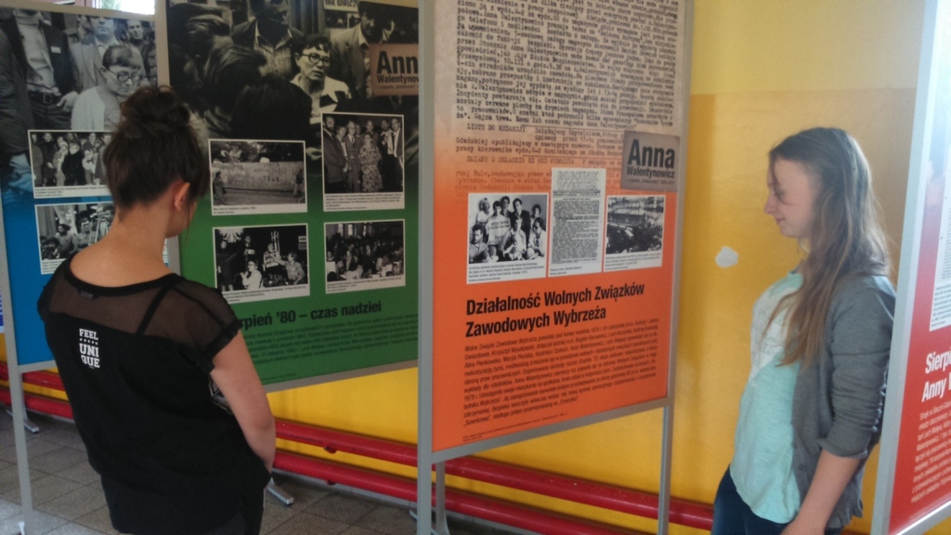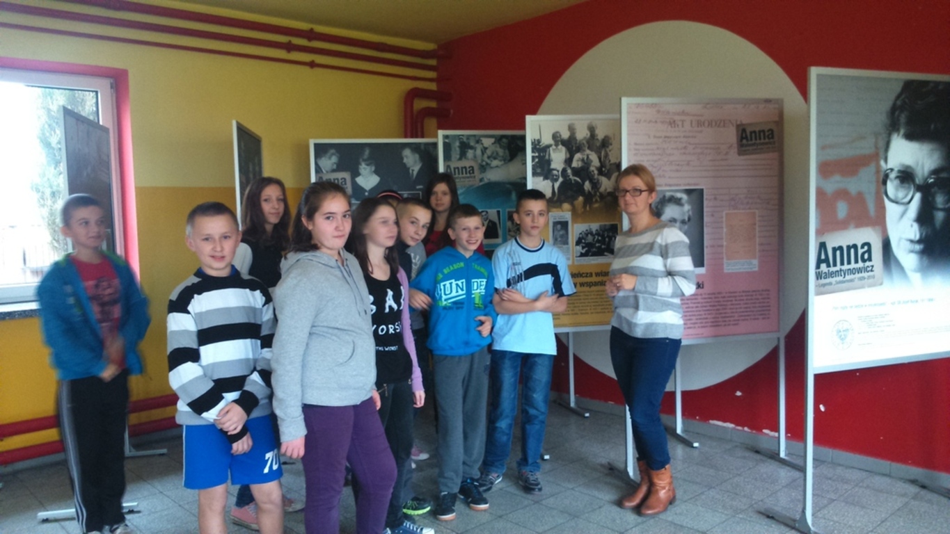 Uczniowie byli zapoznawali z życiorysem Pani Walentynowicz podczas lekcji historii, również przy wystawie. Z wystawy mogła skorzystać też społeczność Łebienia i okolic podczas wieczornicy niepodległościowej, która odbyła się w naszej szkole 10 listopada br.