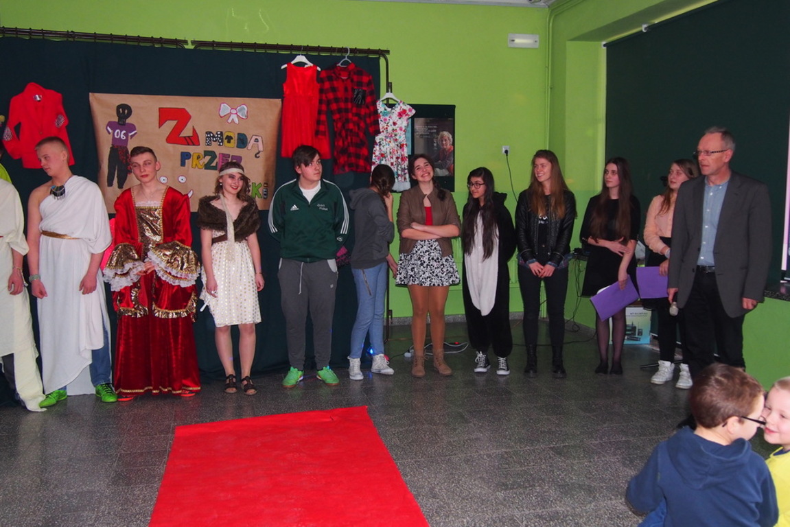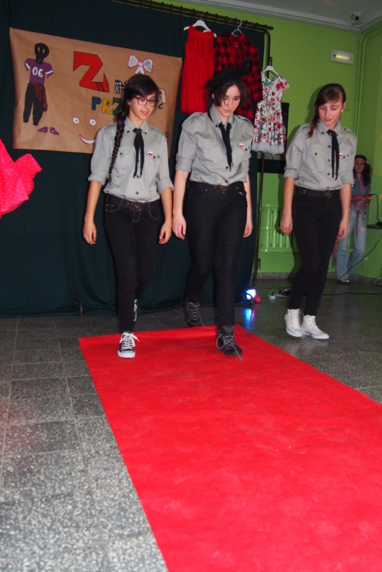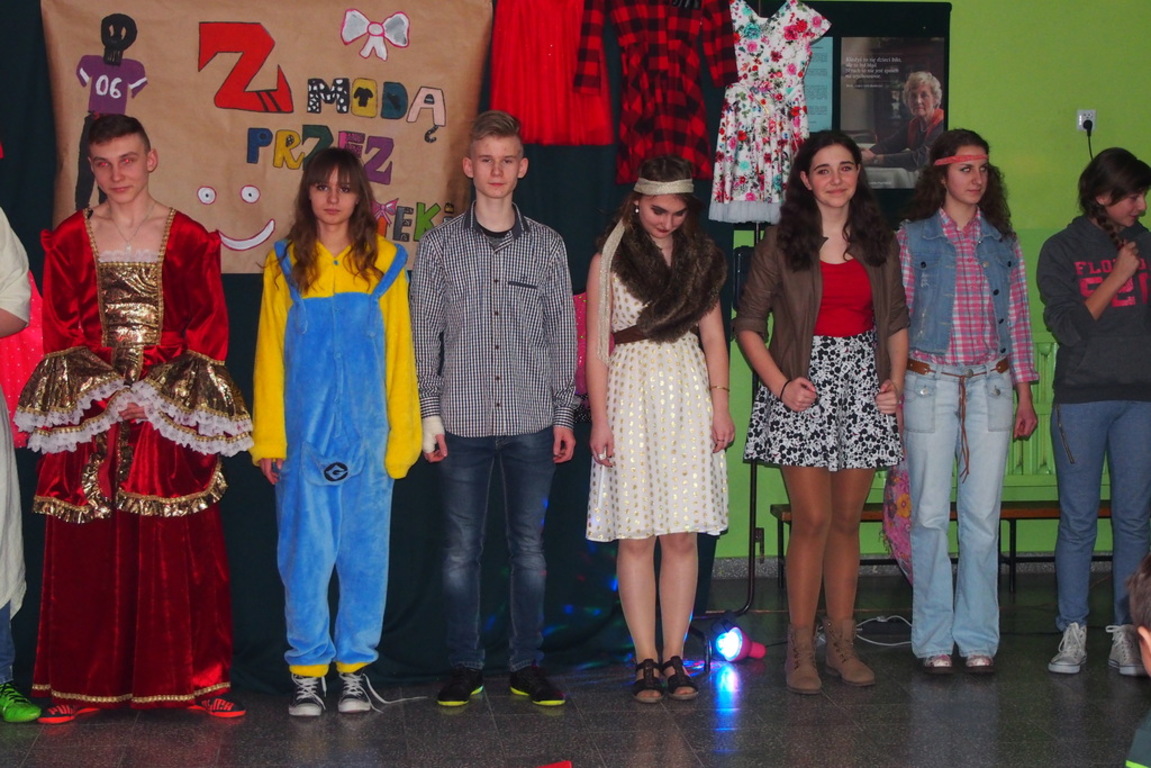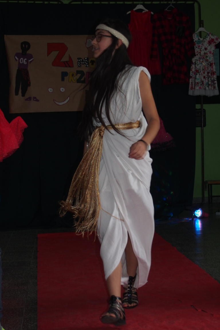 Ostatniego dnia przed feriami, w naszej szkole odbył się prawdziwy pokaz mody. Był czerwony dywan, kolorowe światła i prawdziwe modelki i modele. Uczniowie z grupy projektowej z historii "Z modą przez wieki" wcielili się w postaci z różnych epok, począwszy od prehistorii aż do czasów współczesnych. Mogliśmy obejrzyć piękne Egipcjanki, Greczynki, Rzymianki, kobiety z czasów średniowiecza, renesansu... Było też trochę poezji- wiersz "Czarna sukienka" w wykonaniu Julii Prokopowicz wycisnął łzy niejednemu widzowi. Były też mundury, strój hipisowski, metal, współczesny... a nawet piżamki :) Widowisko okazało się bardzo ciekawe, publiczność reagowała na kolejne wystąpienia bardzo żywiołowo i entuzjastycznie. A wszystko to zawdzięczamy wspaniałej młodzieży z grupy projektowej: Wiktorii Chołodnickiej (szefowa projektu), Michalinie Czajkowskiej , Monice Domaros, Kacprowi Matak, Monice Mydlach, Szymonowi Popiela, Julii Prokopowicz, Joannie Rompskiej, Beacie Ropela, Annie Sarneckiej, Agacie Smykowskiej. Bardzo dziękujemy też Dominice Sadło za profesjonalne zdjęcia oraz Władysławowi Tandek, Barkowi Stojek oraz Konradowi Skiba za nieocenioną pomoc. Pracą grupy projektowej kierowała p. Elżbieta Laskiewicz, nauczycielka historii.