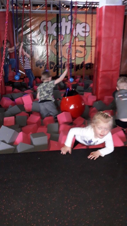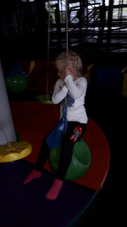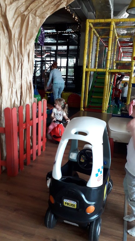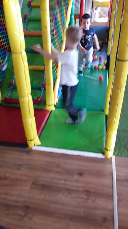 Dzieci korzystały z wielu atrakcji, m.in. MEGA konstrukcji z torem przeszkód, basenu z kulkami i zjeżdżalniami, armatek pneumatycznych, drzewa kokosowego –KARUZELI, MEGA klocków, trampoliny, pianek, kącików zabaw, itd. Wszystkie przedszkolaki bawiły się znakomicie. Na Sali zabaw było istne szaleństwo i z trudnością udało się to udokumentować na fotografii.