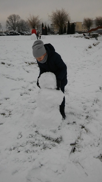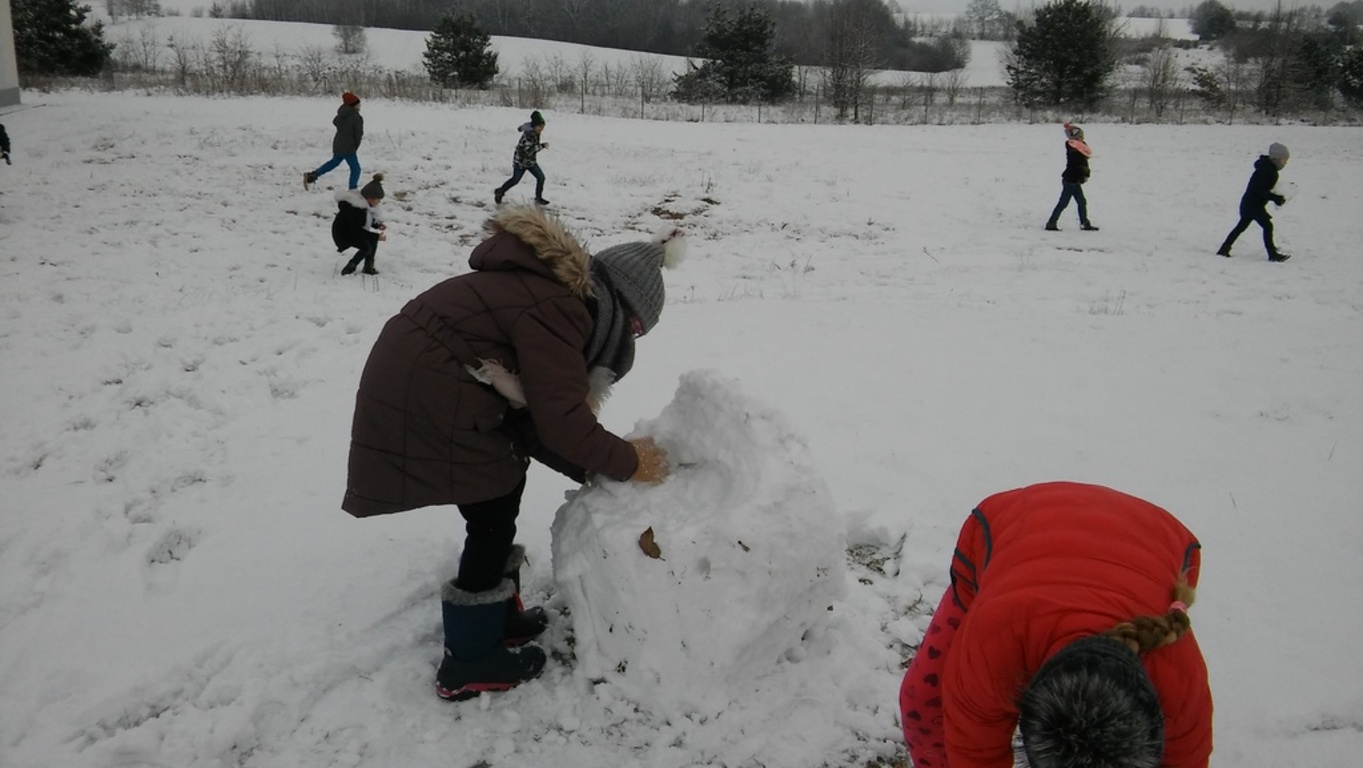 Lepienie bałwana na w-fie? Dlaczego nie! Klasa III "a" skorzystała z zimowej aury i zajęcia fizyczne spędziła na śniegu. (A tydzień temu na lekcji robiliśmy sztuczny śnieg z ...- pampersów :-) - chyba to nasza zasługa, że spadł ten prawdziwy ;-) )