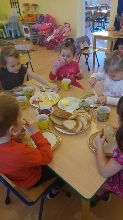Dzisiaj najmłodsze przedszkolaki samodzielnie przygotowywały kanapki. Był to kolejny etap nauki samodzielności. Maluchy poznały pierwsze zasady savoir vivre.