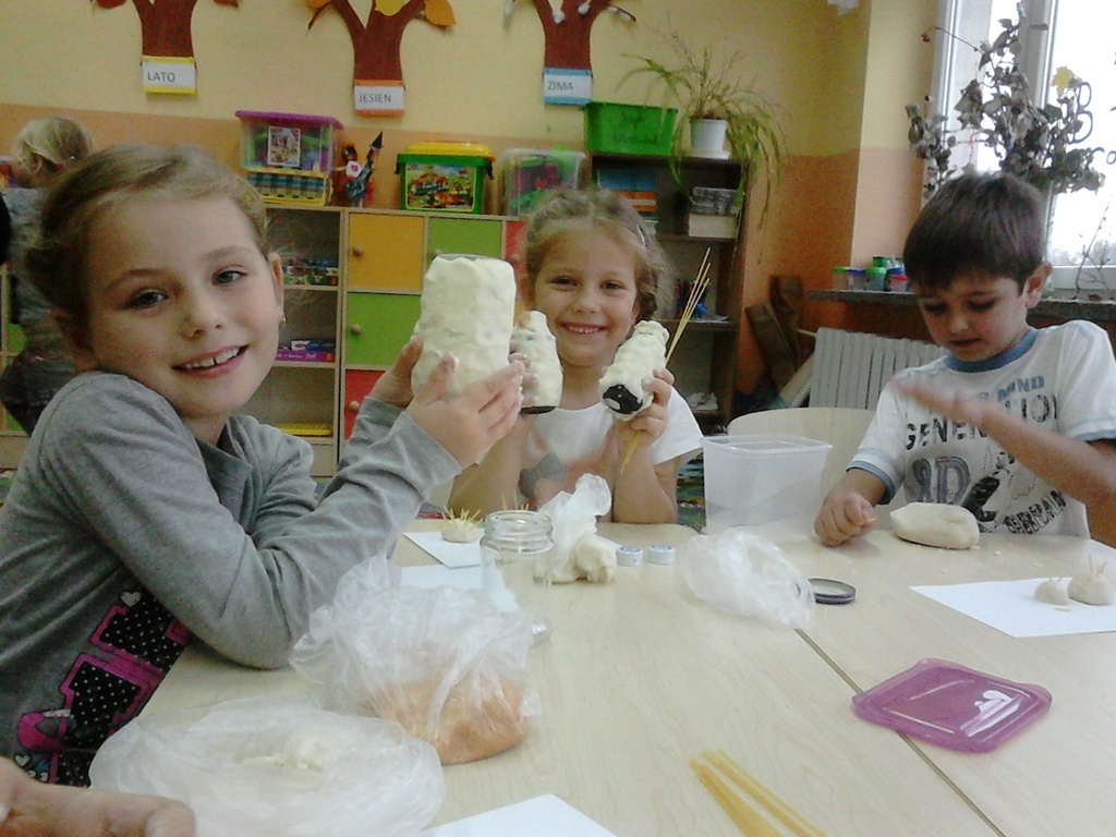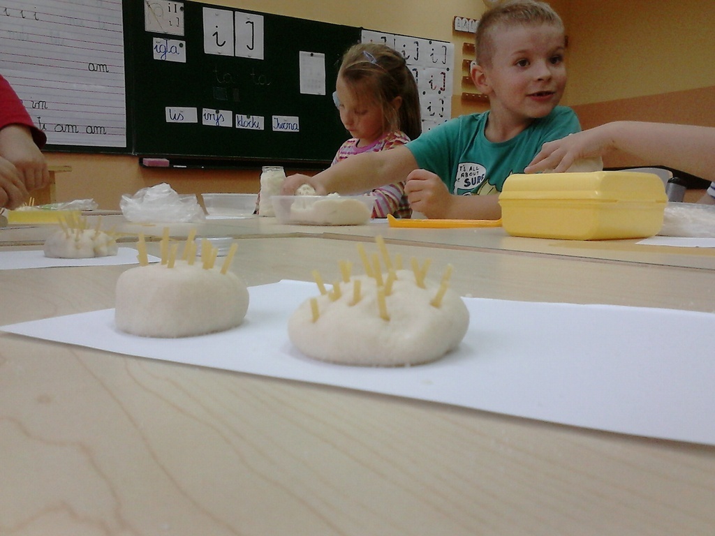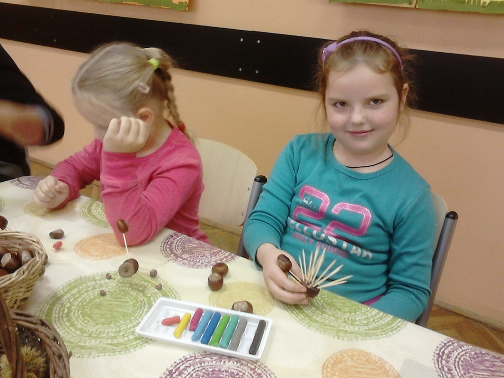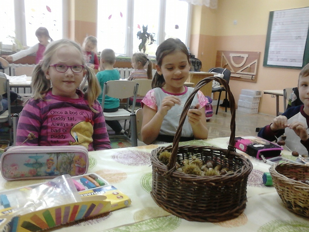 Co piątek na 5tej lekcji odbywają się zajęcia dodatkowe dla pierwszaczków. W 1a są to zajęcia artystyczne - taniec i plastyka, w 1b - plastyczne. Dzisiaj obie klasy miały zajęcia rozwijające sprawność manualną, tak ważną do pisania literek. Dzieci z 1a lepiły z masy solnej - wazoniki i jeżyki, pierwszaki z 1b - robiły ludziki i zwierzaki z kasztanów i żołędzi. Oczywiście wszystko z pomocą wychowawczyń - p.Ani i p. Bożenki.