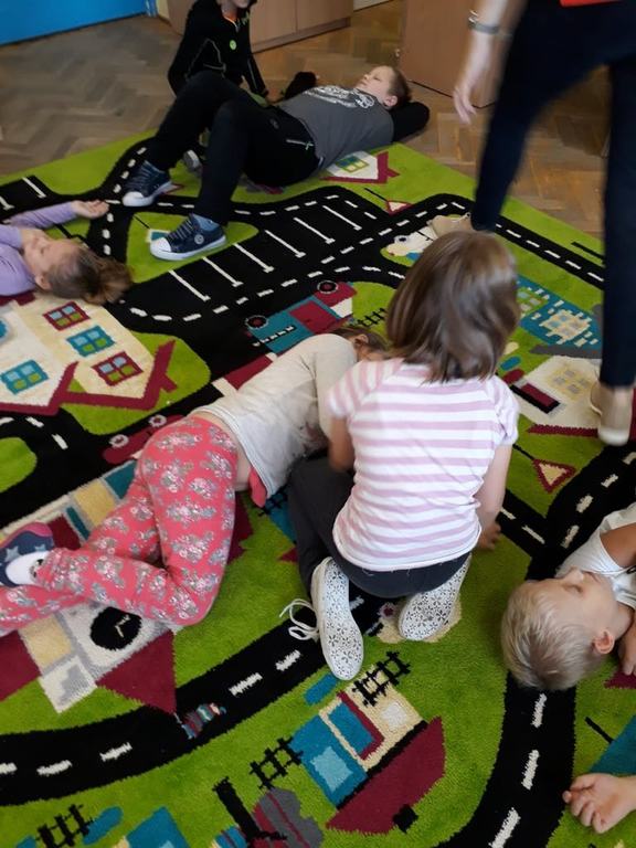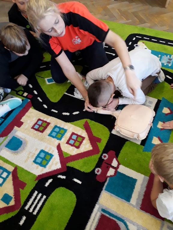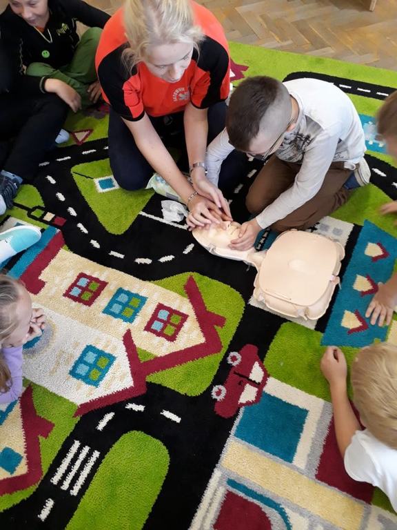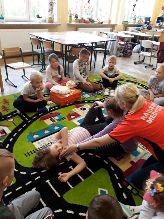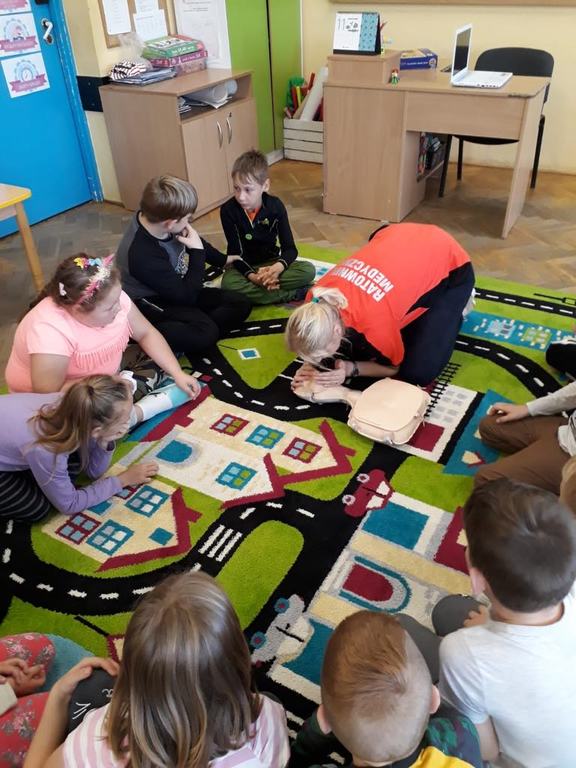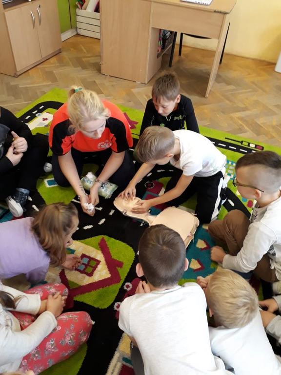 W klasie drugiej powstał cykl zajęć poświęconych różnym zawodom. Pierwsze zajęcia związane były z pracą ratownika medycznego. Hasło zajęć brzmiało „ Ja tez potrafię pomóc”. Dzieci nauczyły się poprawnie układać poszkodowaną osobę w pozycji bocznej. Uczniowie wiedzą także jak wykonać prawidłowo RKO (Resuscytację Krążeniowo - Oddechową). Z pewnością każdy drugoklasista już wie jak udzielić pomocy osobie poszkodowanej.