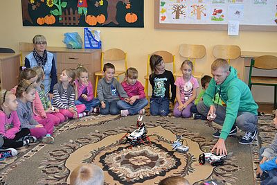 25 października 2013 roku w naszej szkole odbyły się zajęcia z robotyki. Uczestniczyli w nich uczniowie "zerówki" i klas I-V szkoły podstawowej. Podczas godziny lekcyjnej poznali podstawowe zasady działania robotów. Uczniowie byli zachwyceni możliwościami jakie stwarza budowa i sterowanie robotami-zabawkami. Być może niektórzy z nich zdecydują się uczestniczyć w zajęciach warsztatowych, podczas których uczyć się będą konstruować i programować właśnie takie roboty.